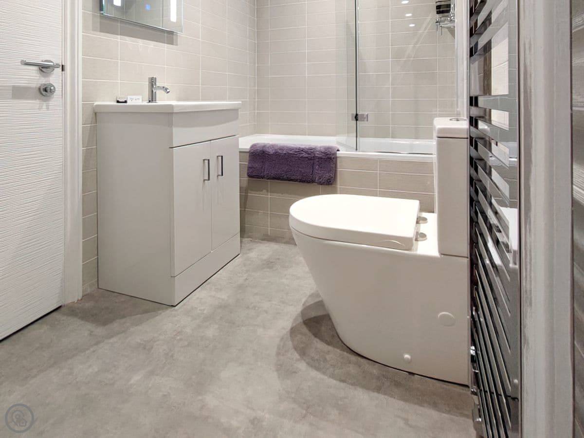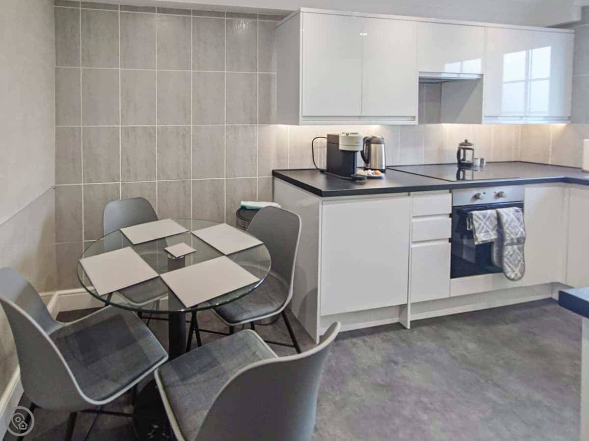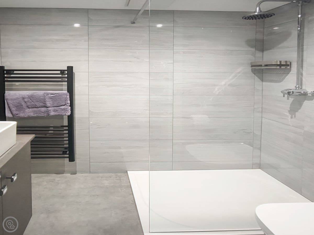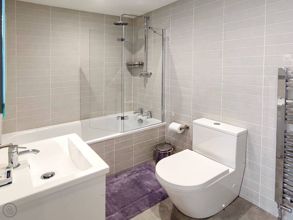 It's for four people. Two bedrooms, both with double beds and their own bathrooms. It's got a 5 Star rating, which means everything is new and well finished. The sofas in the lounge are electric, so you can put your feet up easily.