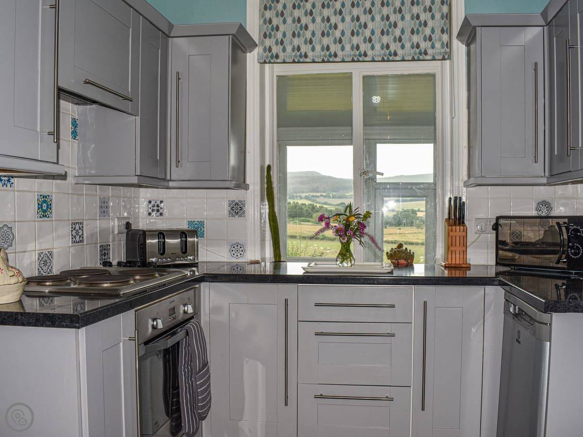 Glenesk sits on a quiet country lane with spectacular views from the living room and master bedroom, garden room and the lovely garden. This detached cottage is single storey and deceptively spacious, enjoying an elevated location looking out across the stunning scenery of the Coquet Valley and the Simonside Hills. The cottage offers comfortable and homely accommodation, suiting a small family, couples or group of friends. The living room is light and bright with large bay window affording fabulous views. A large leather corner sofa wraps the room with an additional armchair, a cosy wood burner for cooler months and large smart TV for your entertainment. The bedrooms are spacious with ample storage with the master bedroom enjoying fabulous views to enjoy with your morning cuppa. There is a bathroom with bath and electric shower over. A well-equipped kitchen has all the appliances you will need and leads into a dining room with six seater table. Steps down lead into the garden room with seating and breakfast table to enjoy the scenery. French doors lead out into the lovely lawned garden with a sitting out area, table and chairs to enjoy an outdoor meal.