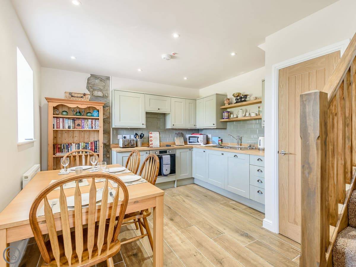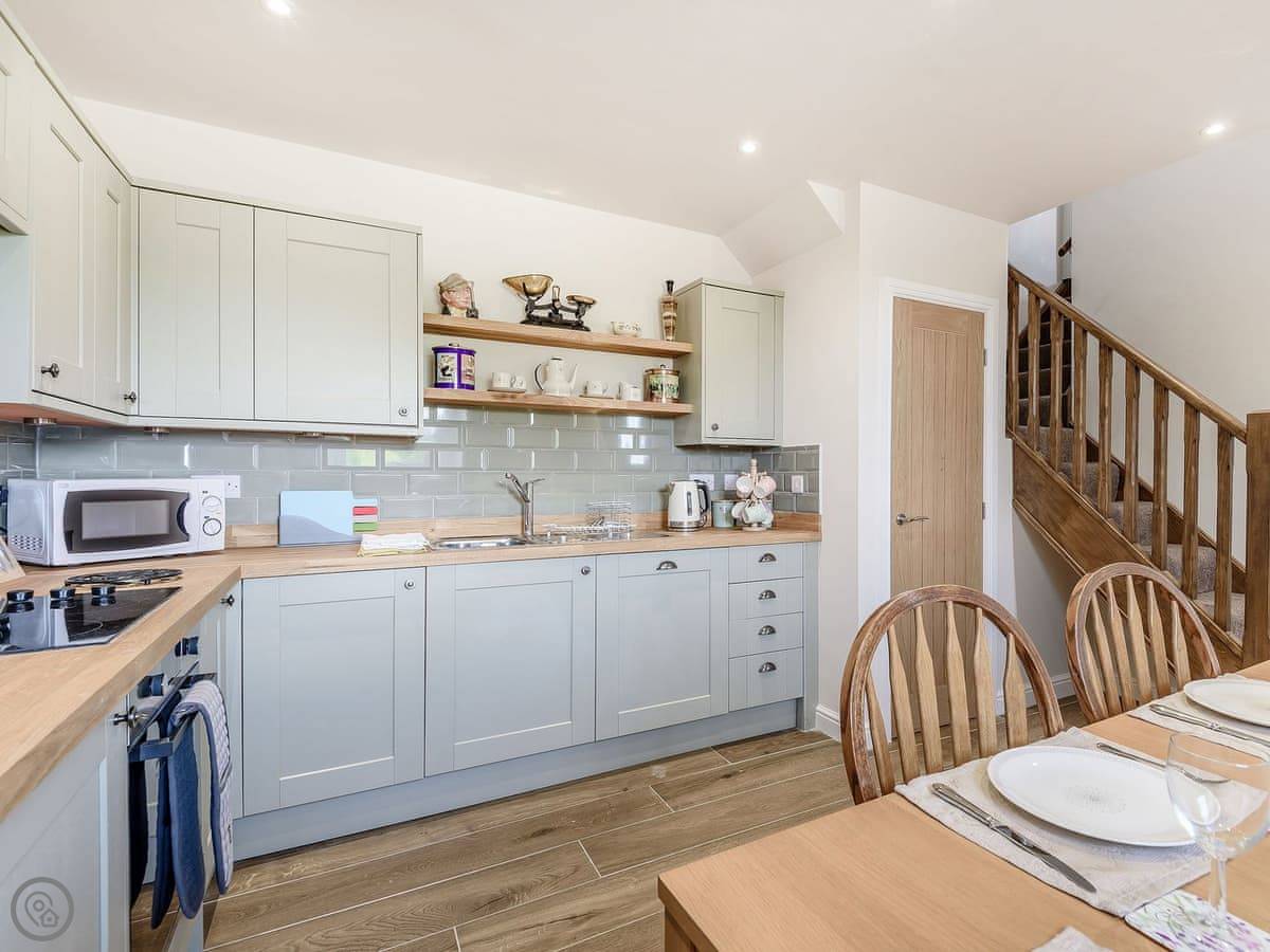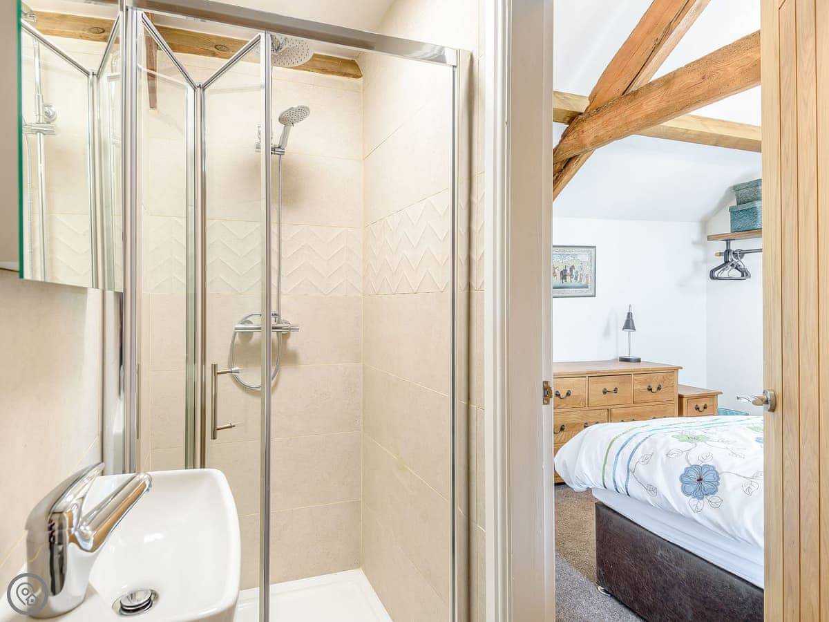 Horseshoe Cottage is a stylish and well-designed two-bedroom, two-bathroom cottage, ideal for couples or families with older children. Upon entering the cottage, you find yourself in the open living, kitchen and dining area. Thoughtfully designed and boasting features such as wooden beams, exposed walls, this cottage offers a well-equipped kitchenette with oven, hob, fridge/freezer, microwave, dishwasher and ding table with seating for four. The living area boasts comfortable seating and smart TV for relaxing in the evening. There is a WC downstairs with basin. Head up to the first floor where you will find the two bedrooms, both benefitting from plenty of light and views far reaching to the sea. The rooms are configured as doubles, but one can be changed upon request, to a twin using a zip and link style bed. Each has its own en suite bathroom with walk-in shower, WC, basin and Heated towel rails.