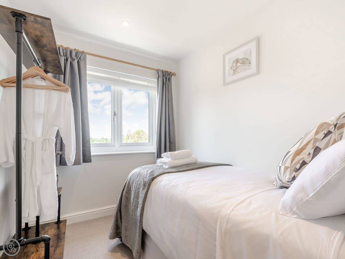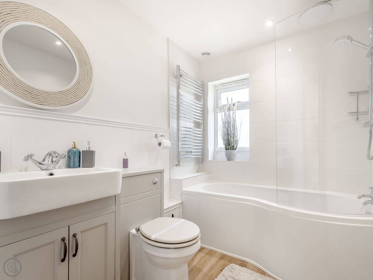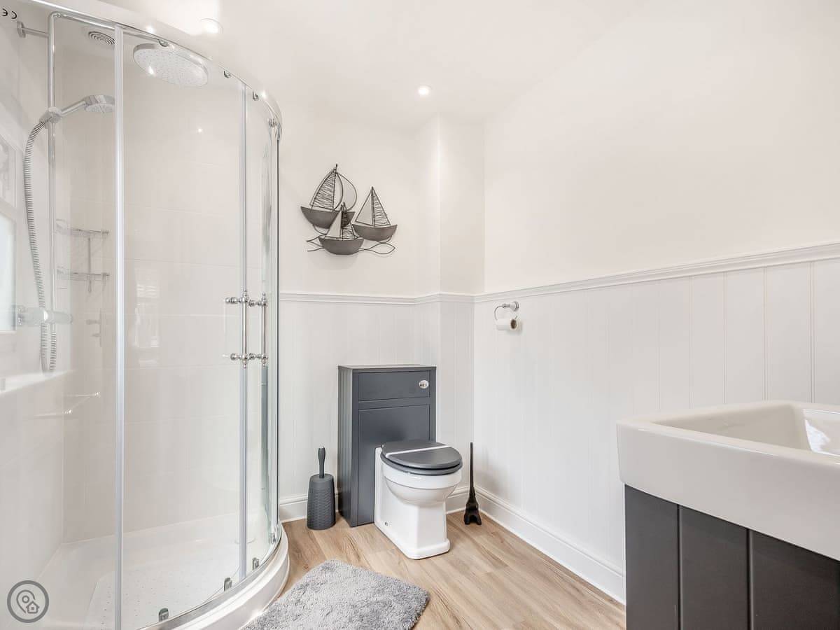 Upstairs, the main bedroom has a king size bed and its own shower room. The second bedroom has a super king bed that can be split into two singles if you need it. The other two are single rooms.