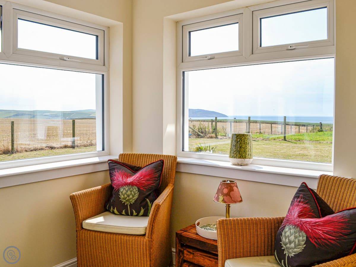 Mullhill is a farmhouse on our working farm just outside Port Logan. It's detached, so you're on your own up here. The position is high, so the views over the Irish Sea are good. You can see right down to the village.