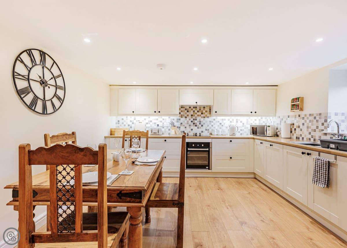 Inside you will find a master bedroom with a kingsized bed, covered with elegant bed linen, and patio doors with Juliet balcony. There is also a further bedroom with a super kingsized bed which can convert to two singles, making Sgubor Fach ideal for families up to four, couples or a small group of friends who want to get away from it all. Radiators in all rooms. You’ll find everything you need with two bathrooms, a fully equipped kitchen and an area to hang your coats and shoes after a day of exploring or whatever you fancy! For the kids a travel cot, and highchair can be provided.