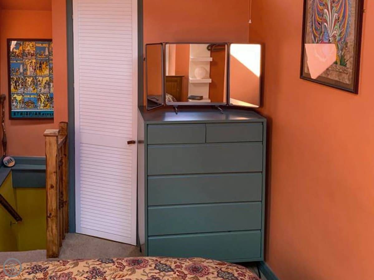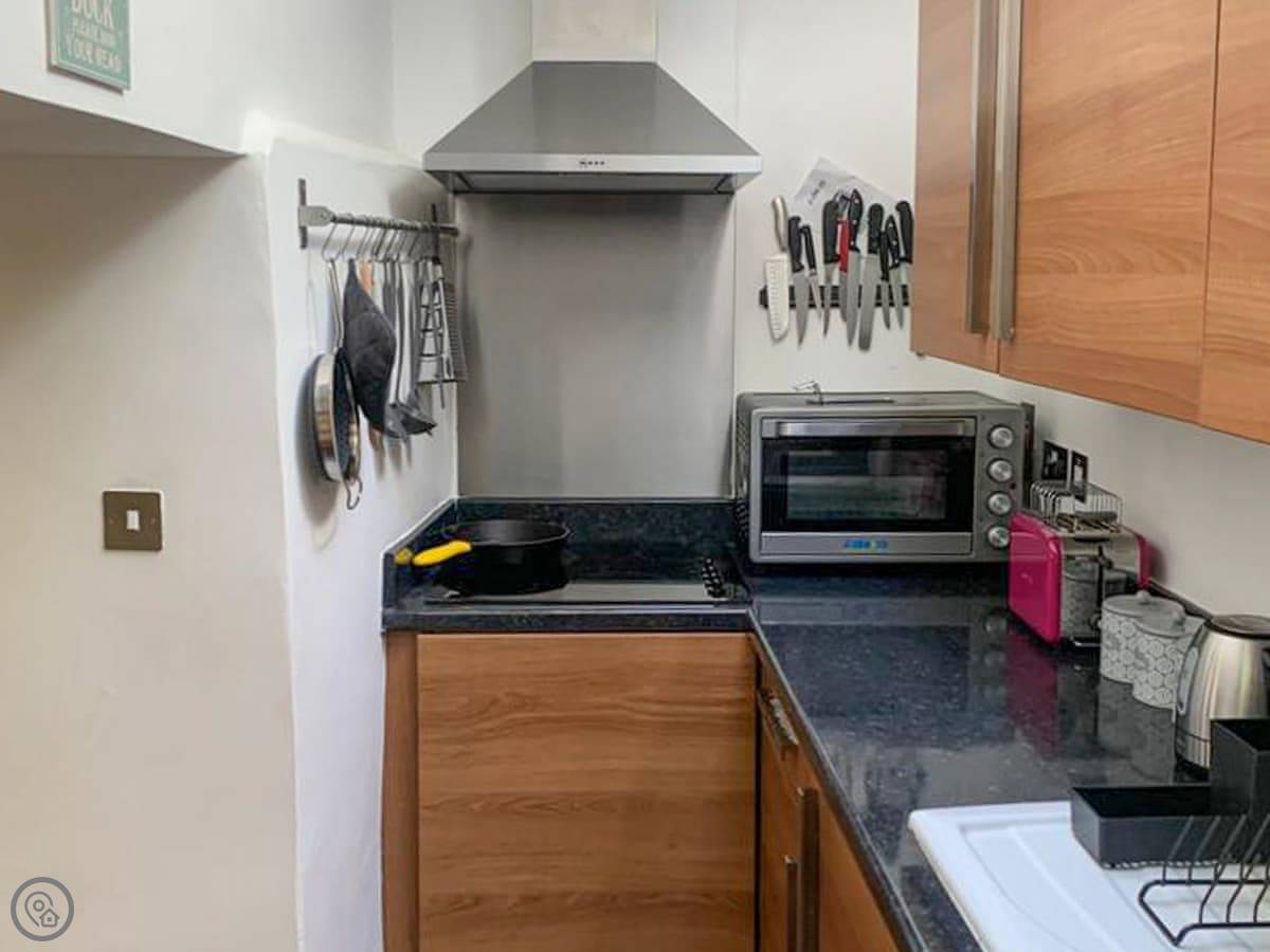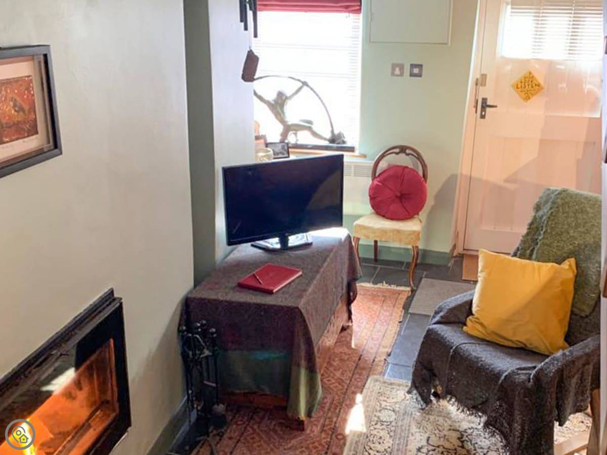 Nestled on a quaint side street with the river running alongside and just a stone’s throw from the heart of one of Exmoor’s best towns, Dulverton, we have Quicks Cottage, a fabulously quirky one-bedroom cottage perfect for a couple looking to escape and relax. Step through the front door into the open plan lounge and kitchen, beamed ceilings and a fantastic wood burner greet you in the lounge, with comfortable seating and ambient lighting, it’s a wonderful spot for reading in front of the fire. Up two steps to the compact kitchen, with all you will need during your stay! Head up the stairs to the bedroom, where the double bed awaits you under the vaulted ceiling with Velux windows bringing in the natural light during the day or seeing the stars at night, the en-suite bathroom has a small bath with shower over, sink and toilet.