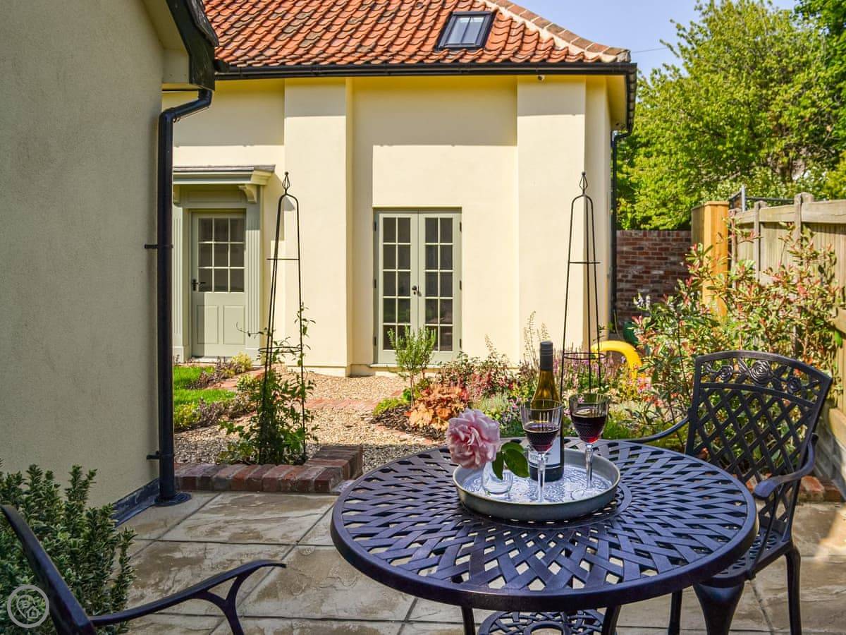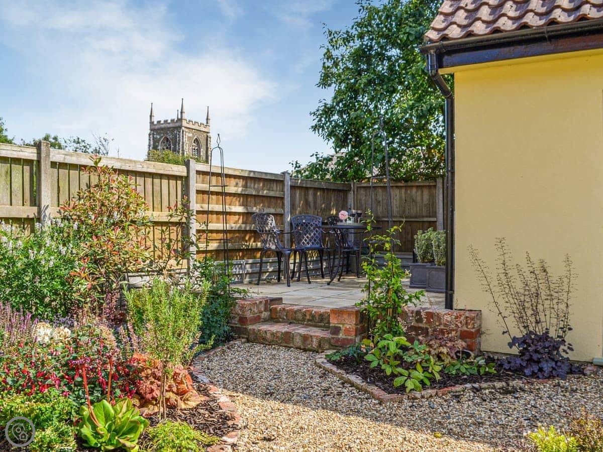 Halton Lodge is in Halton Holegate, a village near Spilsby. It's a detached cottage, so no neighbours on the other side of the wall. The garden is enclosed, mostly lawn with some flowers and a patio area. You can get out to it from the kitchen.