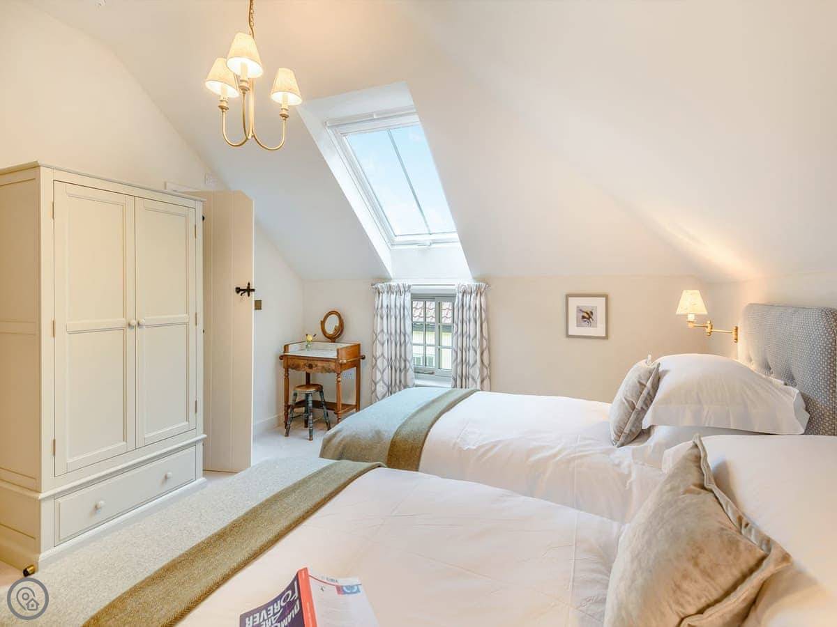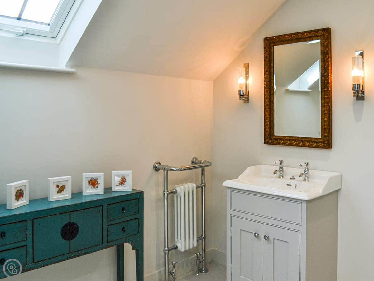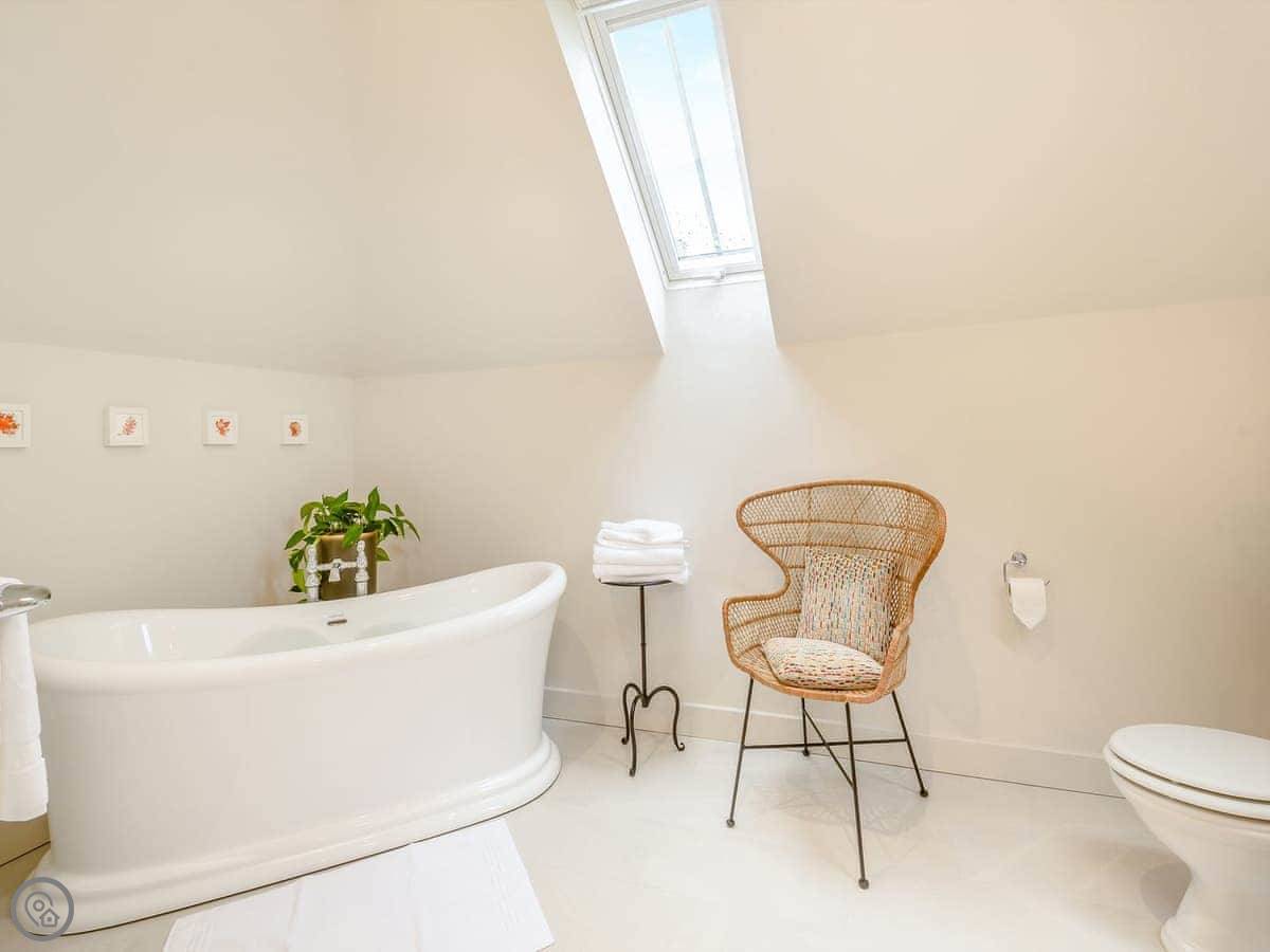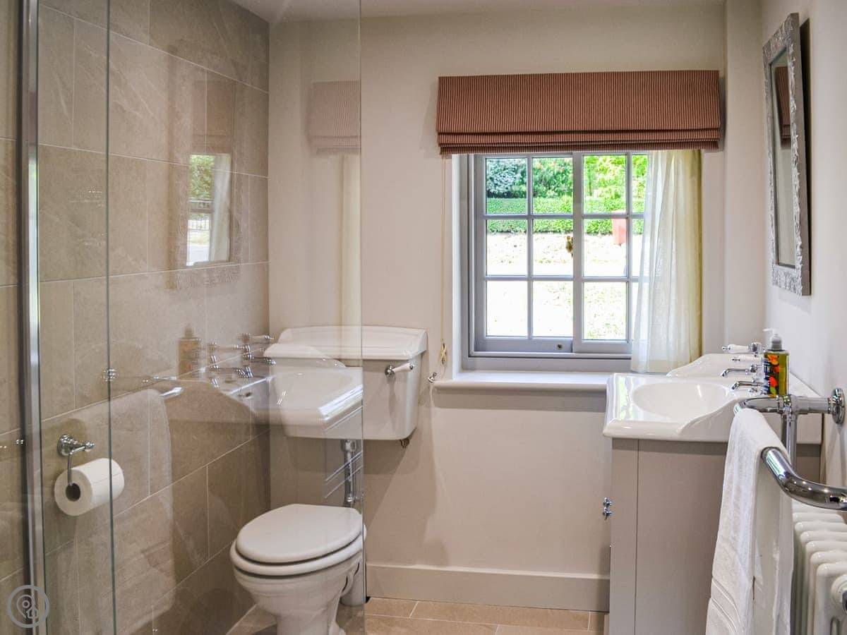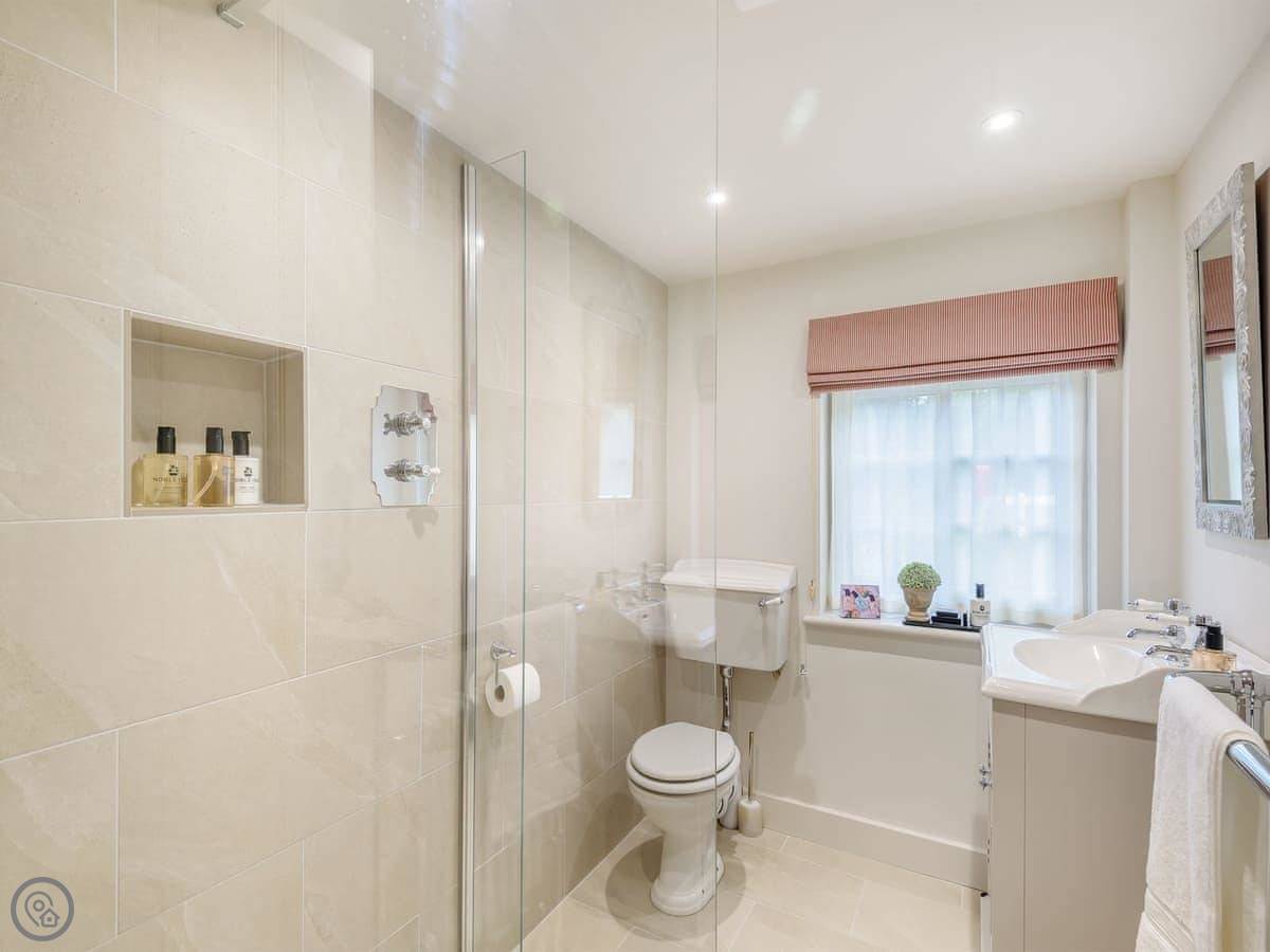 It sleeps four. Two bedrooms, both with their own bathrooms. There's also a ground floor wet room. The second bedroom can be set up with twin beds if you need it. It's got a 5 Star rating, which means it's well-equipped and finished to a high standard. It's a comfortable place.