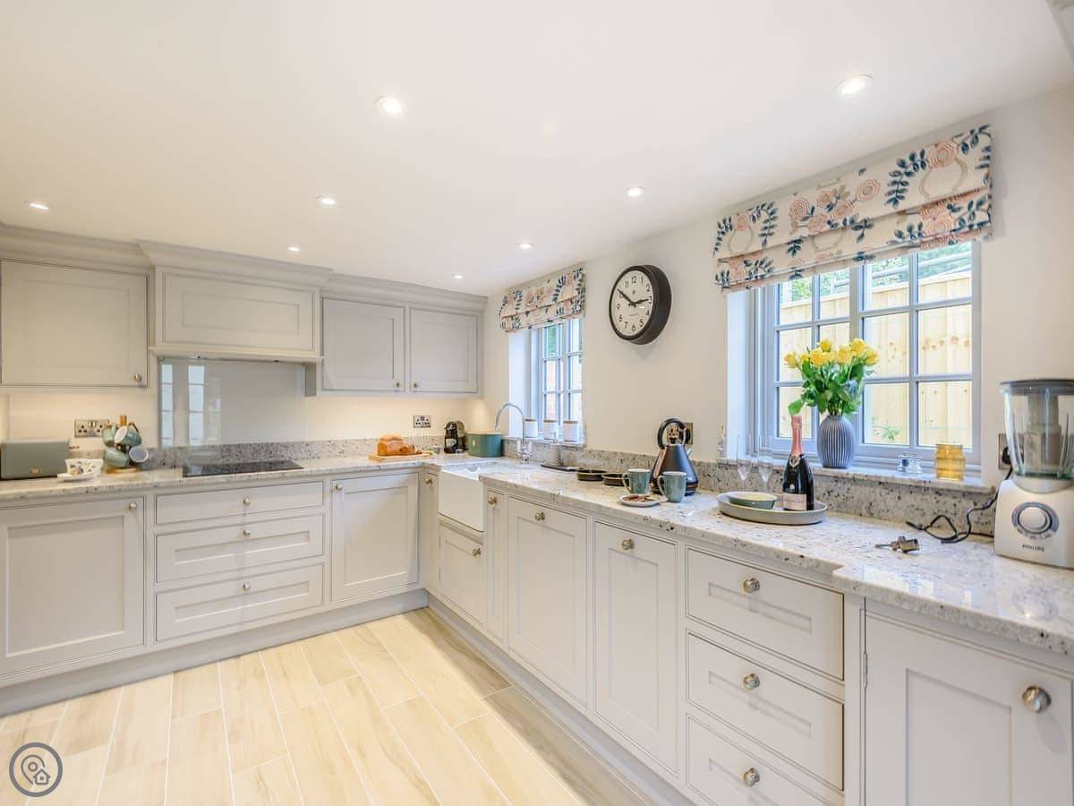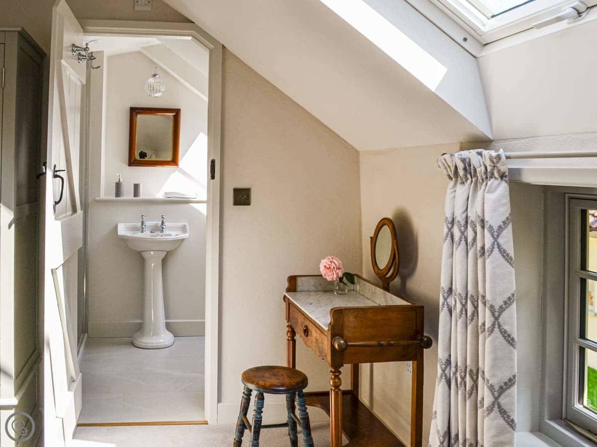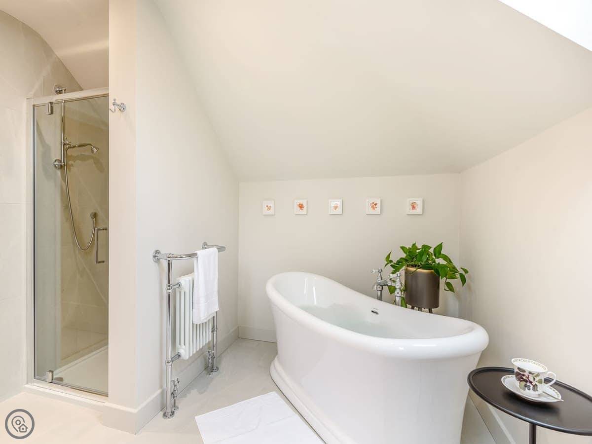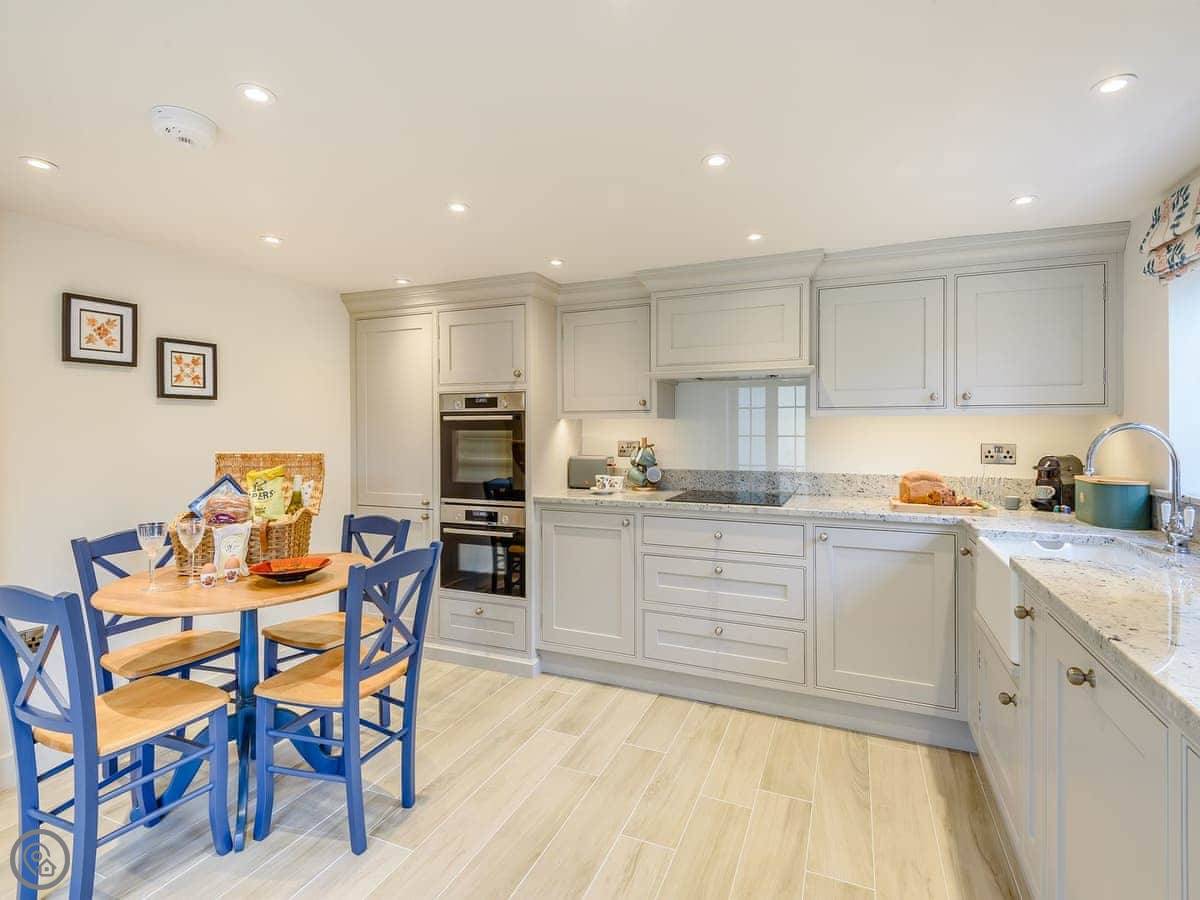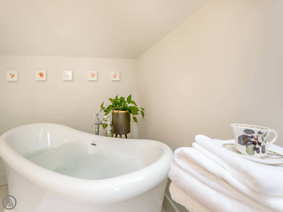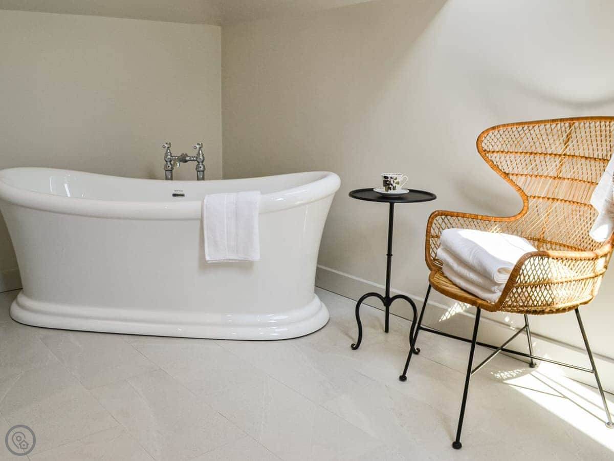 It sleeps four. Two bedrooms, both with their own bathrooms. There's also a ground floor wet room. The second bedroom can be set up with twin beds if you need it. It's got a 5 Star rating, which means it's well-equipped and finished to a high standard. It's a comfortable place.