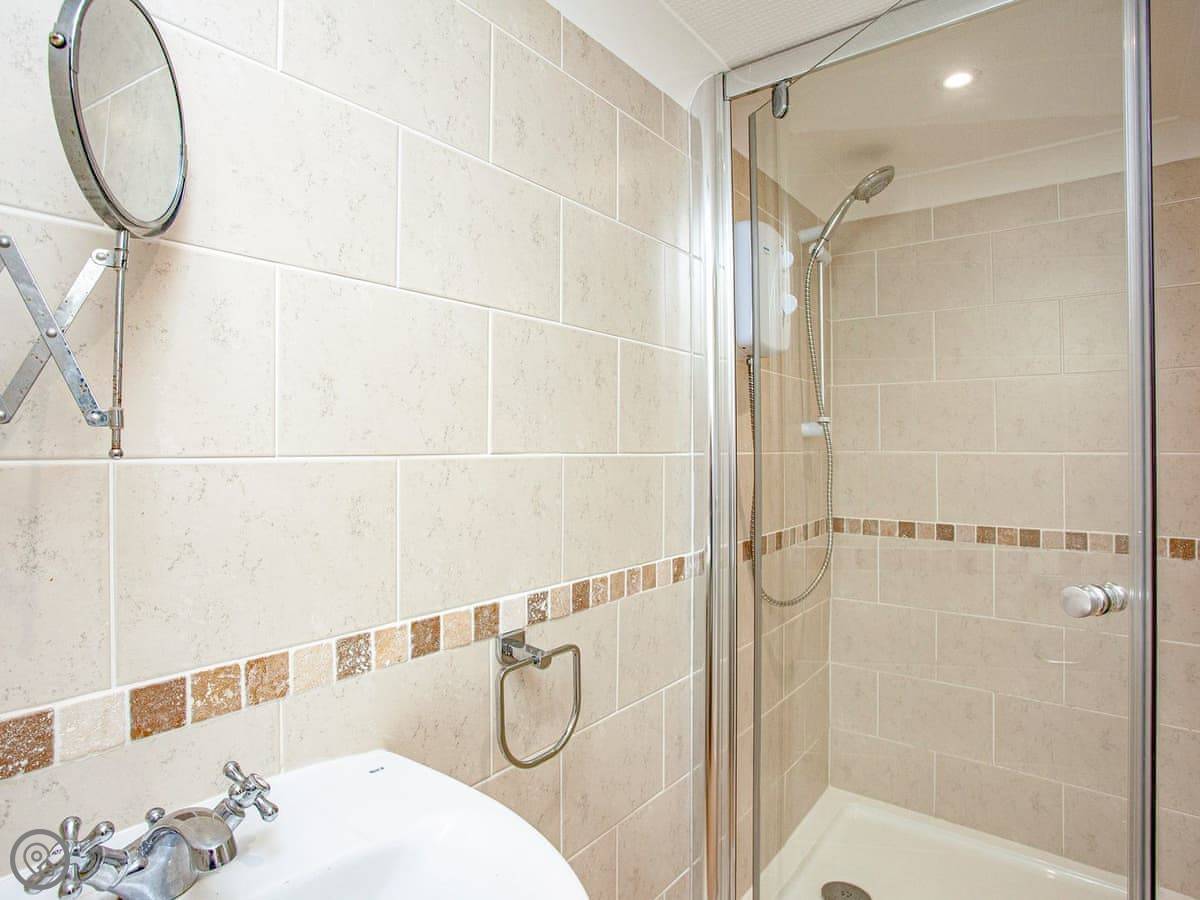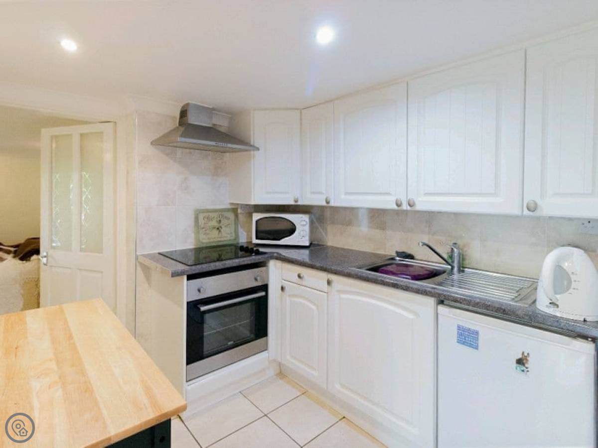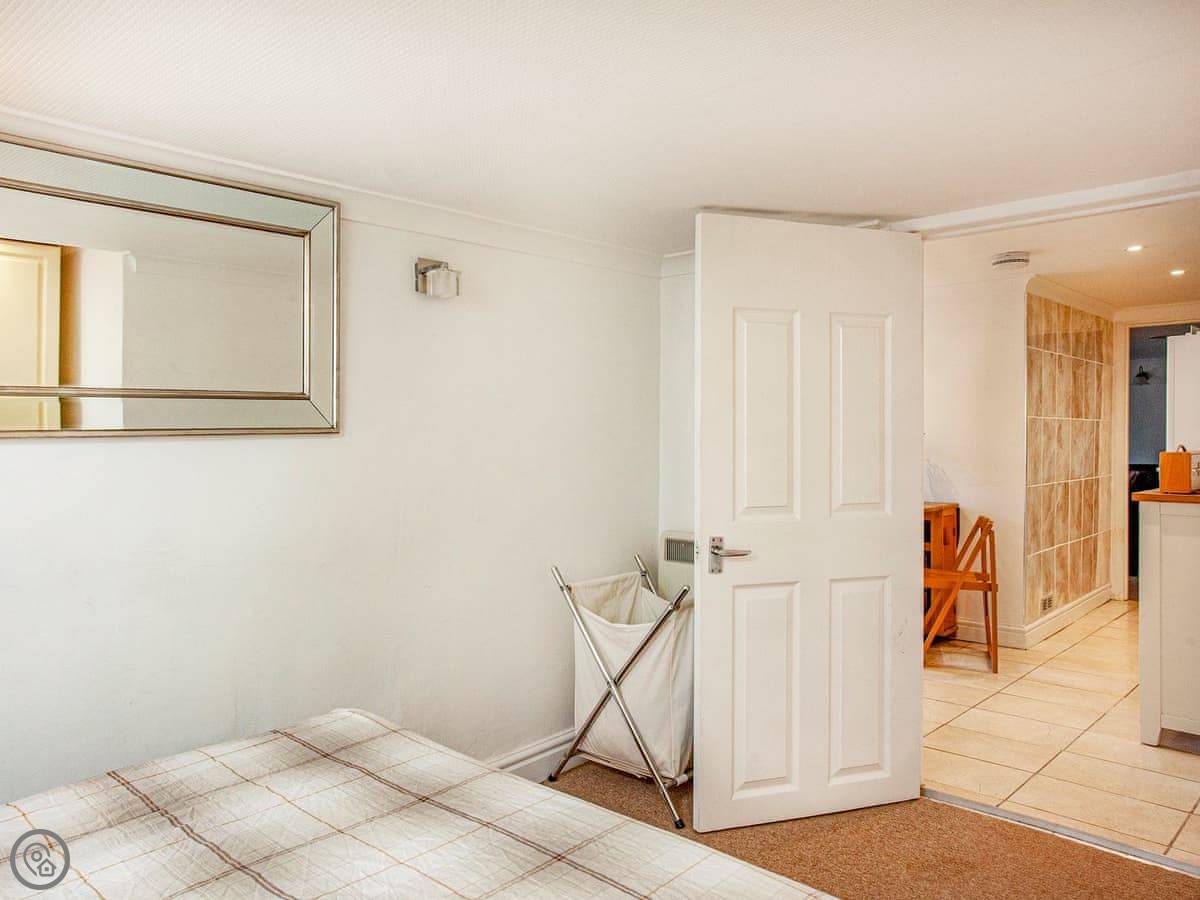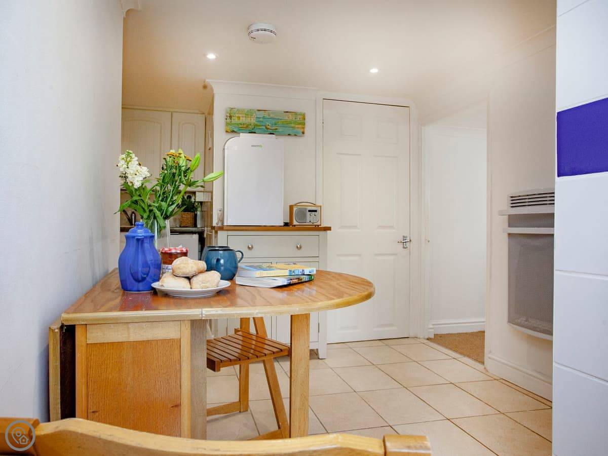 It sleeps four. Two bedrooms and one shower room. It's got a 3 Star rating, so it's clean and has what you need, but don't expect luxury. The front door opens straight into a hallway with the kitchen area off it.