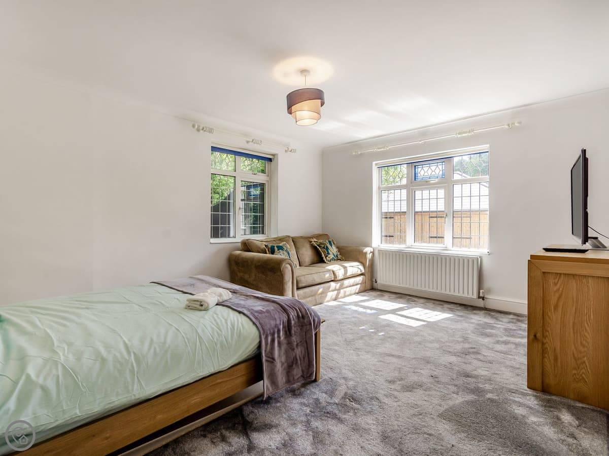 The garden is separated into three sections going away from the house with a badminton court/net to set up in the middle garden for the guests to test each other on. Table tennis is in the front garage for guests to enjoy even if it is raining outside! Guests will find it hard to believe they are only 20 minutes away from the hustle and bustle of the City of London with the full tranquil experience of this property! Pub and restaurant 1¾ miles.