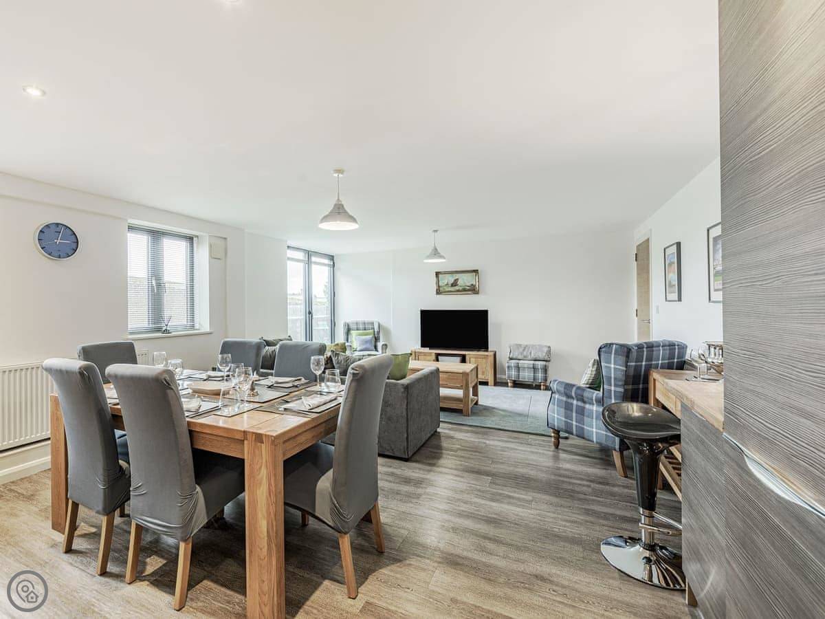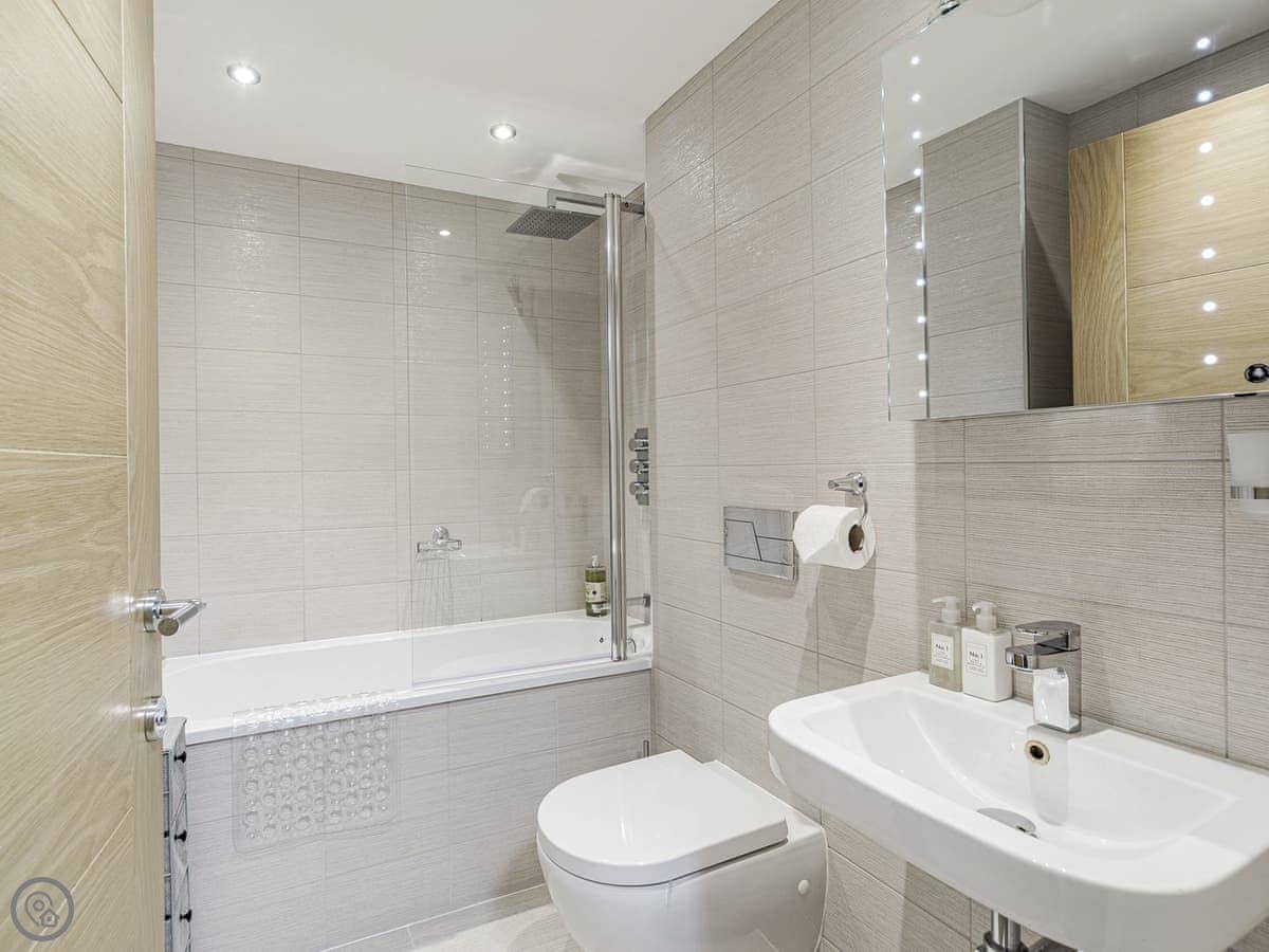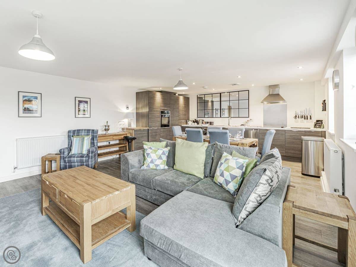 Part of an original working Malthouse, this historical building has been converted into a collection of elegant apartments which ooze charm and character at every turn. Alnwick Pad is an upper ground floor apartment, accessed by a lift or stairs. The apartment opens into a hallway, the spacious open plan living area making a fabulous social space. With modern style kitchen superbly equipped, dining area with quirky champagne bar and stools, leading to the comfortable and stylish living space decorated in blues and greys. The master bedroom has a sumptuous super king bed which can be twin on request, Smart TV and en-suite shower room. The second bedroom is super king, and for flexibility can also be twin beds on request.