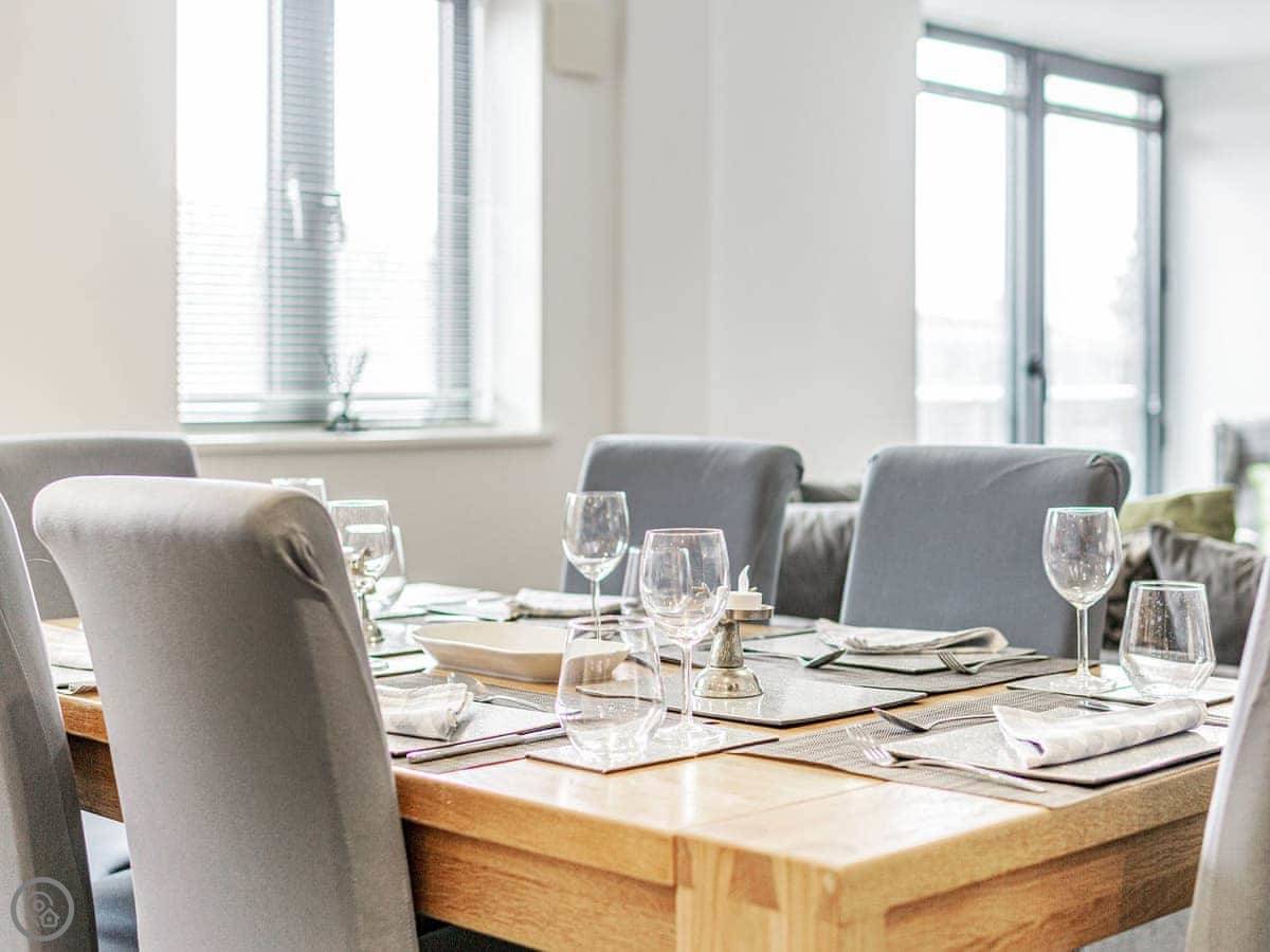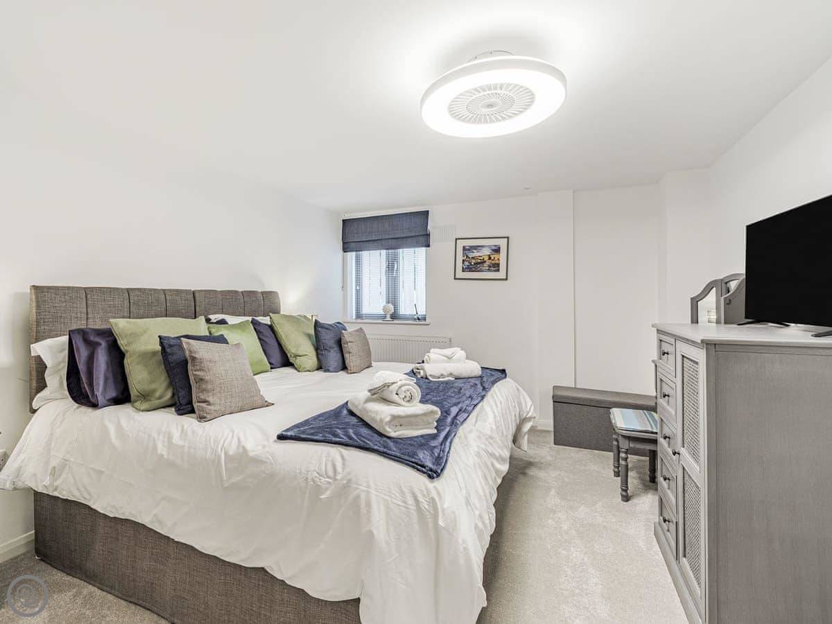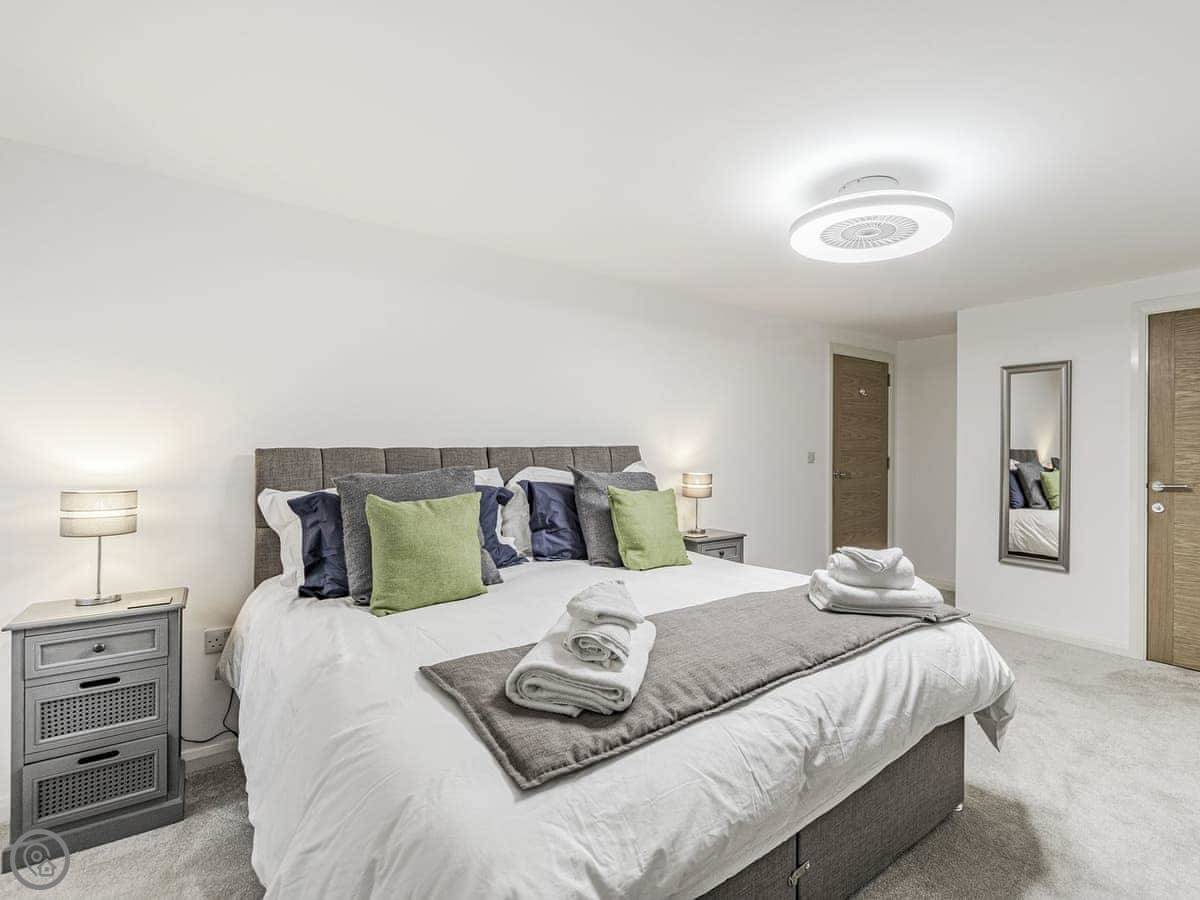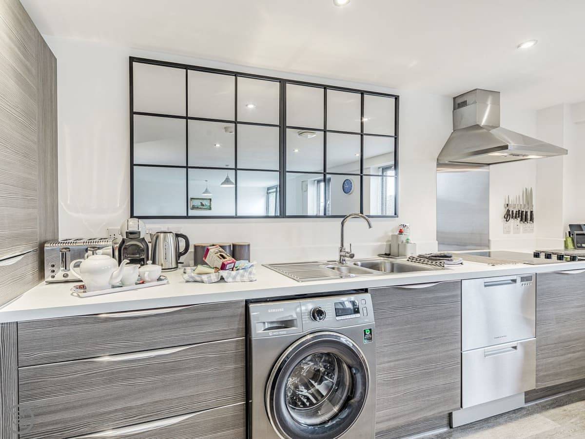 Part of an original working Malthouse, this historical building has been converted into a collection of elegant apartments which ooze charm and character at every turn. Alnwick Pad is an upper ground floor apartment, accessed by a lift or stairs. The apartment opens into a hallway, the spacious open plan living area making a fabulous social space. With modern style kitchen superbly equipped, dining area with quirky champagne bar and stools, leading to the comfortable and stylish living space decorated in blues and greys. The master bedroom has a sumptuous super king bed which can be twin on request, Smart TV and en-suite shower room. The second bedroom is super king, and for flexibility can also be twin beds on request.