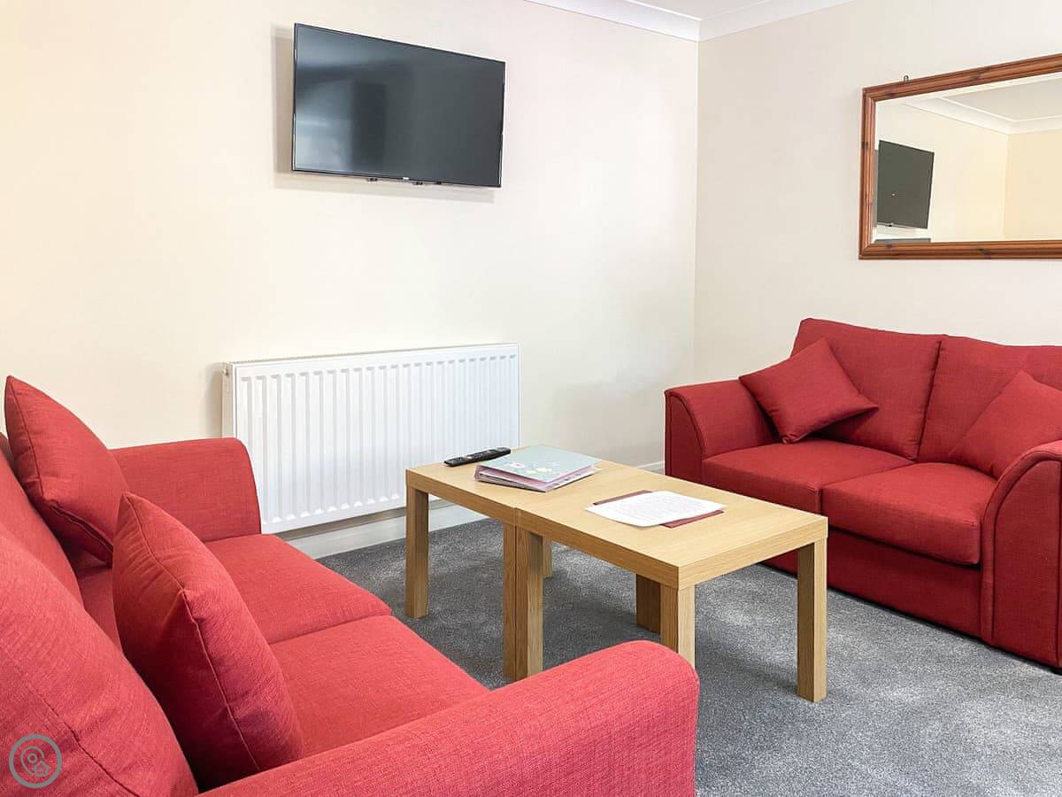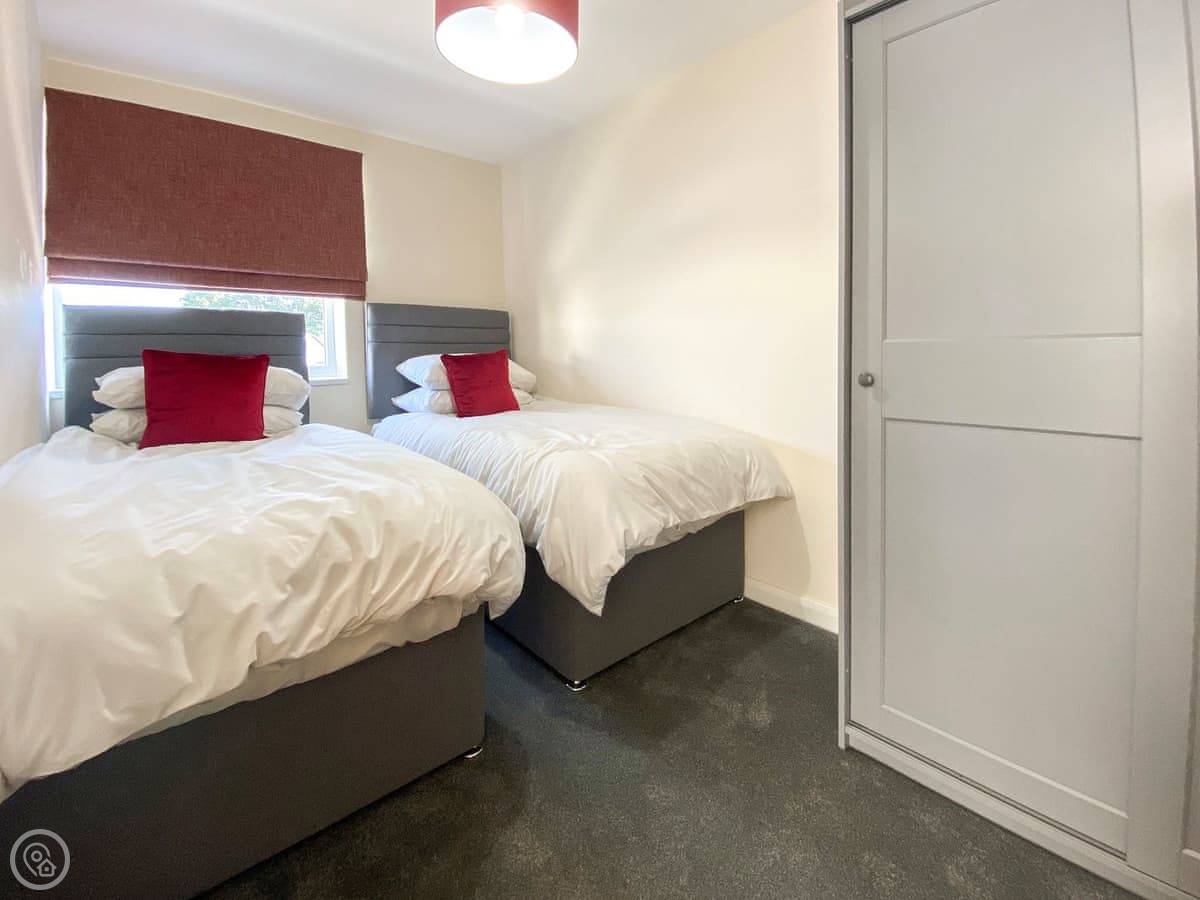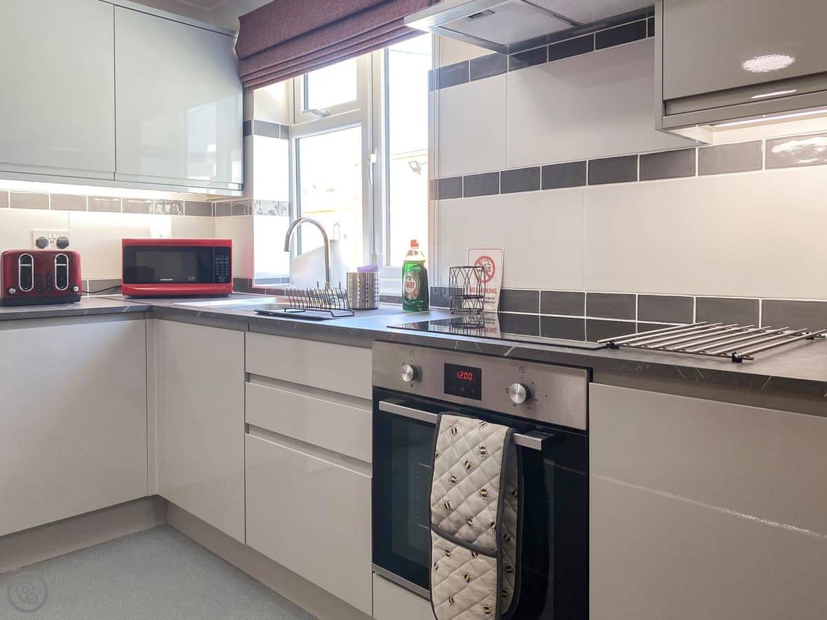 Recently refurbished to a high standard, the modern open plan living area with sleek grey kitchen offers the ideal space to enjoy breakfast together after a day of exploring or for relaxing after a day at the beach. With two tastefully finished bedrooms, with contemporary grey padded headboards and accents of grey and red offering a modern feel, with a double bed and twin beds for you to sink into come evening.