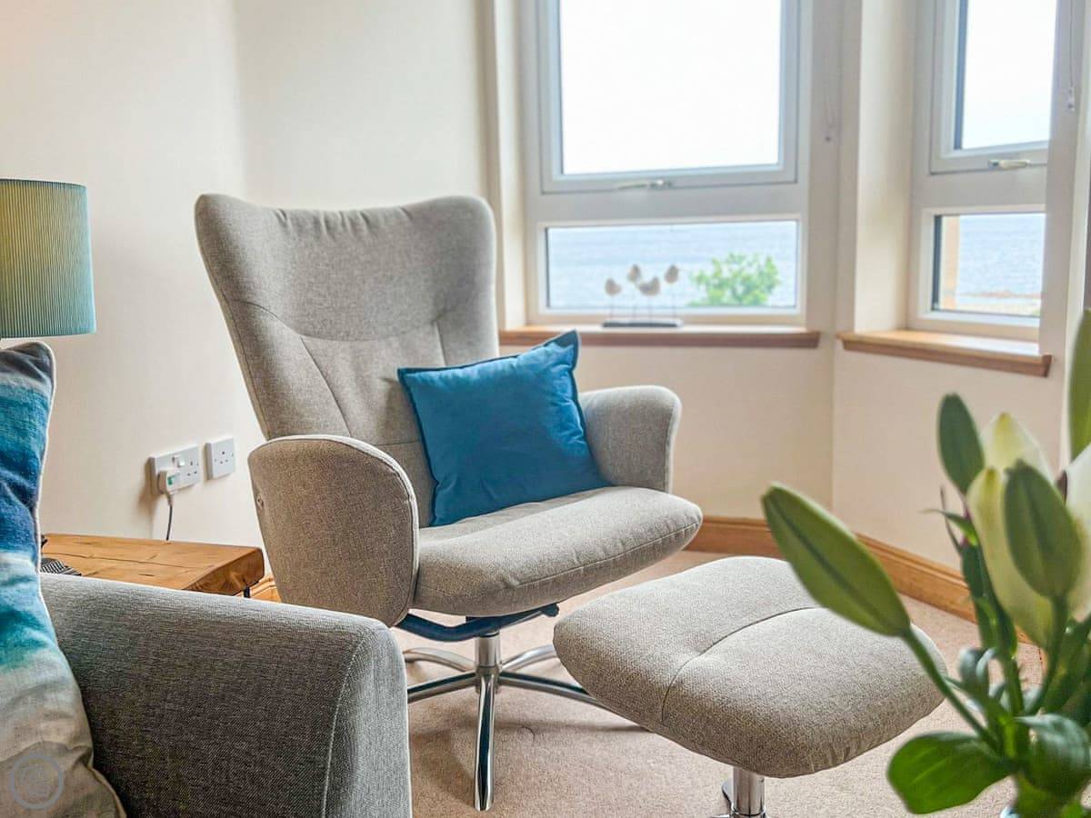 Seashore Apartment is located in the quiet and exclusive Stotfield area of Lossiemouth, has been furnished to a very high standard and is ideal for couples and families of four. Although the apartment is elevated above the sea and seashore, the accommodation is all on one level including external access.