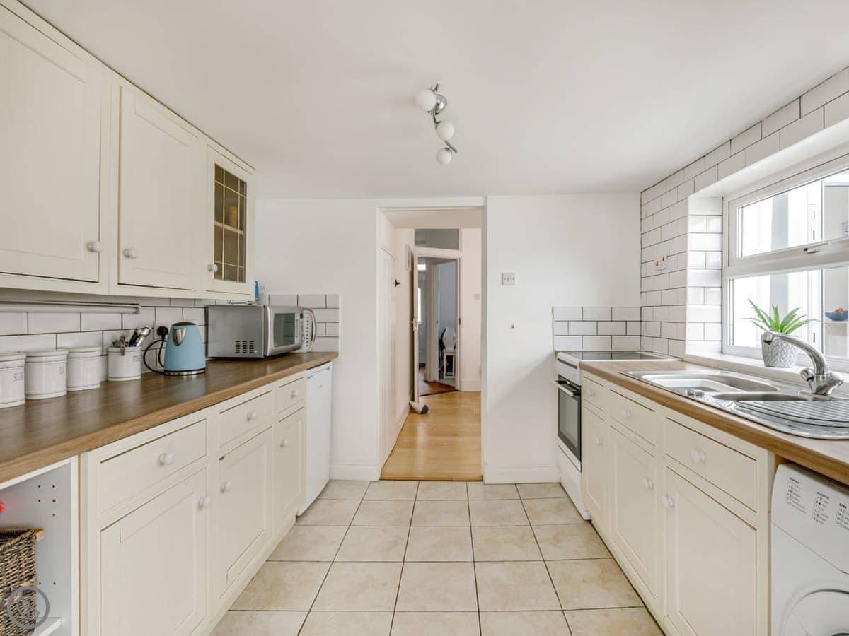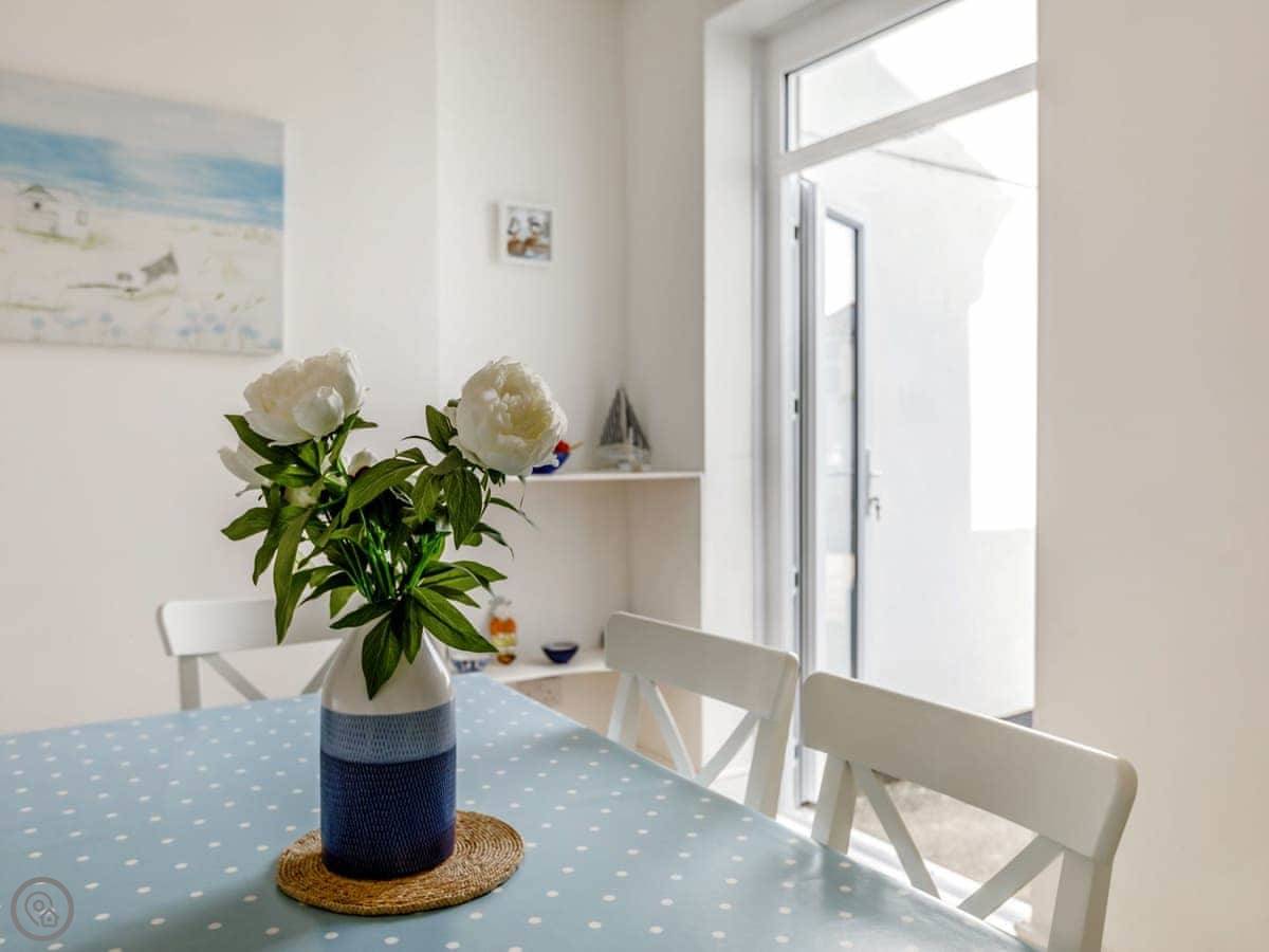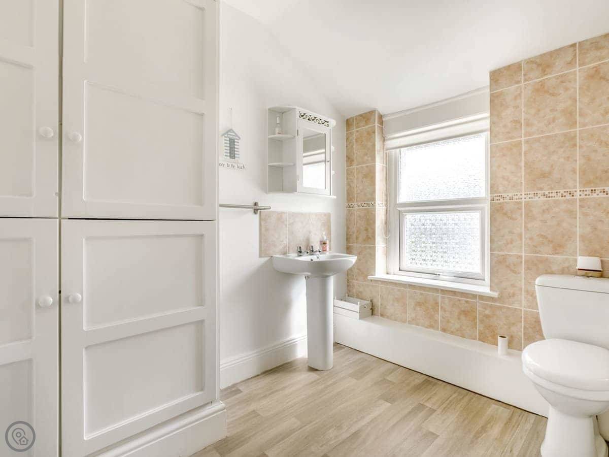 Puffins Cottage is a stylish and spacious three-bedroom terraced cottage in the heart of Ilfracombe, just a 10-minute uphill walk from Harbour Beach and the town centre. Showcasing a private courtyard garden, conservatory and distant sea views from the garden and one of the double bedrooms. This is the perfect base for families, friends and couples looking to relax by the coast. Step inside to discover the cosy living room which feels bright and modern with two comfortable sofas and a Smart TV with Freeview. The dining room offers a great space to enjoy a celebratory meal and the kitchen is fully equipped with an electric cooker, microwave and an under-counter fridge with an icebox. This then leads into the small conservatory area and the enclosed courtyard garden which are both real suntraps and offer peaceful spots to relax with your morning coffee. Head upstairs to find the three bedrooms where you can enjoy a restful nights sleep with the choice of a king, double and single room. The modern and spacious bathroom is fitted with a shower over the bath, toilet and sink.