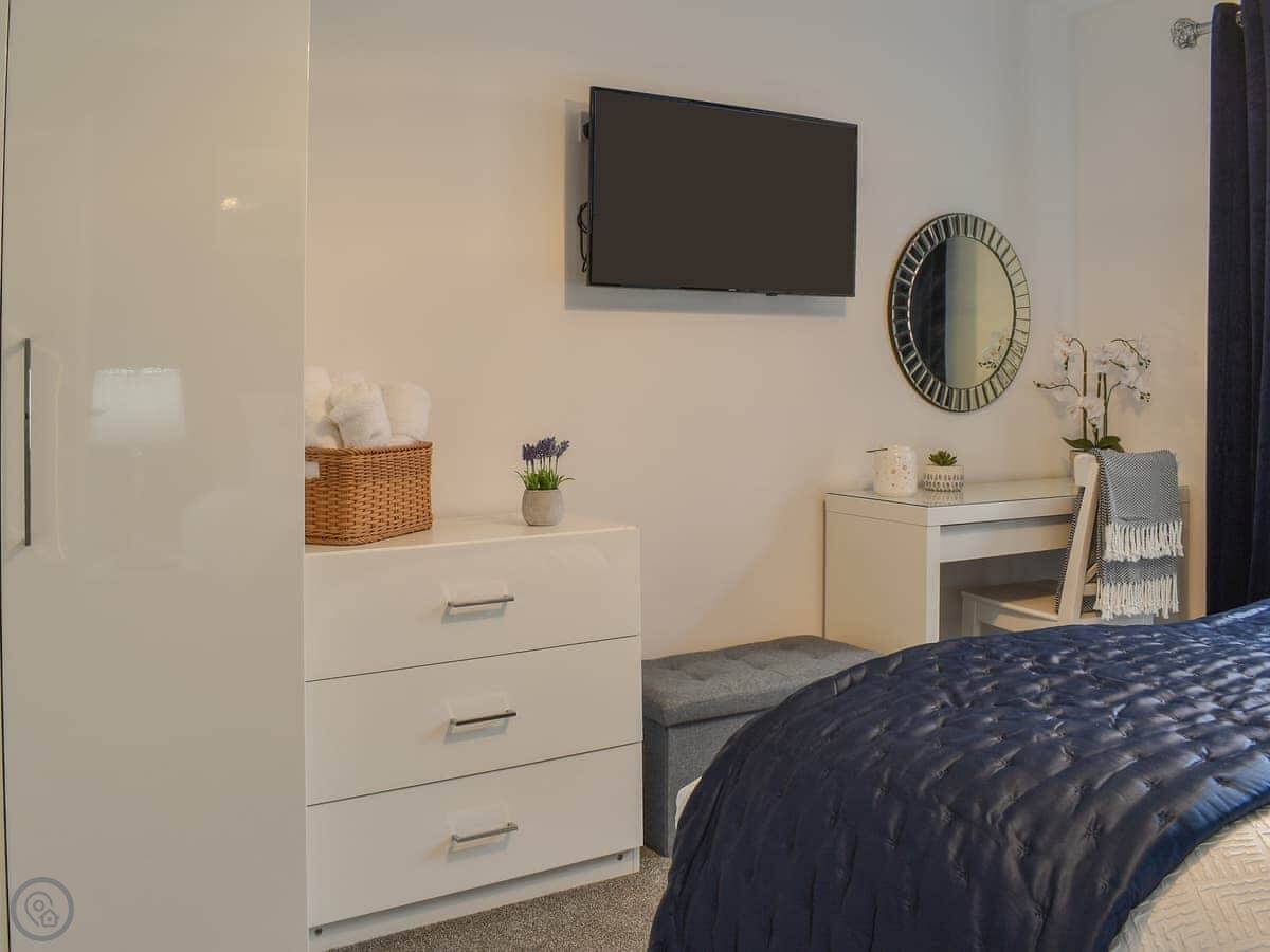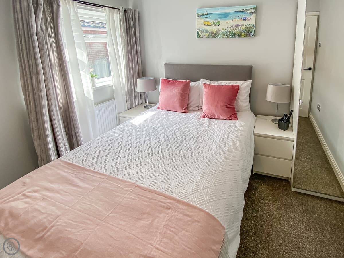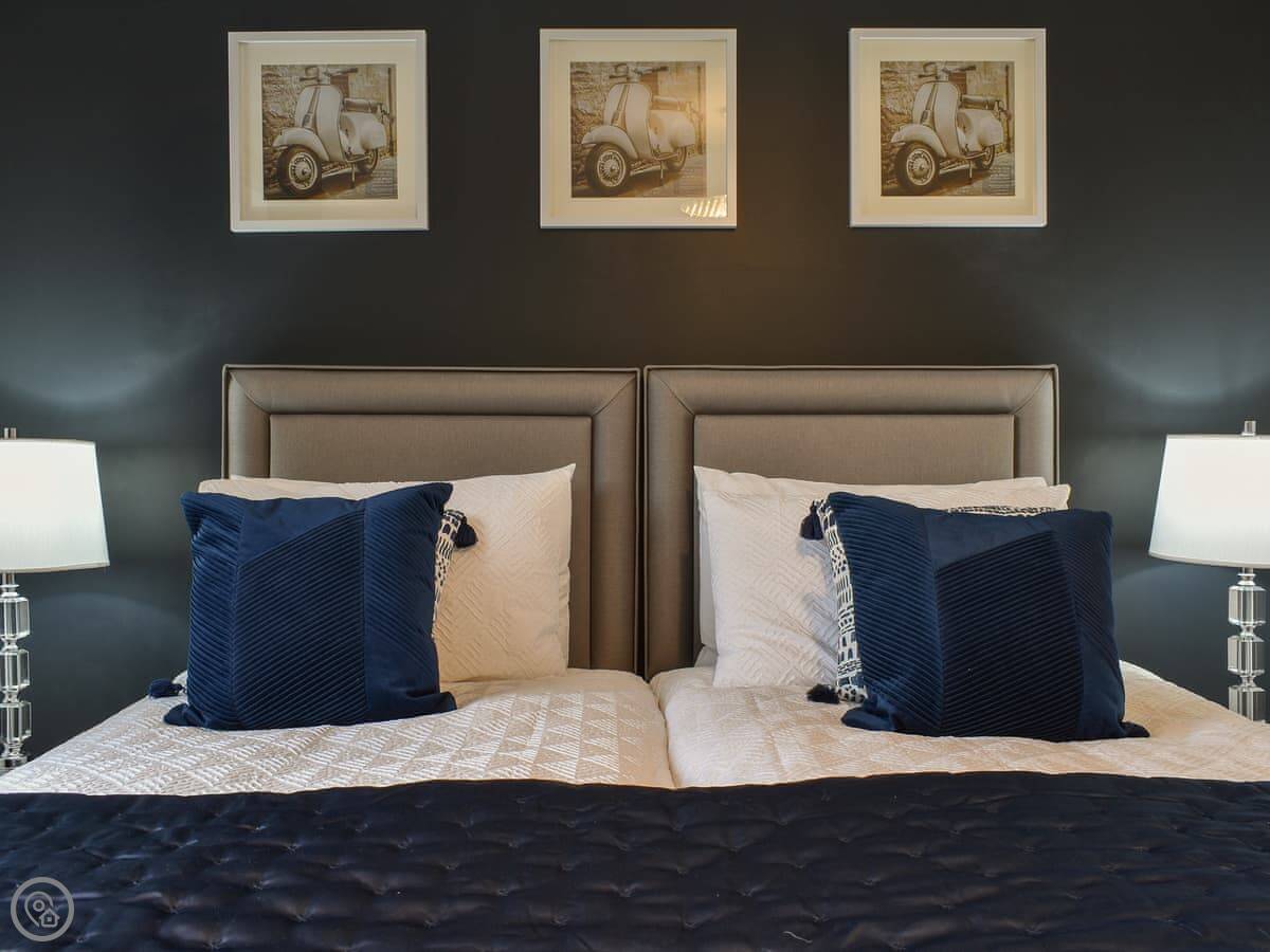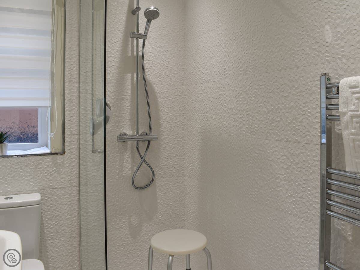 It sleeps six people in three bedrooms. There are two bathrooms. One is a wet room with a walk-in shower. It has grab rails.