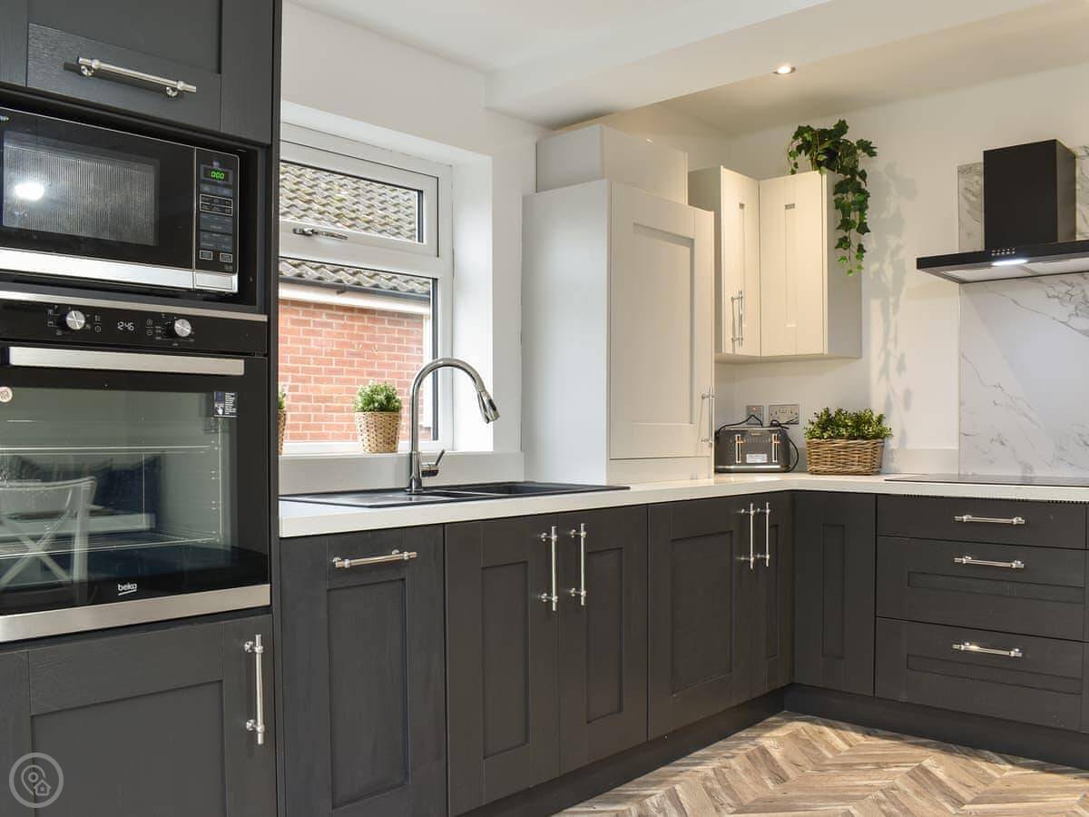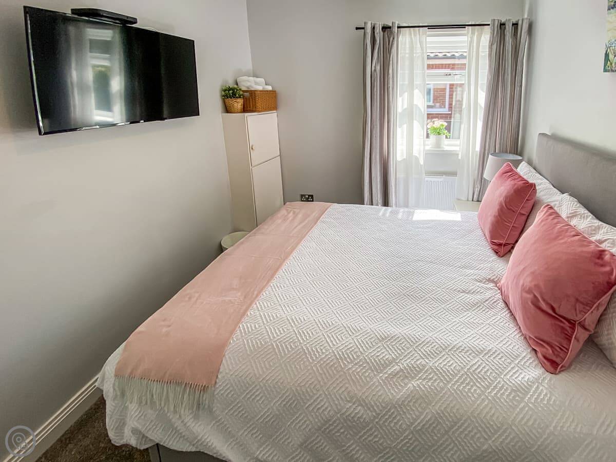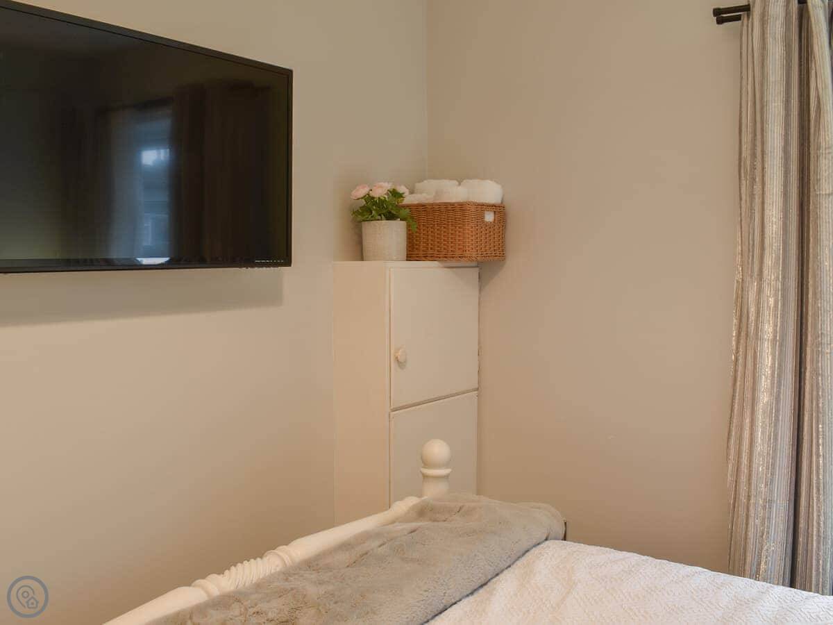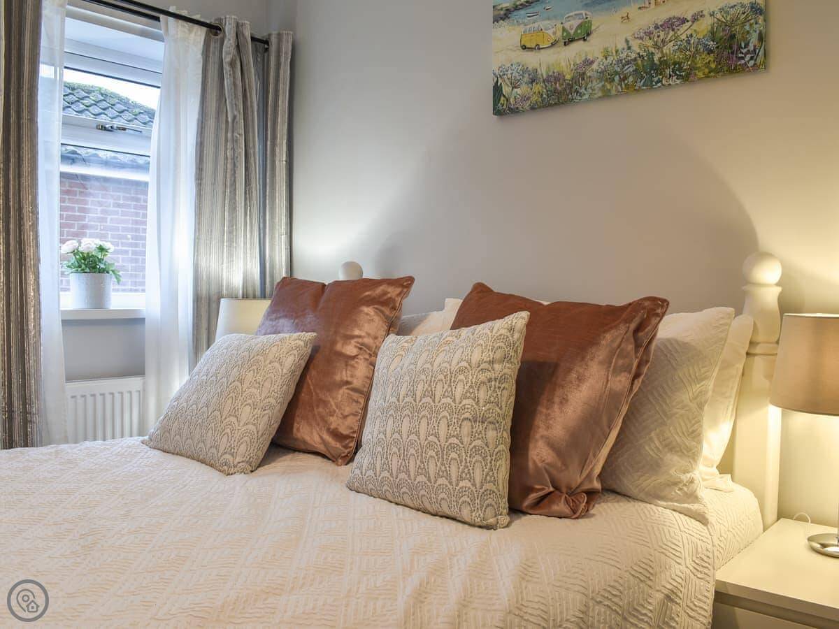 It sleeps six people in three bedrooms. There are two bathrooms. One is a wet room with a walk-in shower. It has grab rails.