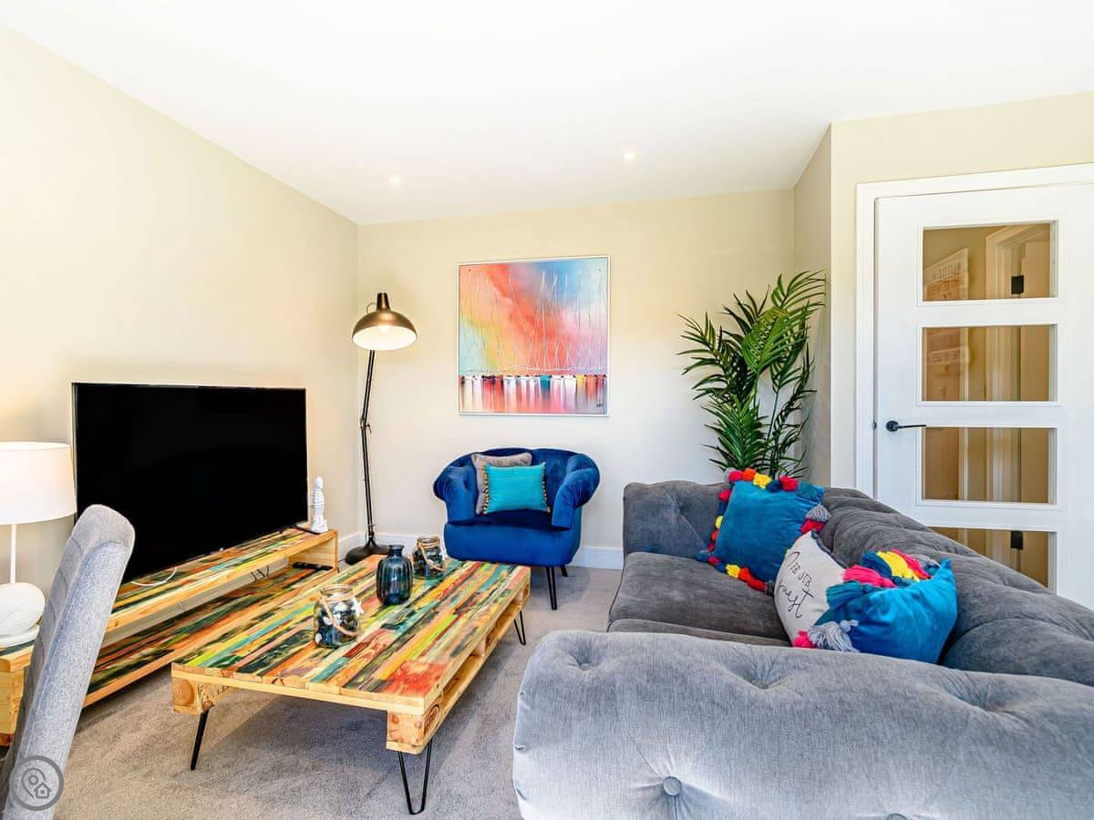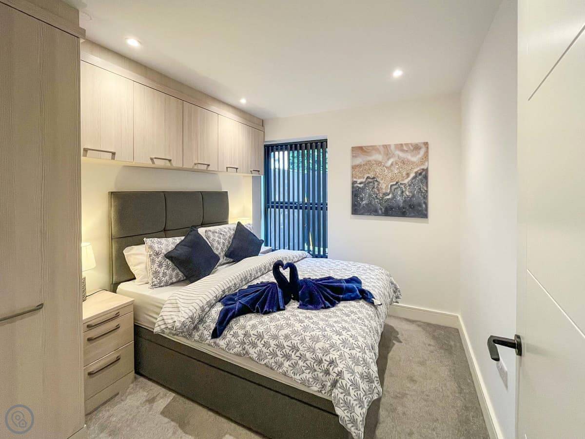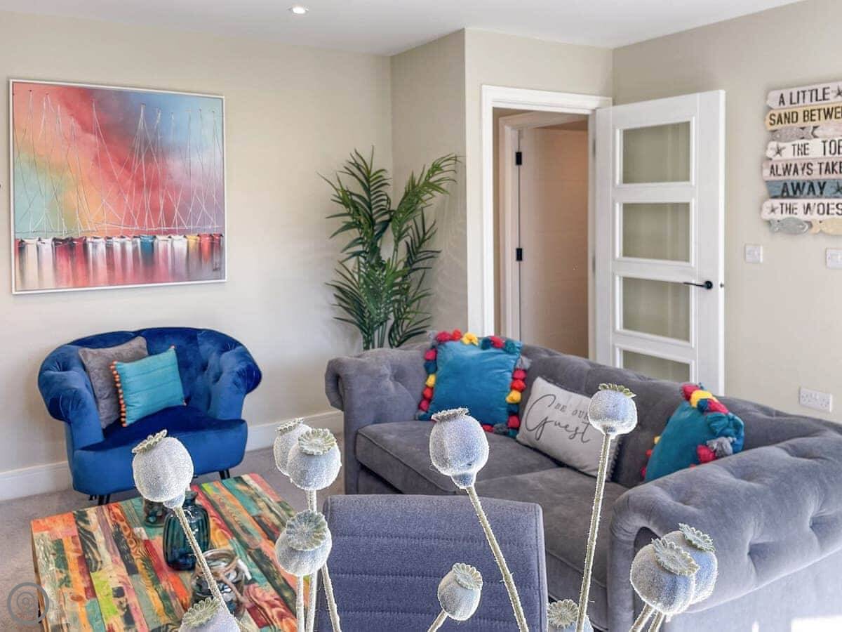 Stepping inside you are welcomed into a beautifully presented open plan living area bathed in light with large windows as well as glass doors opening out onto your private enclosed patio, where you can sit out and soak up the sun, perhaps enjoy al fresco dining with a glass of something special. The living area has comfortable seating around the large Smart TV, with a modern kitchen with integrated appliances. The room is complete with a dining table, perfect for enjoying meals together. There are two bedrooms, the master double bedroom as well as a twin both with fitted wardrobes. Each room is carefully furnished to ensure you have a comfortable and welcoming stay. The apartment is finished with a bath room with a shower over the bath where you can start or end each day in this refreshing shower or a relaxing soak.