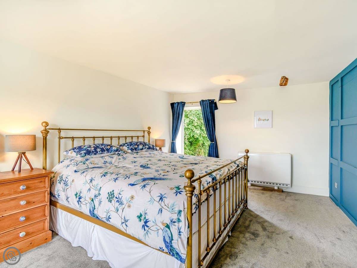 It sleeps four. Two bedrooms, both with their own shower room. It’s got a 4 Star rating. It’s comfortable and well-kept. There’s a wood burner in the living room, which is good for taking the chill off in the evenings. The kitchen has a range cooker, which works well. The front garden is walled, so it’s enclosed. The back garden is bigger and gets the sun.