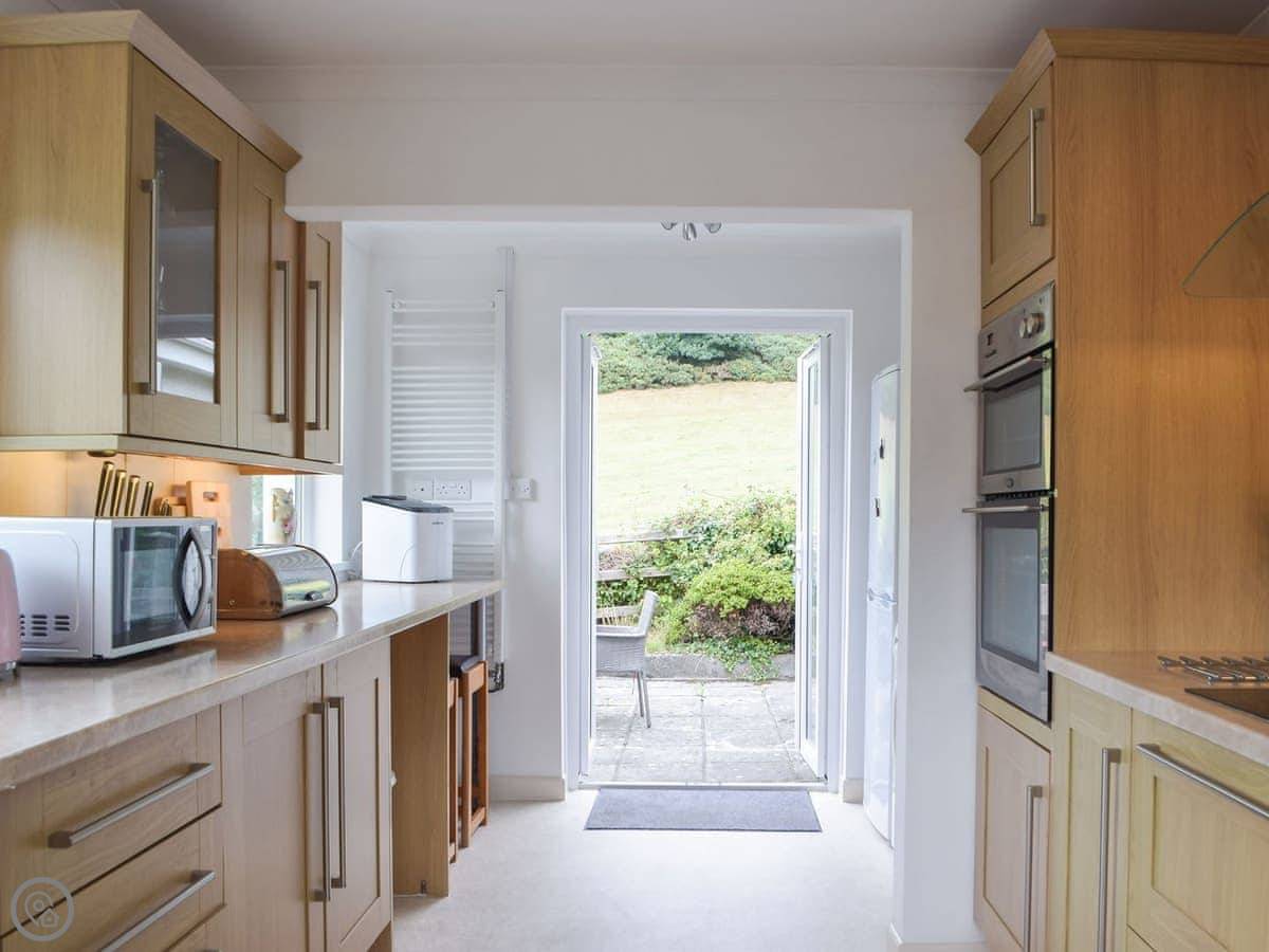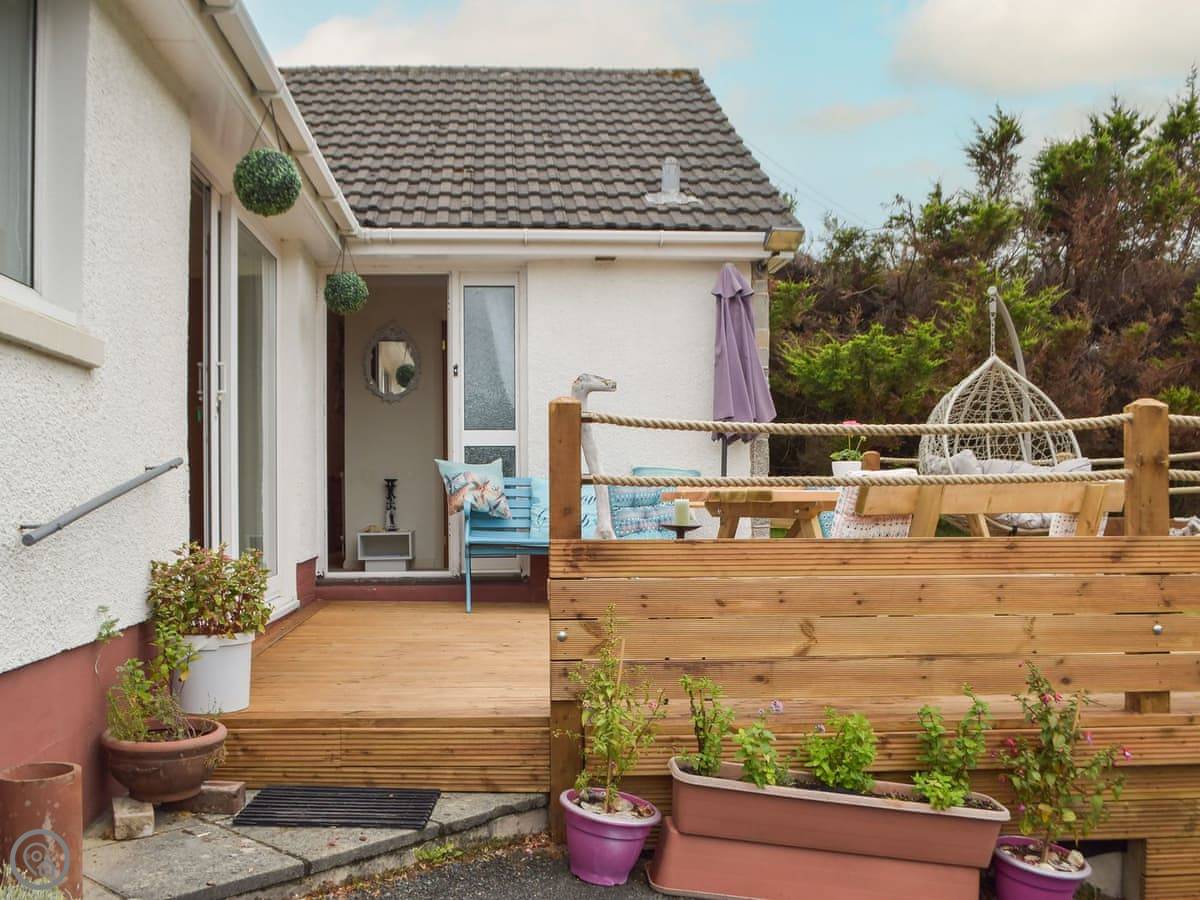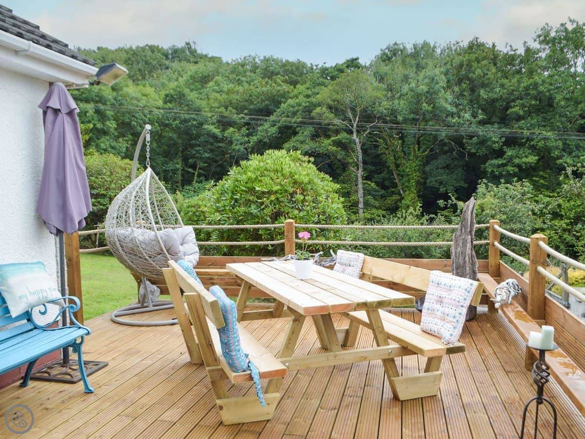 Bella Vista is set in a elevated position within the village of Tresaith and is all on one level, the well equipped galley style kitchen leads to the rear garden and is perfect to cook that special meal complete with double oven, electric hob and an ice maker. The spacious open plan living and dining area is flooded with natural light and leads out to the rear garden and hot tub and also to the front a beautiful raised decked terrace with seating area overlooking the wooded valley, is perfect for dining alfresco. Each bedroom has been thoughtfully furnished to a good standard. From your private garden you can enjoy distant sea views out across the Cardigan Bay, perfect for enjoying the vista with a glass of wine or enjoy a soak in your very own hot tub.