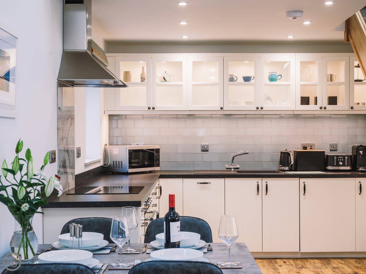Inside, there's a smart TV, wifi, a Nespresso machine, and a good selection of books. The kitchen has what you need for cooking and baking. There's a welcome pack with some local bits when you arrive.