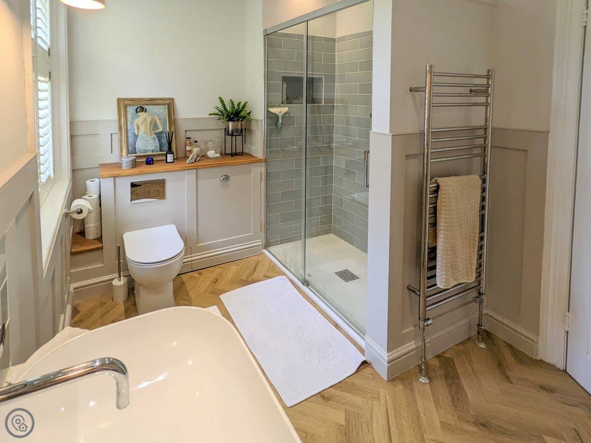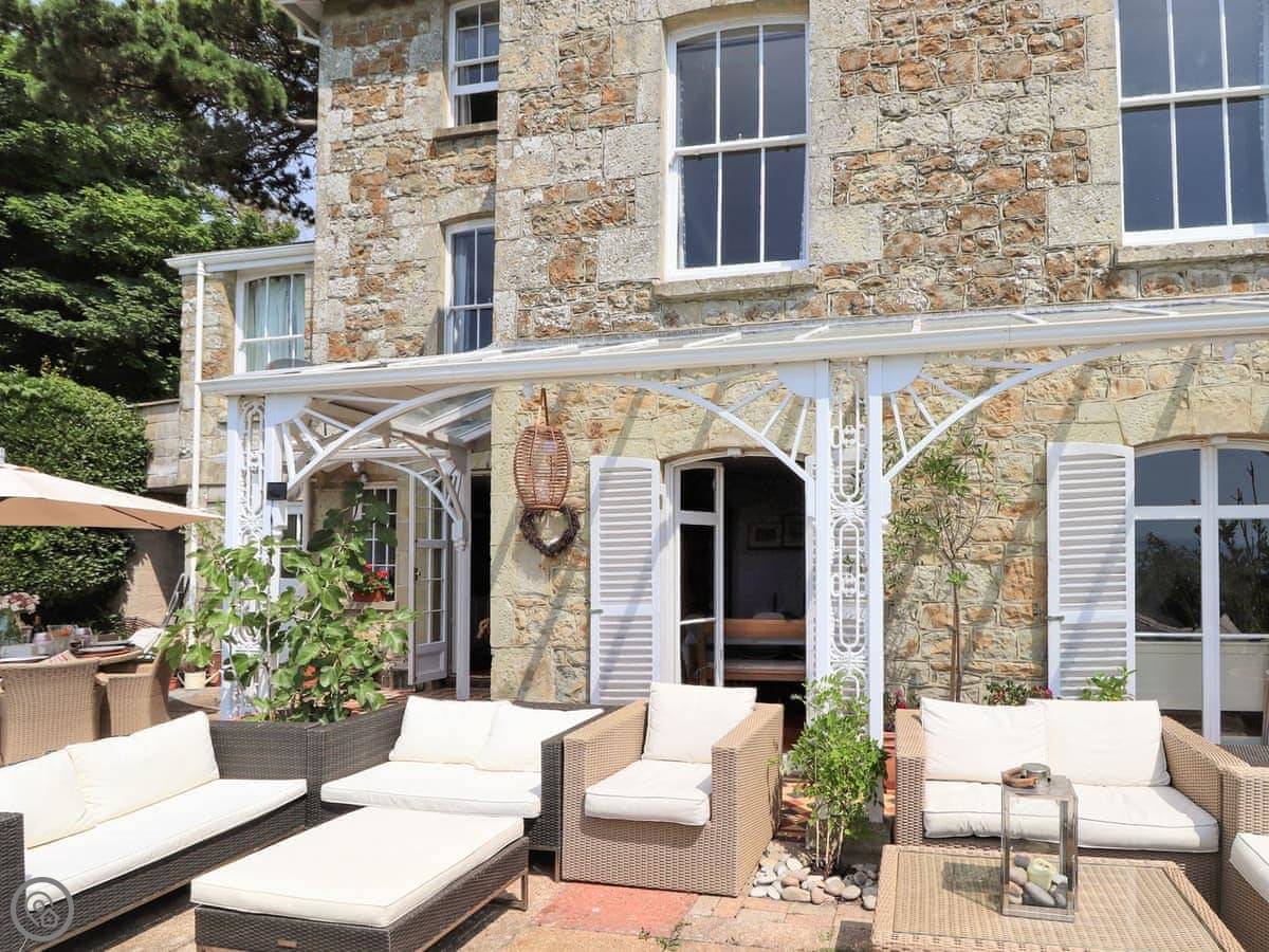 La Falaise is a five bedrooms, three bathrooms property with ‘Mediterranean’ style rear gardens that feature a wealth of mature trees and ornamental shrubs. The real feature of the garden is the stunning south facing patio with plenty of garden furniture to relax, dine al fresco or enjoy a glass of wine whilst admiring the wonderful sea views.