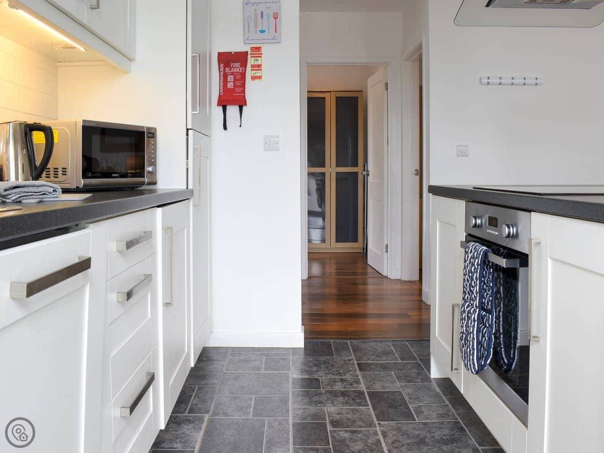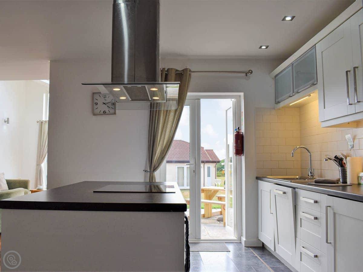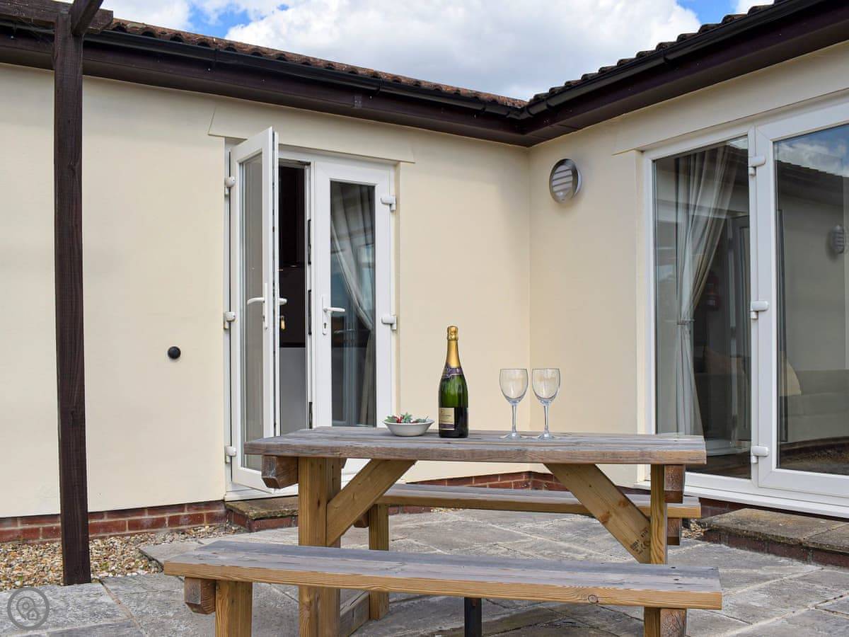 This single storey self-catered cottage showcases a beautiful open plan kitchen, dining and living area with two sets of patio doors leading out to the patio area. The kitchen is well-equipped and has a large island worktop which takes centre stage in the room. The dining table provides a great space to enjoy a family meal and the living area is comfortably furnished with two sofas and a Smart TV with Freeview. After a busy day exploring the area, step out onto the patio which has bench seating and a parasol. This outdoor space is a real suntrap and it is a great spot for enjoying your morning coffee whilst planning your adventurous day ahead. As the evening draws to a close, drift off to sleep within one of the two well-presented bedrooms which have been furnished with high quality fogarty bedding and mattresses; the first has a kingsize bed and the other has twin beds. The modern family bathroom is fitted with a shower cubicle, bathtub with a shower head attachment, heated towel rail, toilet and sink.