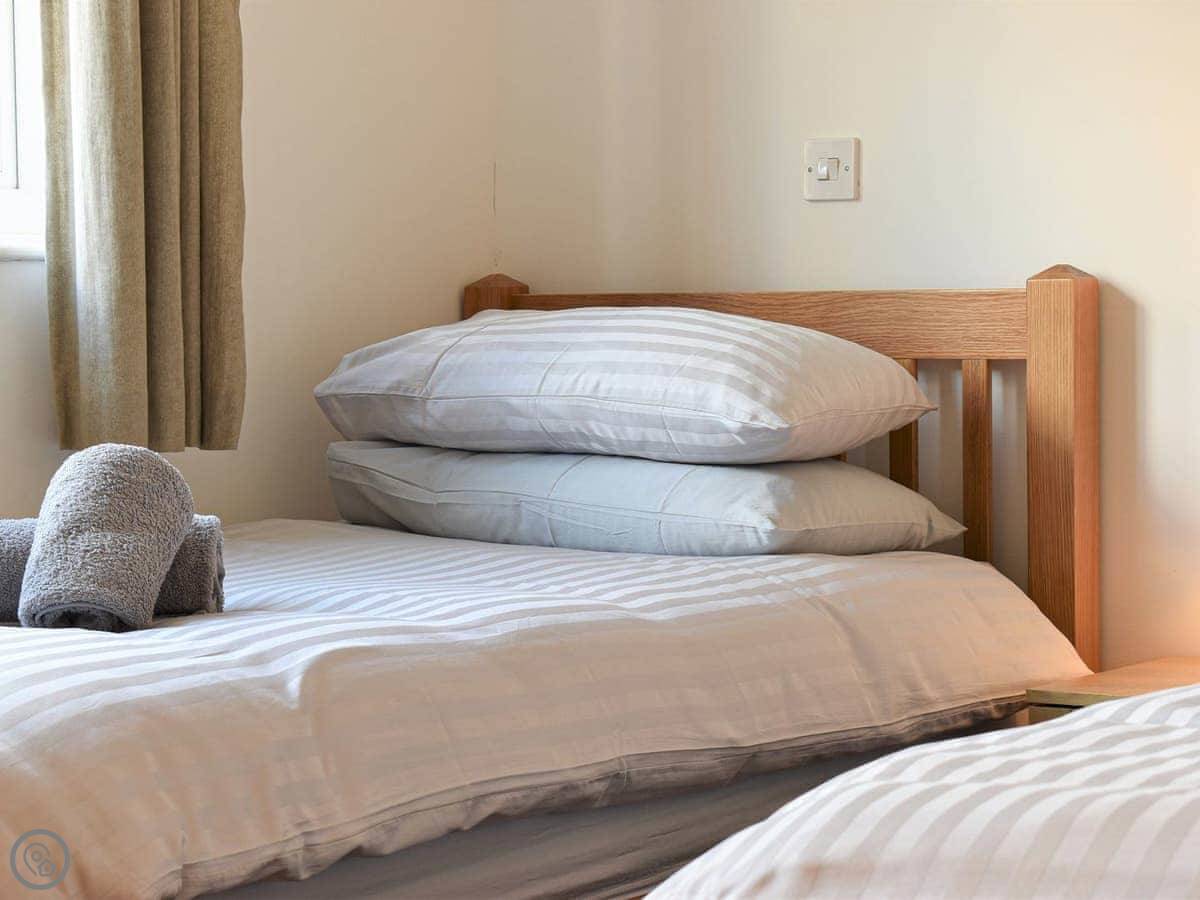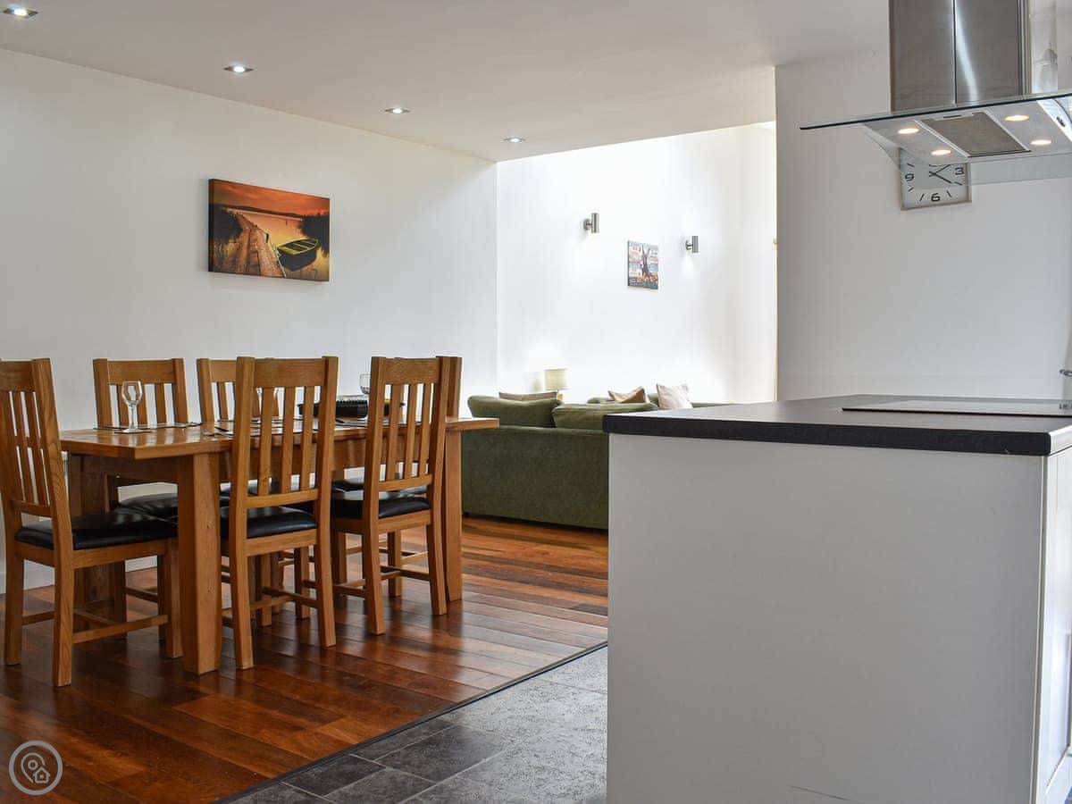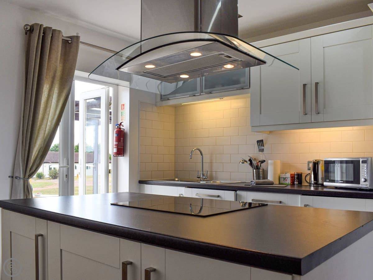 This single storey self-catered cottage showcases a beautiful open plan kitchen, dining and living area with two sets of patio doors leading out to the patio area. The kitchen is well-equipped and has a large island worktop which takes centre stage in the room. The dining table provides a great space to enjoy a family meal and the living area is comfortably furnished with two sofas and a Smart TV with Freeview. After a busy day exploring the area, step out onto the patio which has bench seating and a parasol. This outdoor space is a real suntrap and it is a great spot for enjoying your morning coffee whilst planning your adventurous day ahead. As the evening draws to a close, drift off to sleep within one of the two well-presented bedrooms which have been furnished with high quality fogarty bedding and mattresses; the first has a kingsize bed and the other has twin beds. The modern family bathroom is fitted with a shower cubicle, bathtub with a shower head attachment, heated towel rail, toilet and sink.