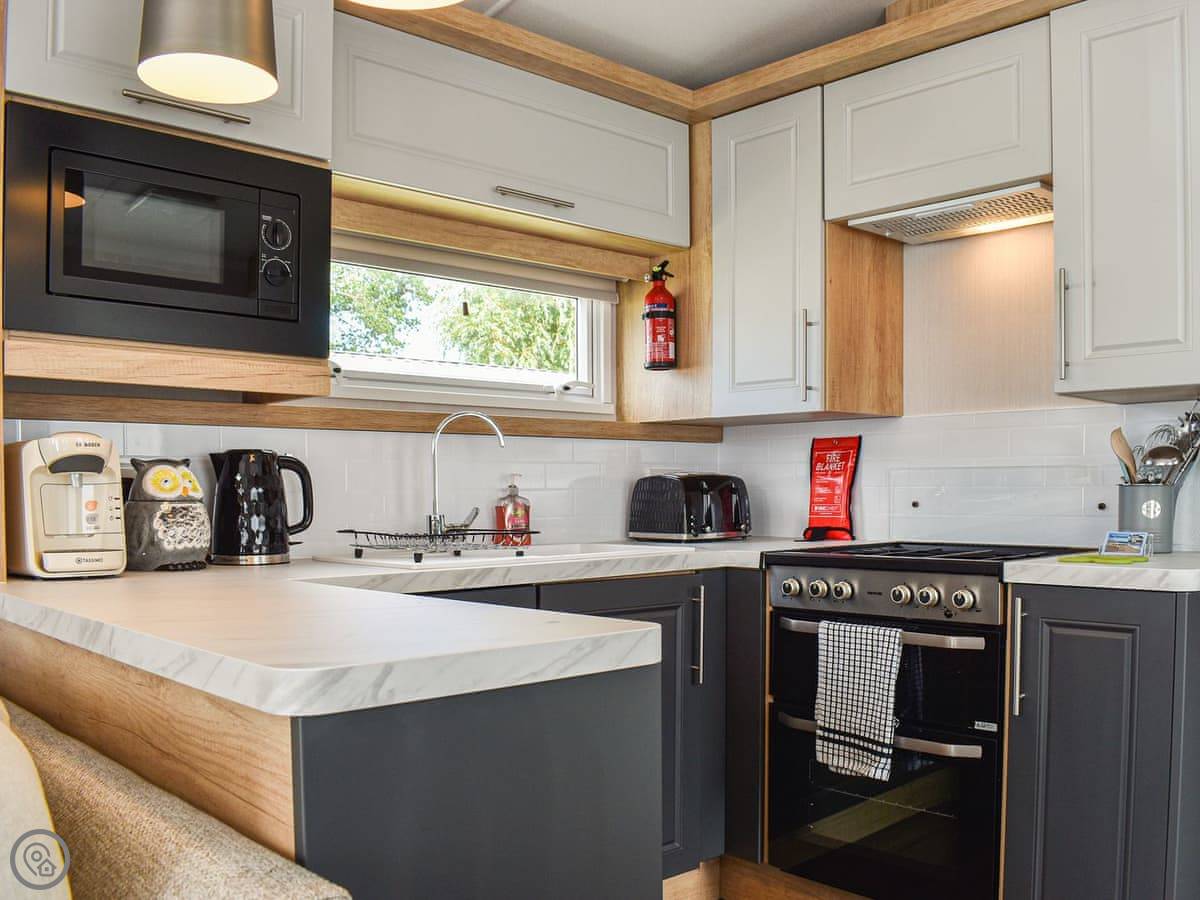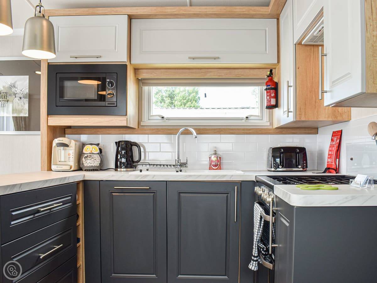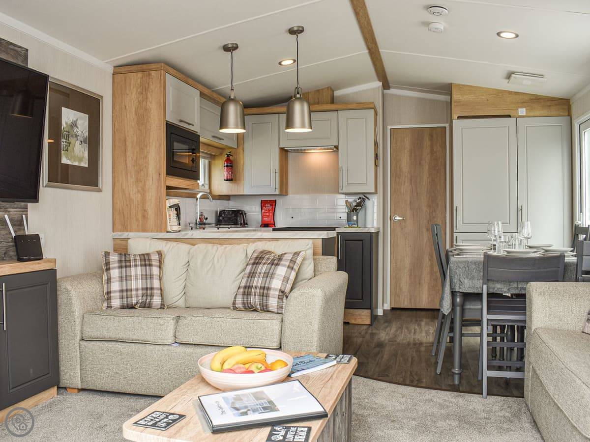 Welcome to Deep Cove, a wonderful caravan set right on the lake in the fabulous Butlins Minehead resort! Brand new in 2022, you enter into the open plan kitchen, dining, living area with the kitchen coming very well equipped having a fridge/freezer, dishwasher, gas cooker, microwave and coffee machine as well as all the equipment you need to rustle up a meal at any time of day! The dining area leads to the living area which has comfortable sofas, large smart TV, electric fire and French doors leading to your decked balcony area. Off the rear hallway you have two twin bedrooms, both with wardrobe and smart TV’s, a family shower room with spacious shower cubicle and the master bedroom, with double bed, dressing table, wardrobe, smart TV and en-suite toilet. Outside, you have your decking area with table and chairs while to the side you have a lawned area, patio with table and chairs and access to the lake directly behind.