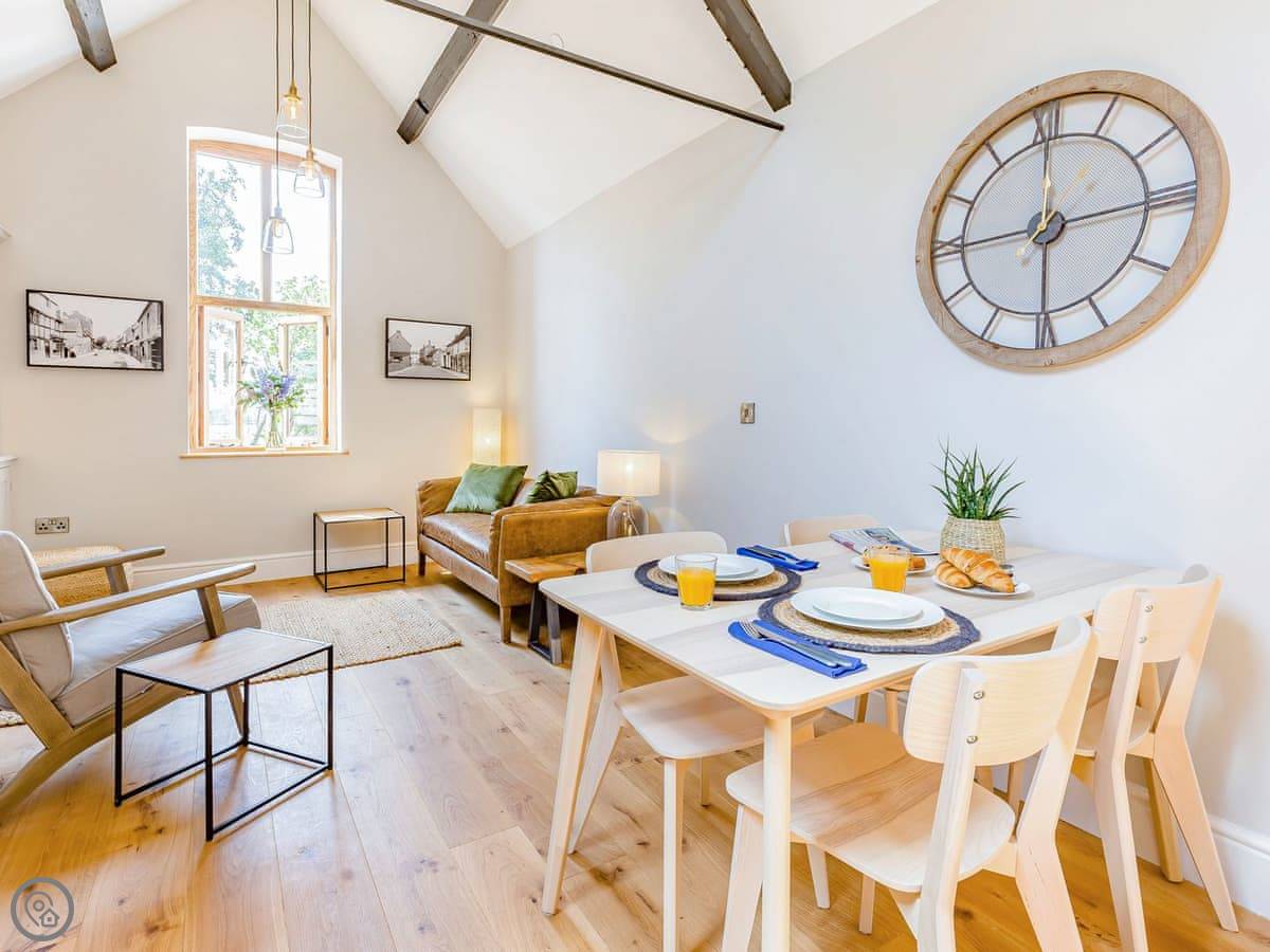 This is The Old Workshop in Bidford on Avon. It's a one-bedroom place, sleeps two. It's on the grounds of the old vicarage, next to the church.