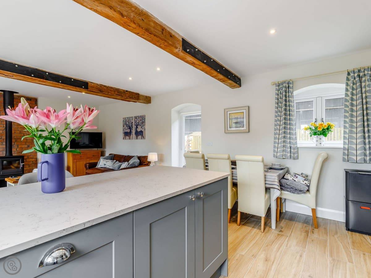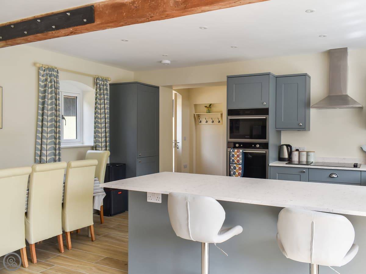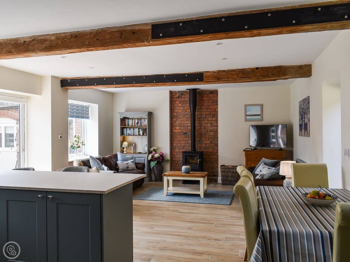 The Hay Loft is the perfect accommodation for five, offering guests a quiet break away from it all. Located on a rural farm, the accommodation has been renovated to a high standard internally with attractive, contemporary and original features throughout. Guests are greeted with a large light and airy open-plan living space, with a large breakfast bar for everyone to gather around. The living area has comfy sofas to relax one whilst the crackling wood burner keeps you nice and toasty. Climb the stairs to bed and you will discover two well-appointed bedrooms with a family bathroom. Outside, the property has an enclosed, partly undercover, garden with artificial grass and a children’s Wendy house, an ideal place to relax with a morning coffee or a glass of something cold whilst planning the day’s adventures.