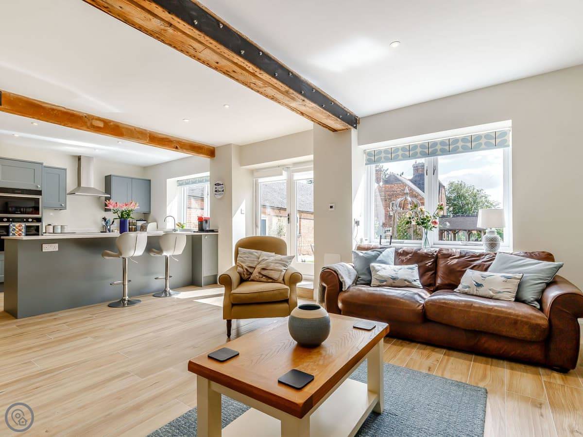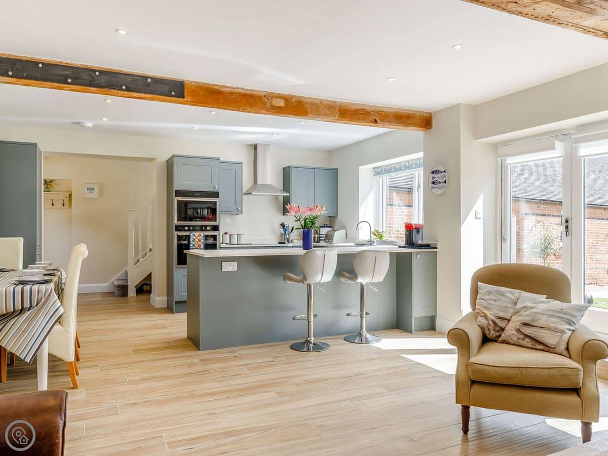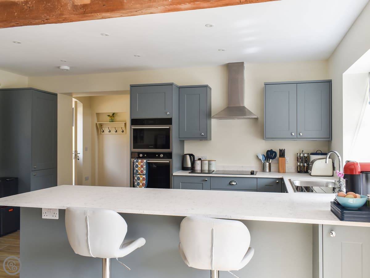 The Hay Loft is the perfect accommodation for five, offering guests a quiet break away from it all. Located on a rural farm, the accommodation has been renovated to a high standard internally with attractive, contemporary and original features throughout. Guests are greeted with a large light and airy open-plan living space, with a large breakfast bar for everyone to gather around. The living area has comfy sofas to relax one whilst the crackling wood burner keeps you nice and toasty. Climb the stairs to bed and you will discover two well-appointed bedrooms with a family bathroom. Outside, the property has an enclosed, partly undercover, garden with artificial grass and a children’s Wendy house, an ideal place to relax with a morning coffee or a glass of something cold whilst planning the day’s adventures.