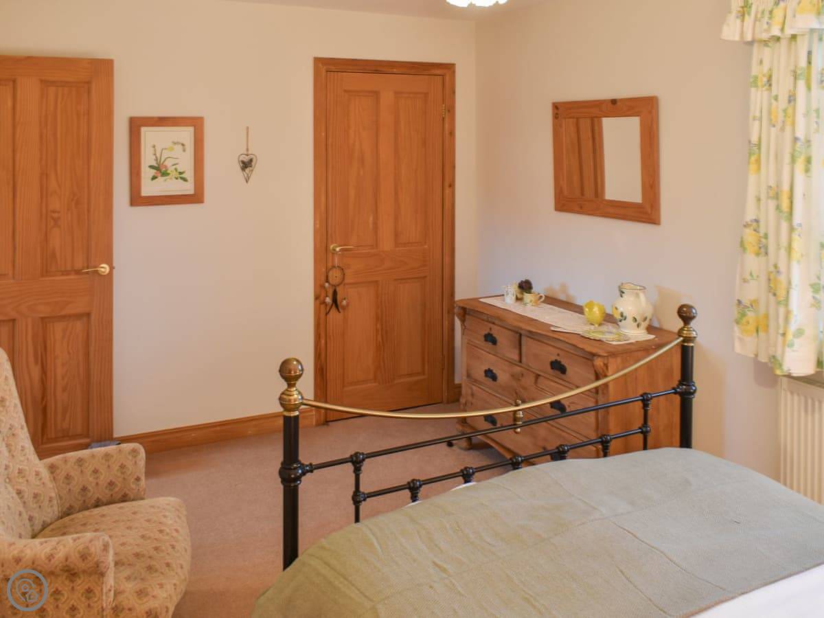 This is Beckside Cottage. It's in Bishop Monkton, which is a small village in North Yorkshire. The cottage is semi-detached and sleeps four people. There are two bedrooms and two bathrooms, which is quite handy.