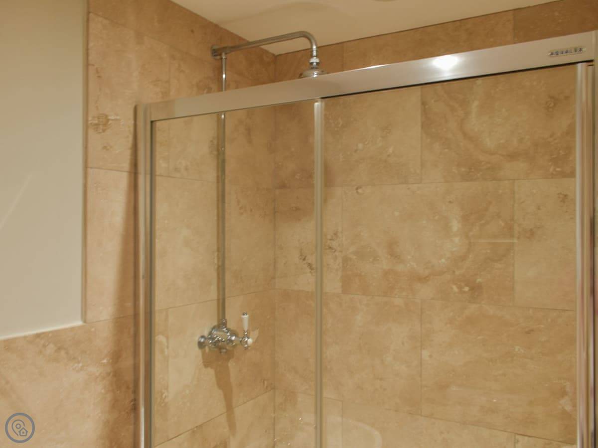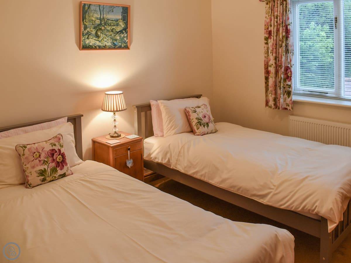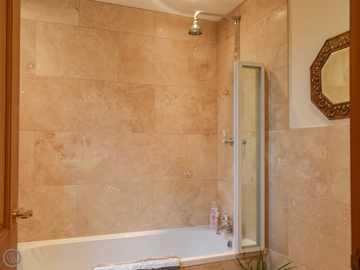 The stairs are normal. The main bedroom has a double bed and its own bathroom. The other bedroom has twin beds and there's a second family bathroom with a shower over the bath.
