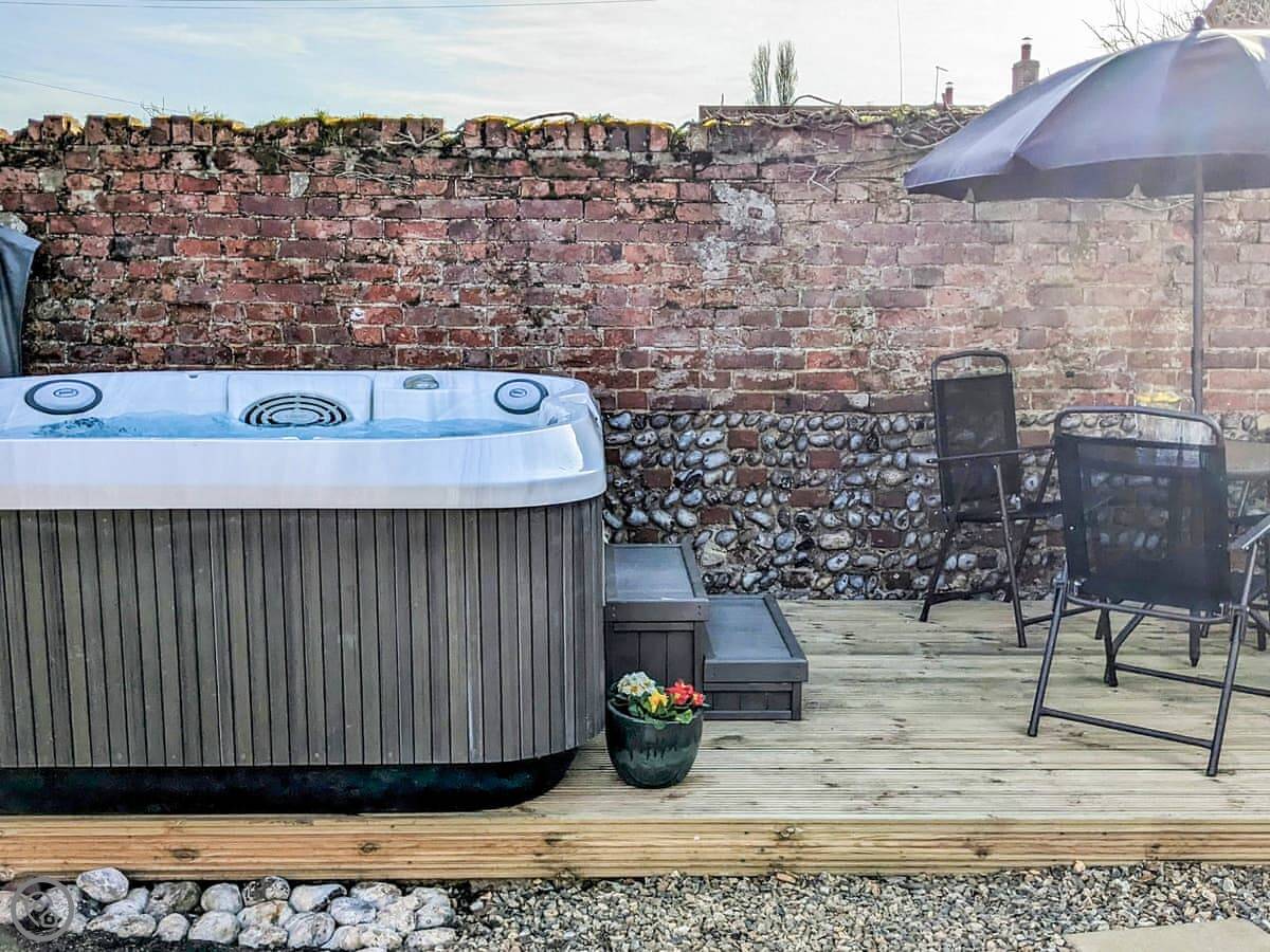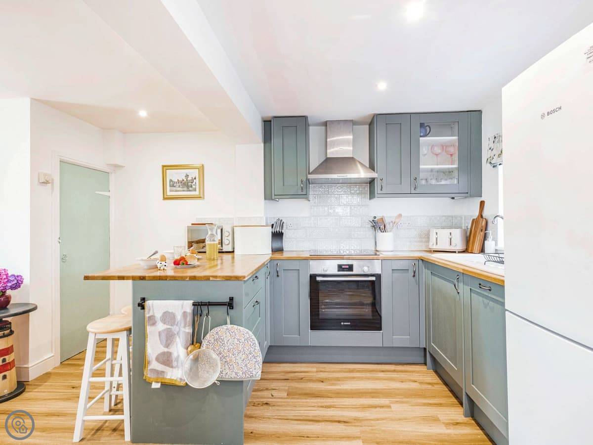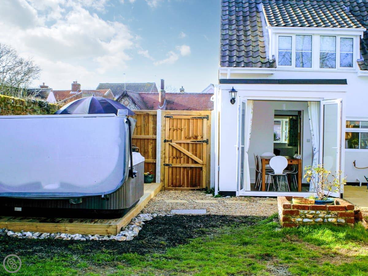We finished a full refurbishment in 2022. It's open plan downstairs, with a wood burner in the living area. The kitchen is new and has everything you need. The garden is enclosed, which is good if you have dogs or kids. There's a deck with seating and a hot tub out there.
