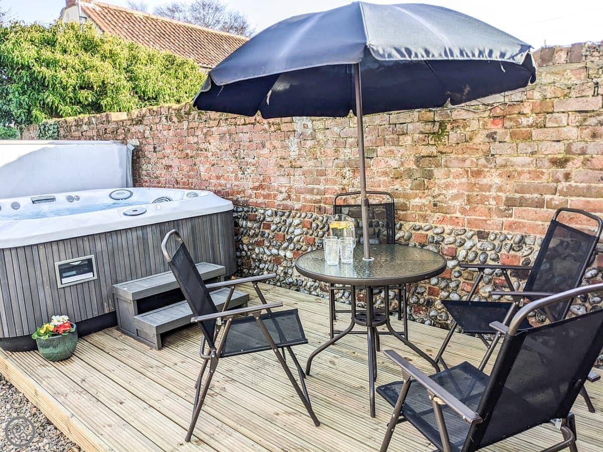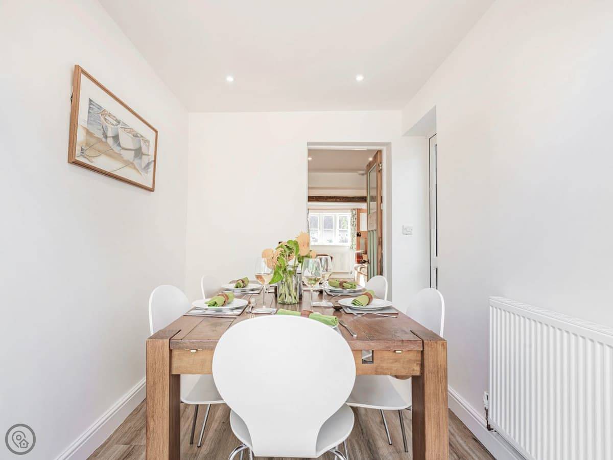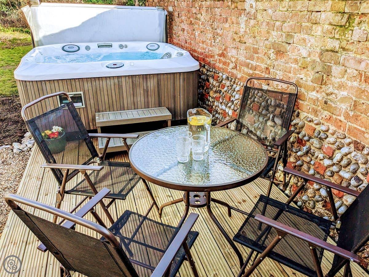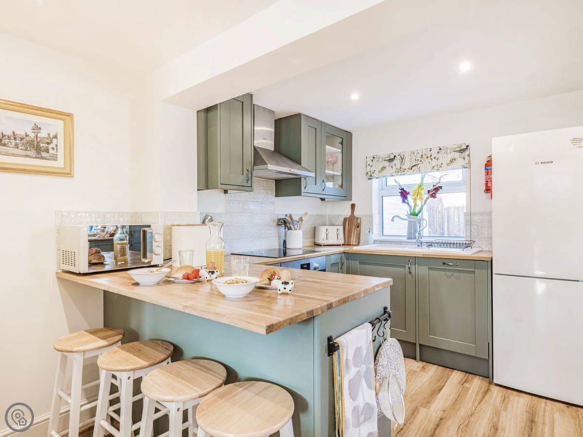 We finished a full refurbishment in 2022. It's open plan downstairs, with a wood burner in the living area. The kitchen is new and has everything you need. The garden is enclosed, which is good if you have dogs or kids. There's a deck with seating and a hot tub out there.