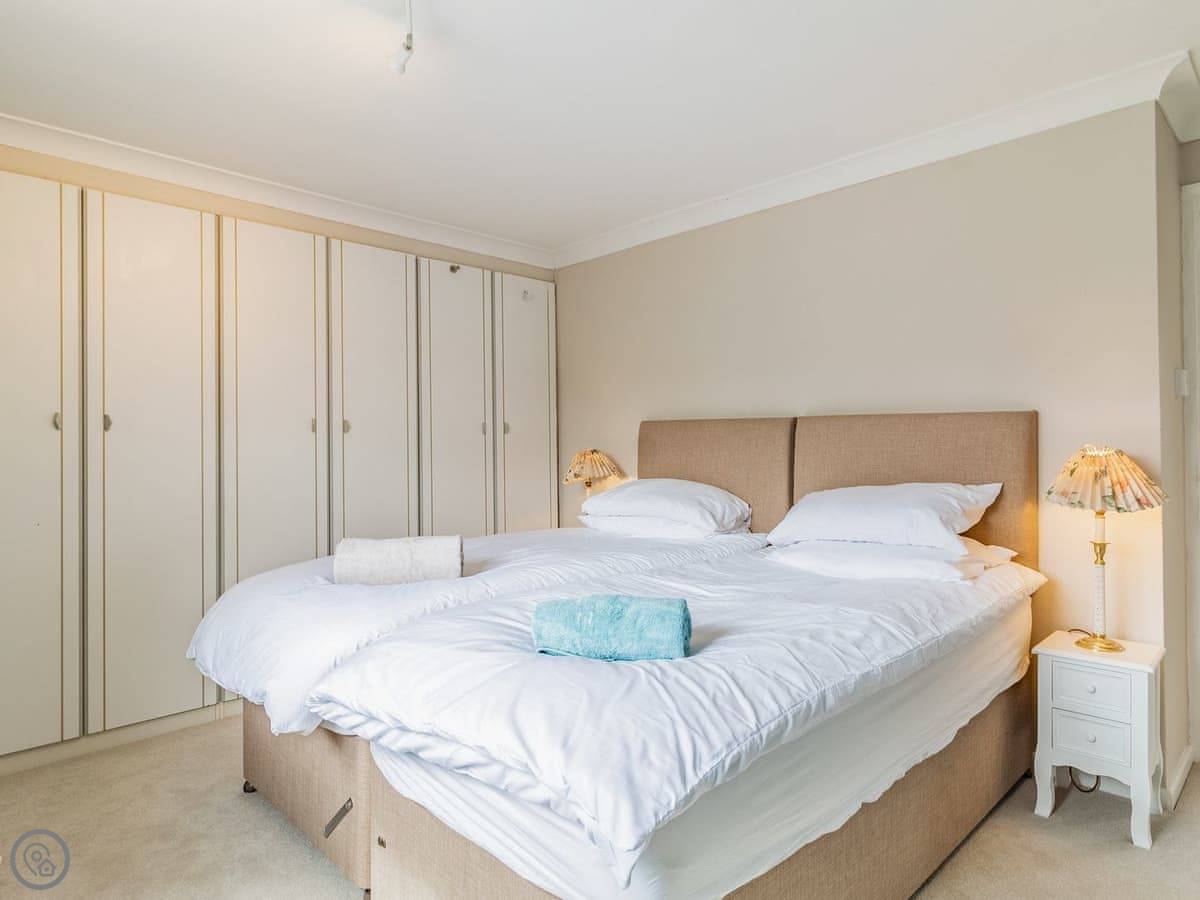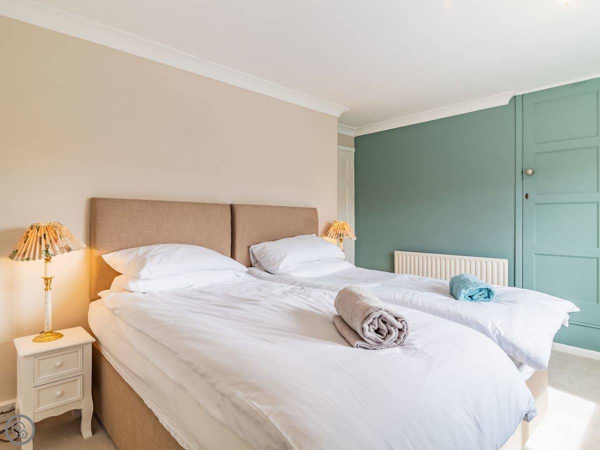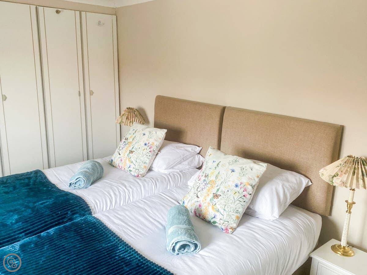Upstairs, two of the bedrooms have zip and link beds. That means you can have them as super king size beds or as twins. Useful if you're two couples or a family. The stairs are fine, but they are a bit steep at the top, just so you know.