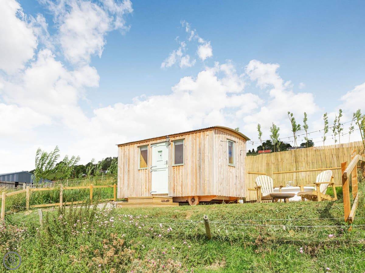 This is Hut One at Woodside. It's near Bottacks, outside Strathpeffer. It's a small, detached wooden hut on a farm. It's for two people.