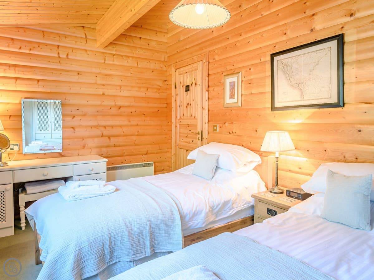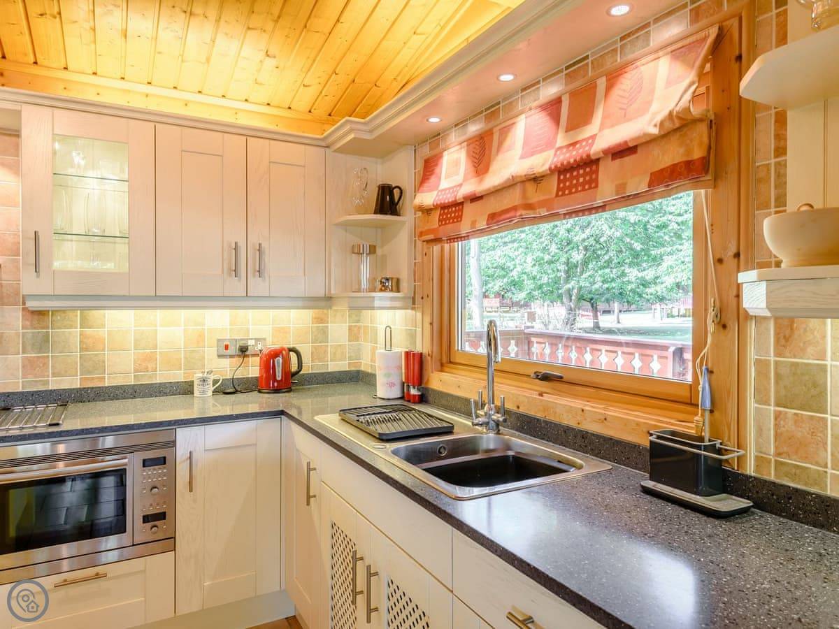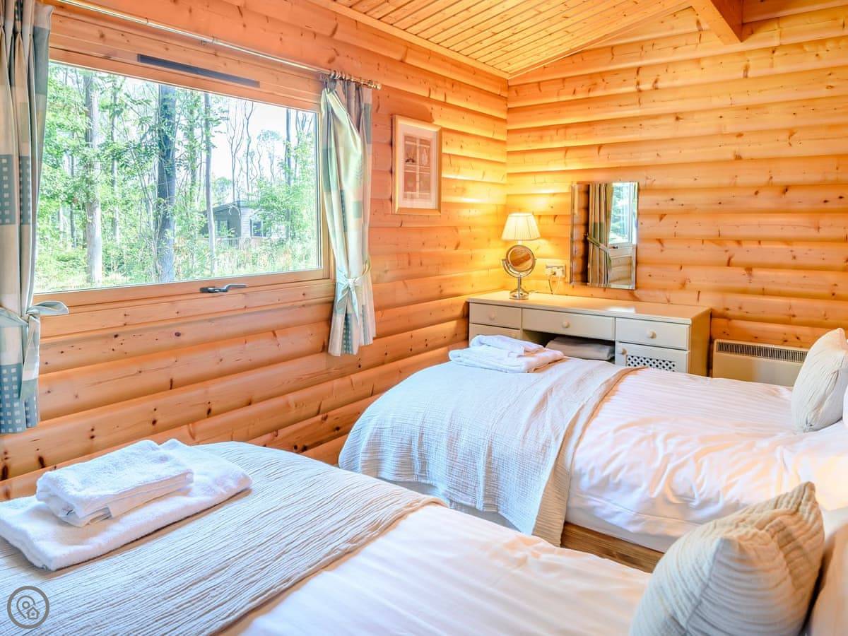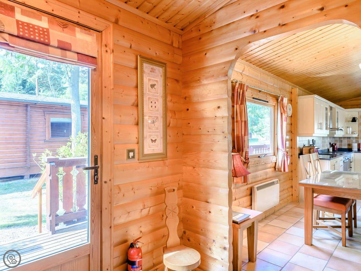 Cherry Lodge is in Little Cawthorpe, which is a small village in Lincolnshire. It's detached, so you won't have anyone on the other side of the wall. It's been done up to the 5 Star standard, which basically means it's new and everything works properly. It feels quite smart.