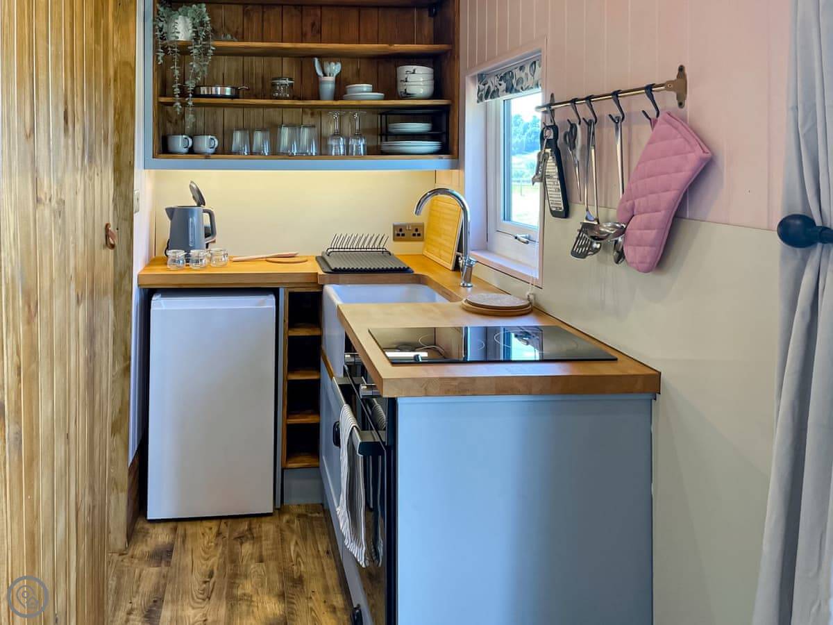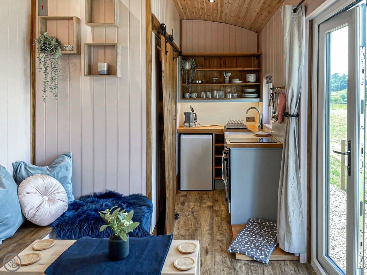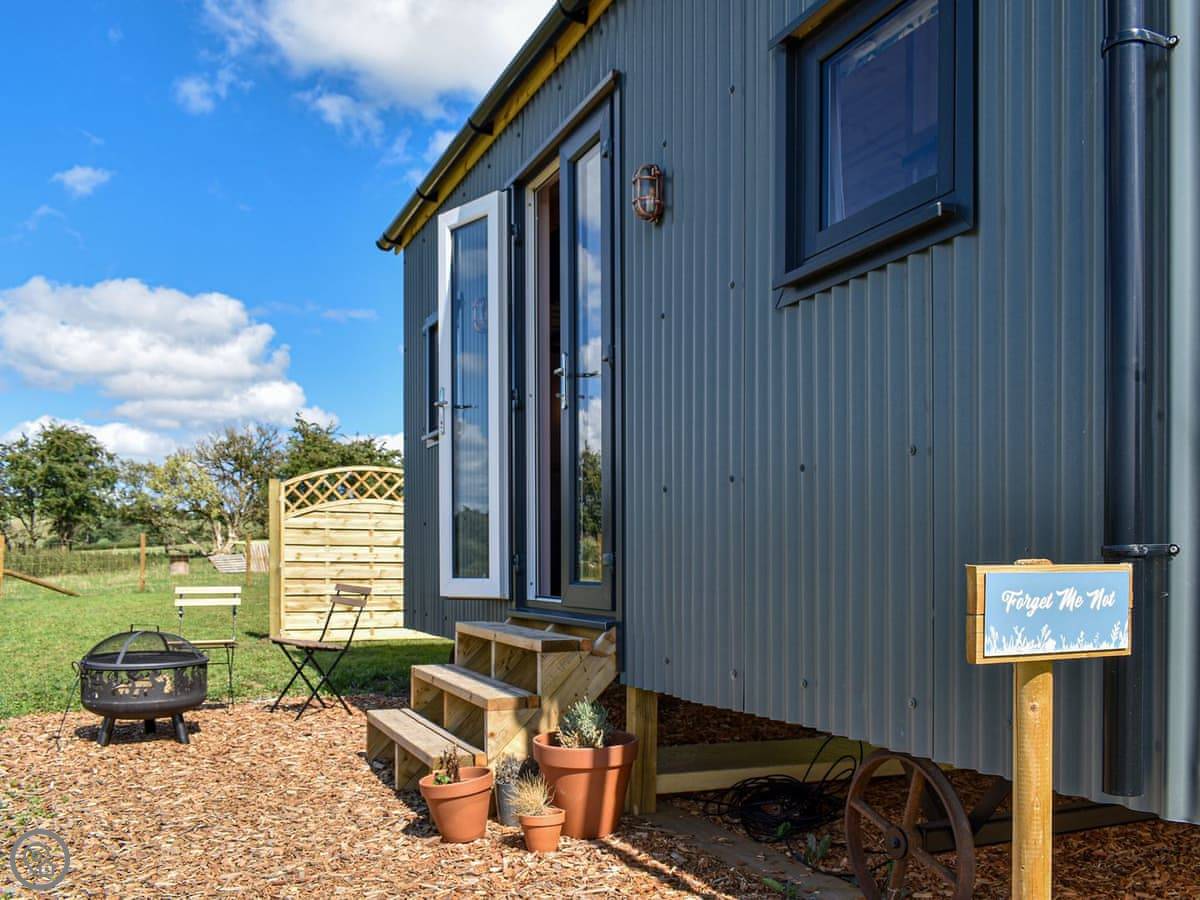 It's called Forget-Me-Not. It's a shepherd's hut, just outside Parwich near Ashbourne. It's in a field, so the view is just fields, sheep, that sort of thing. Quiet.