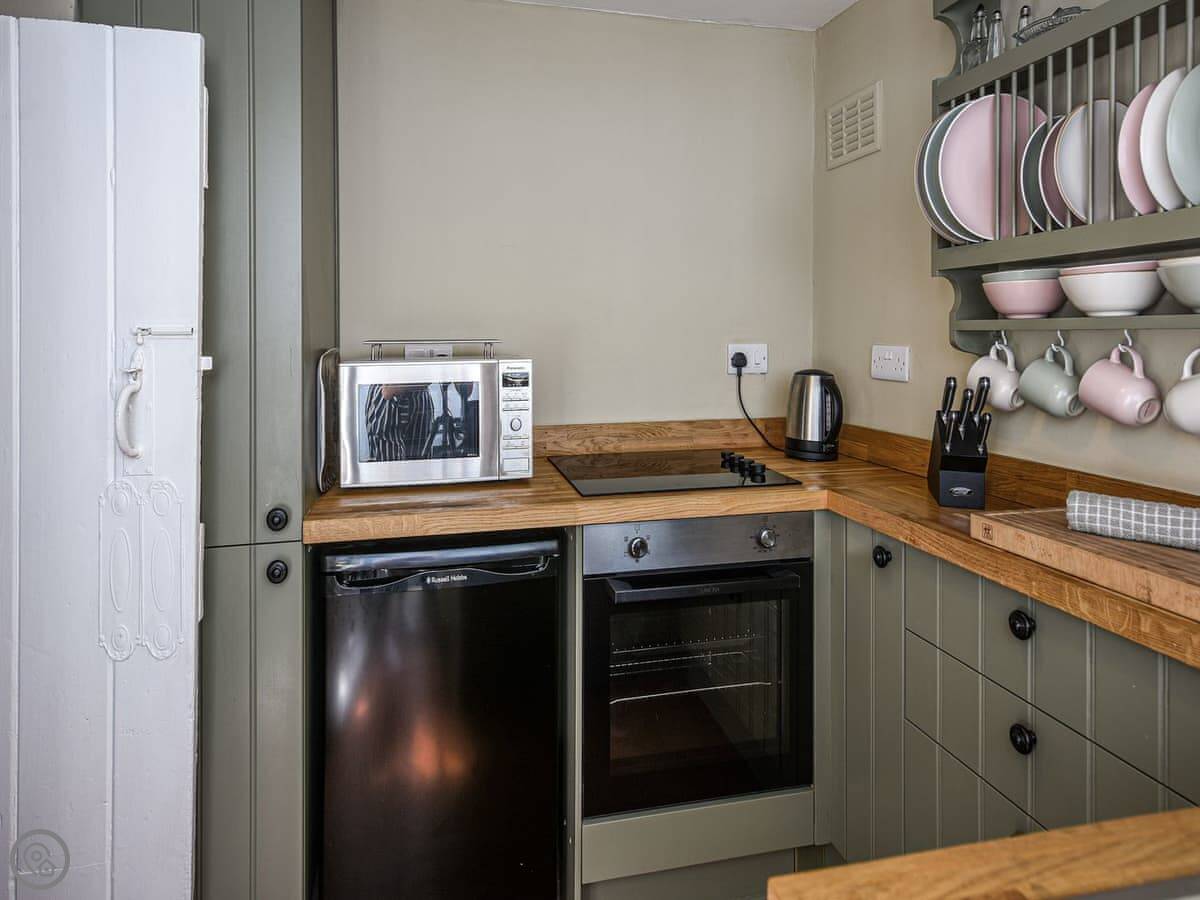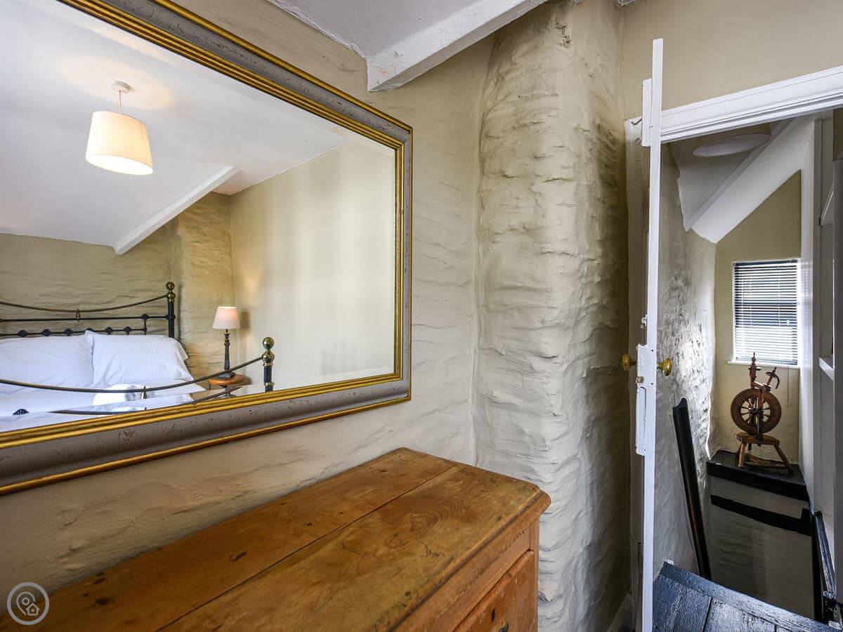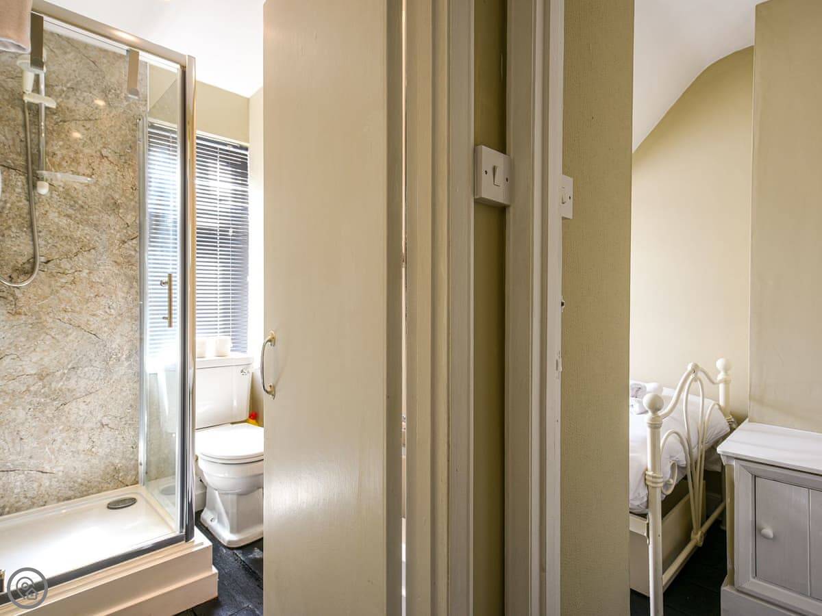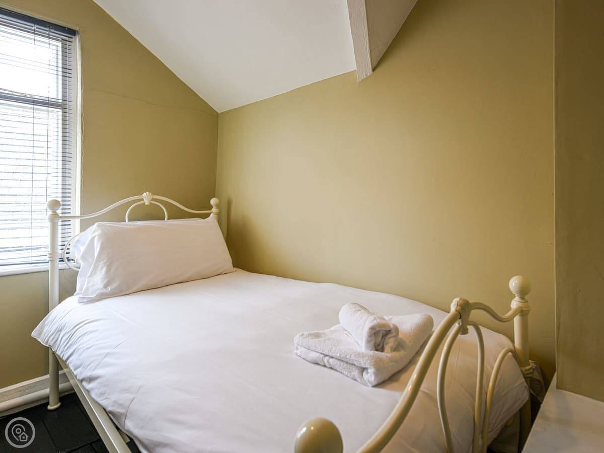 It sleeps three, in two bedrooms. There's one bathroom upstairs. It's got a 3 Star rating, so it's clean and functional. The ceilings are low in some places, and the doors are a bit shorter than modern ones. Just mind your head.
