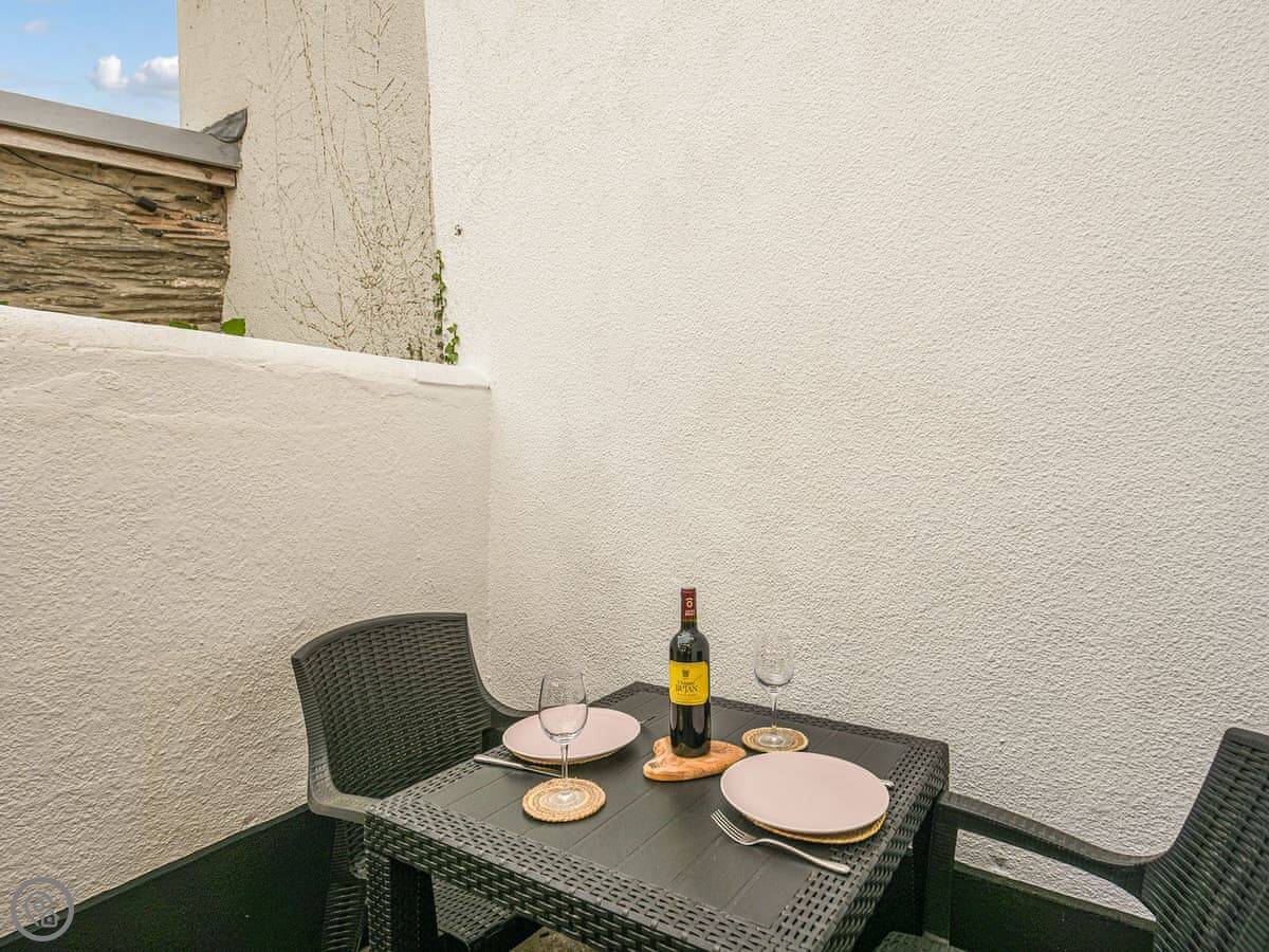 You've got a small, walled yard out the back with a table and chairs. It's enclosed.