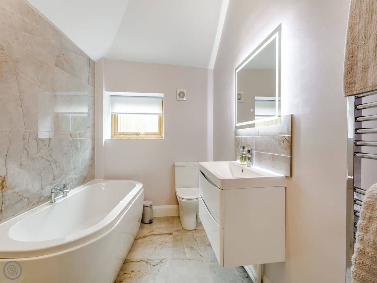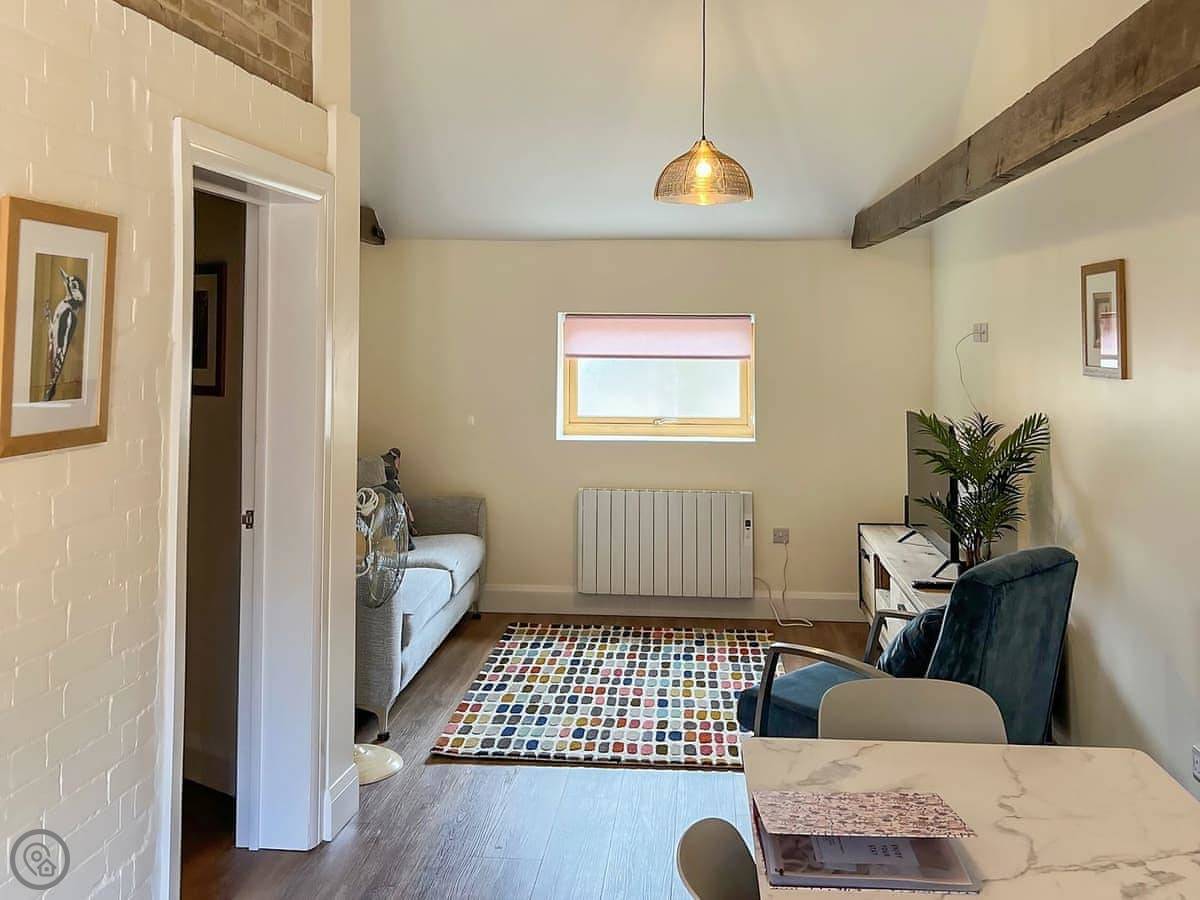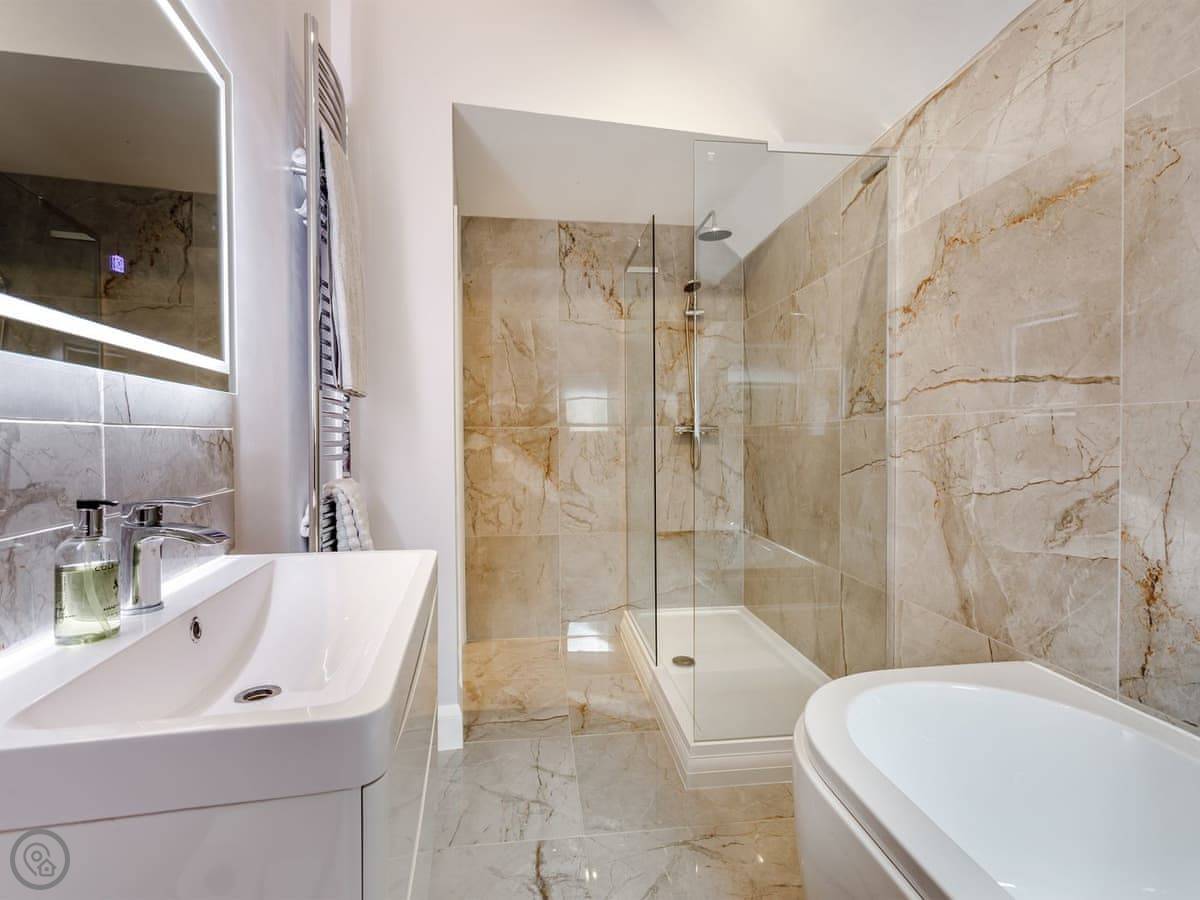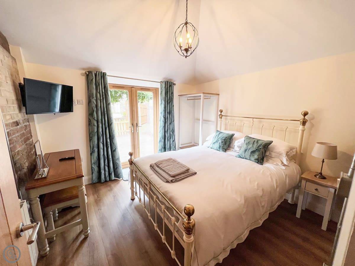 It sleeps four. Two bedrooms, one bathroom. It's got a 5 Star rating, which means it's finished to a high spec. Heated floors, that sort of thing.