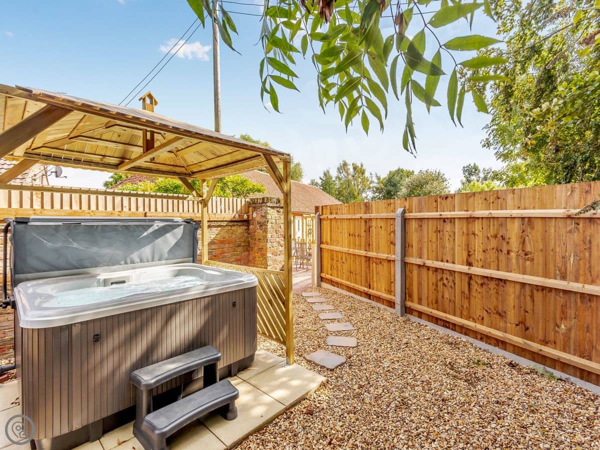 The garden is enclosed and private. There's a hot tub out there. A little footbridge leads from the garden into a one-acre meadow.