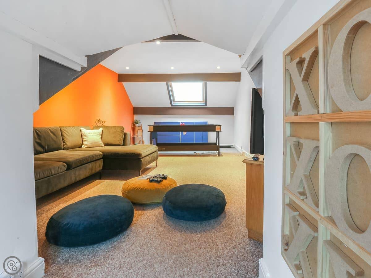 Eight bedrooms await you, with a mixture of double, family rooms and single bedrooms, with one bedroom and ensuite conveniently located on the ground floor. Enjoy the games room containing a multi games table to choose between pool, table tennis or air hockey, and a chill out zone with TV and Playstation.