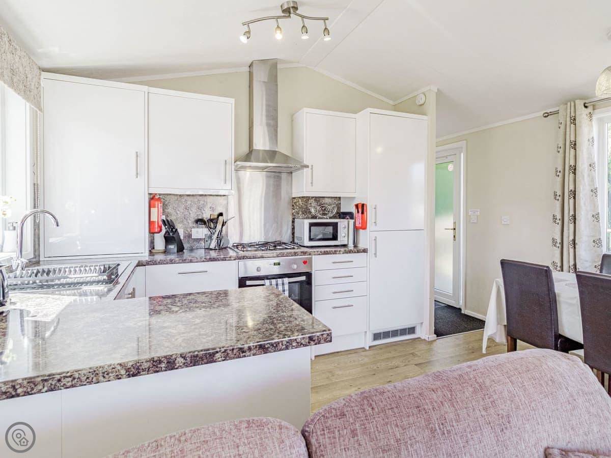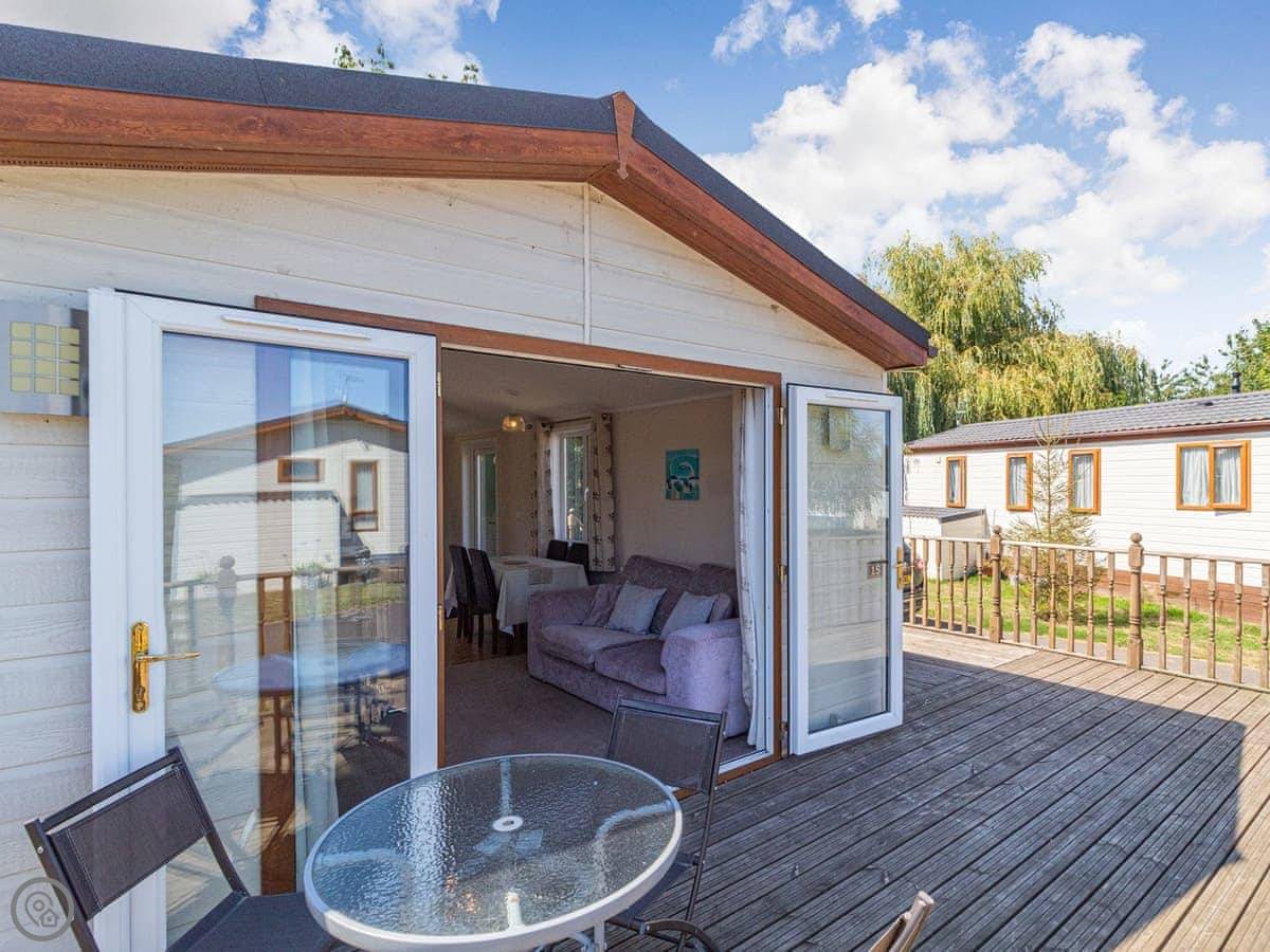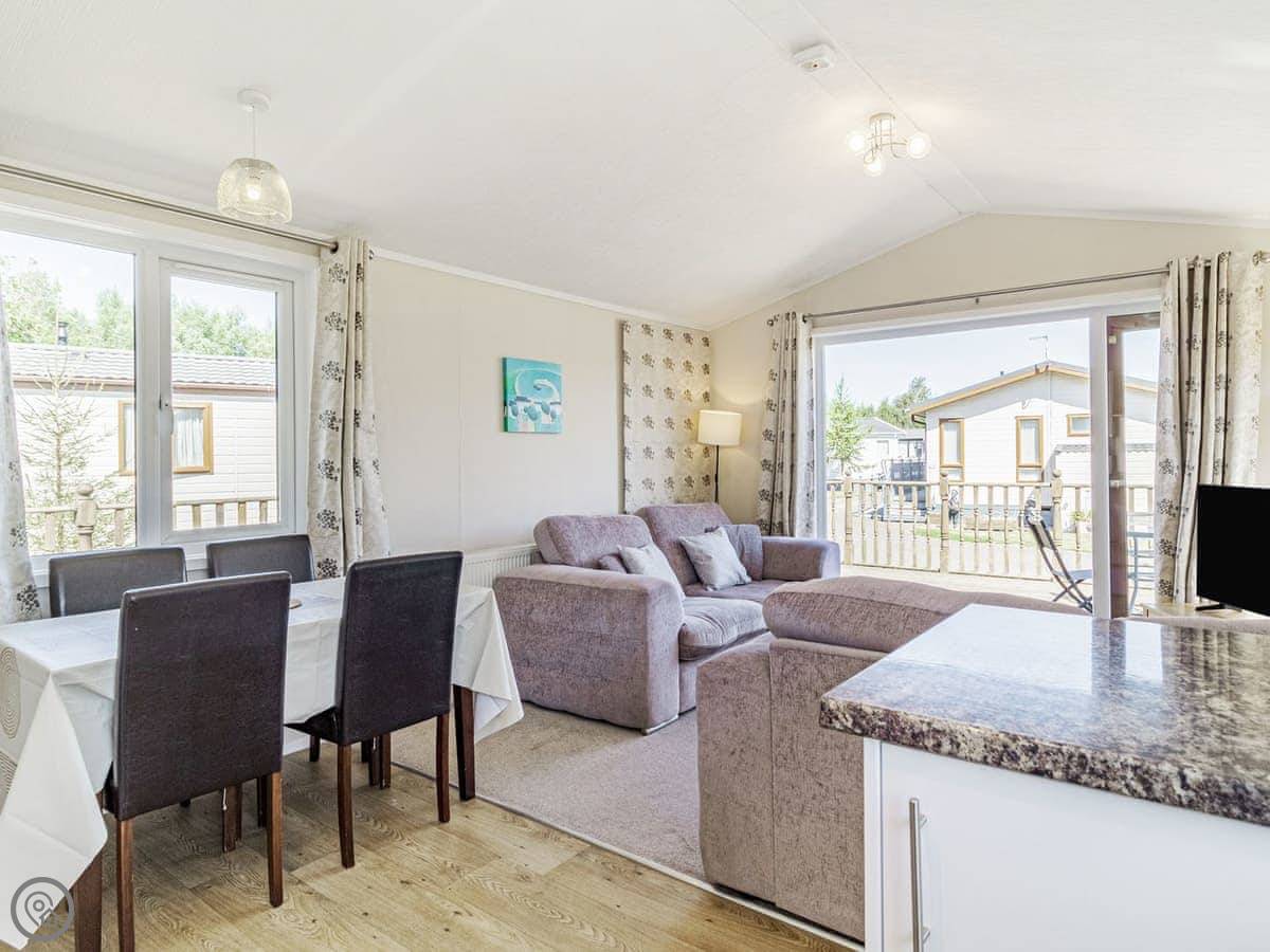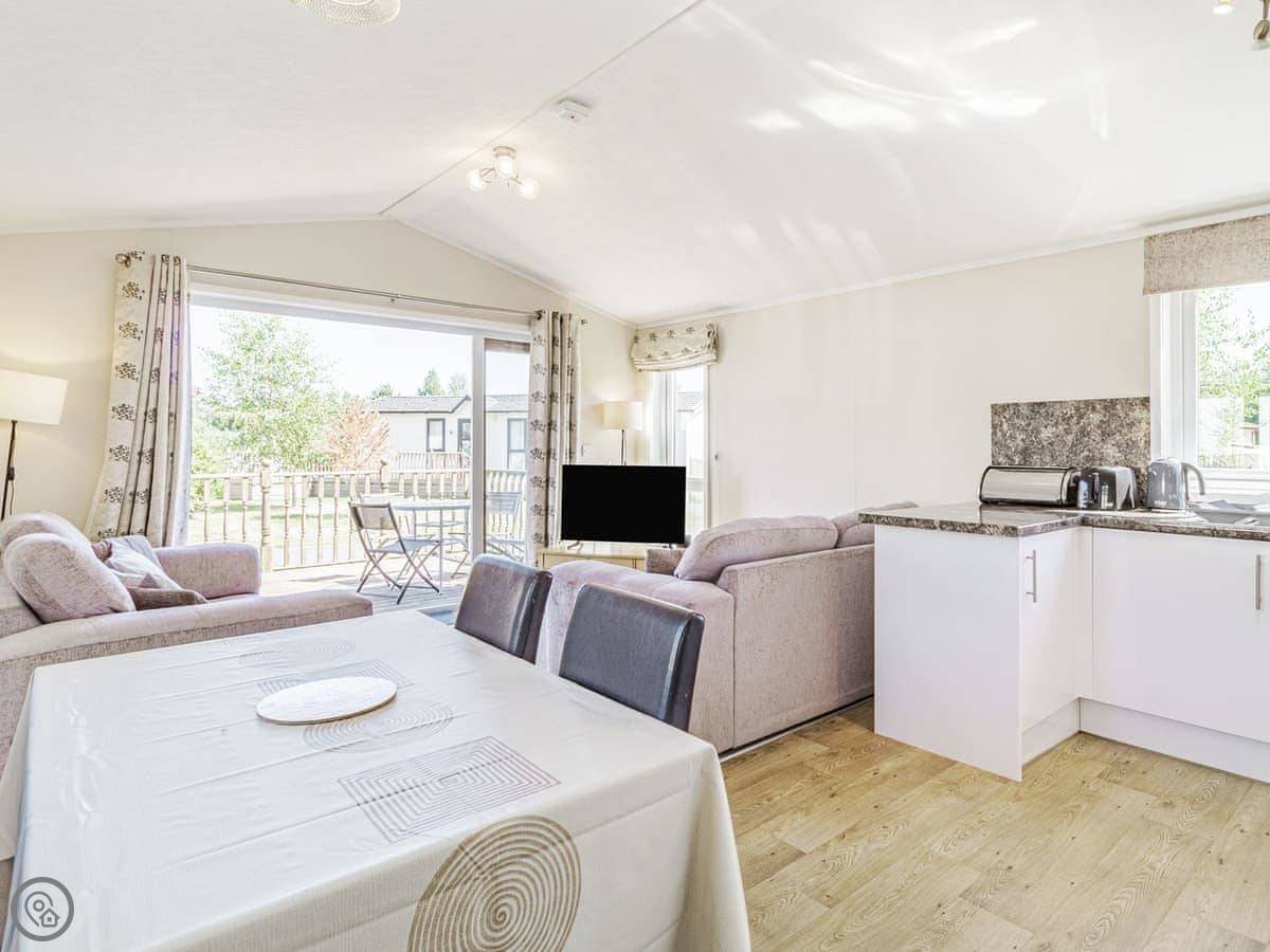 Standing detached, boasting open plan and comfortably furnished interior, enjoying views across the smaller lake. There is a private decked seating area simply perfect for alfresco dining and enjoying drinks. The kitchen is well equipped to allow opportunity to prepare all your own meals, and for those wishing to dine out, you have on-site restaurant and plenty of eateries within the surrounding local area.