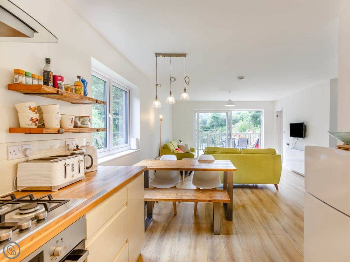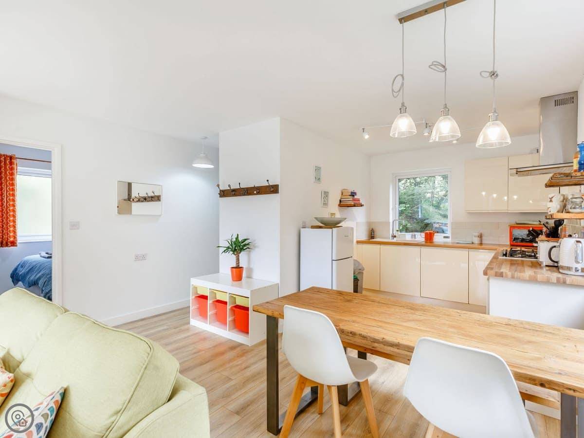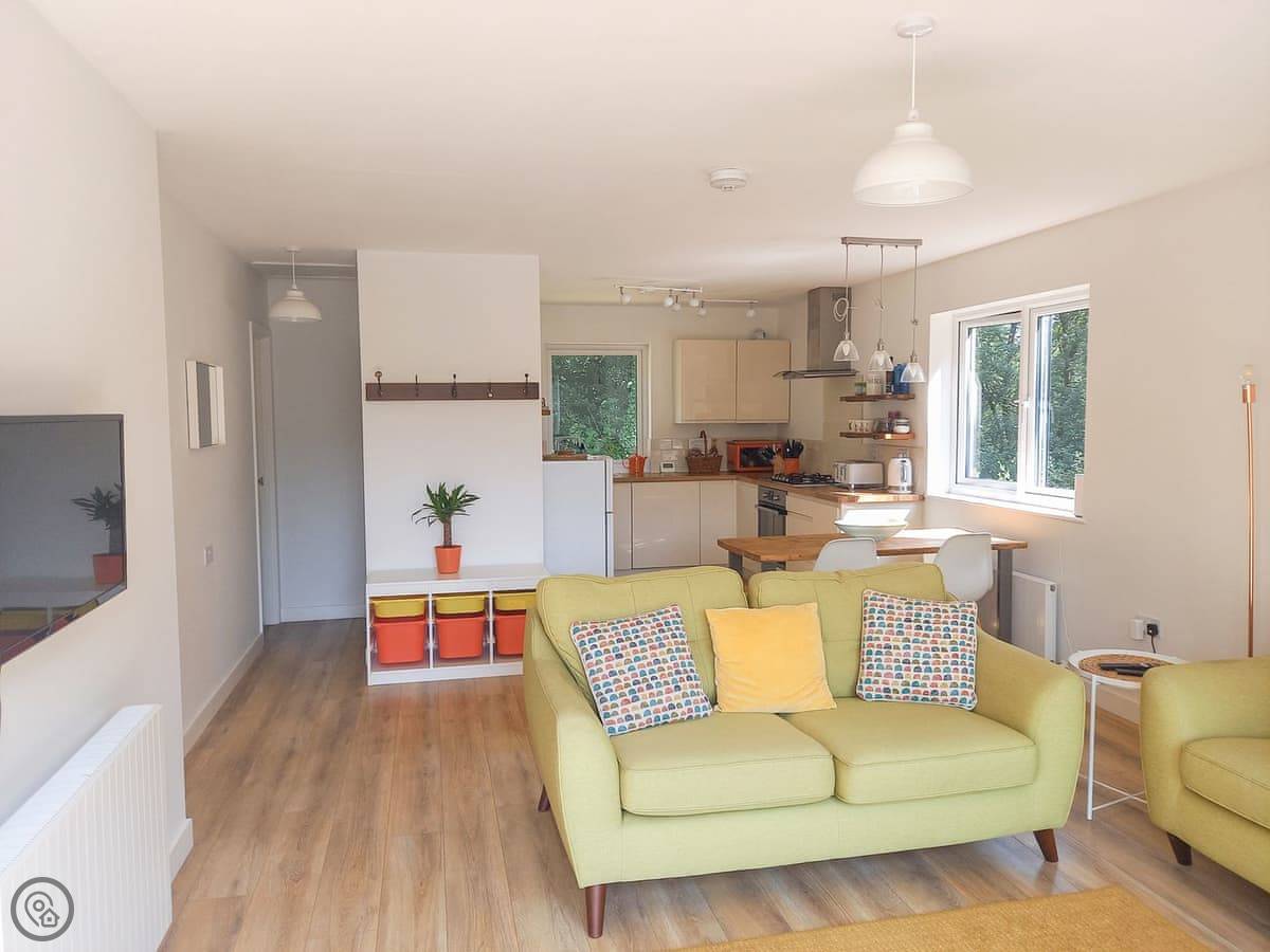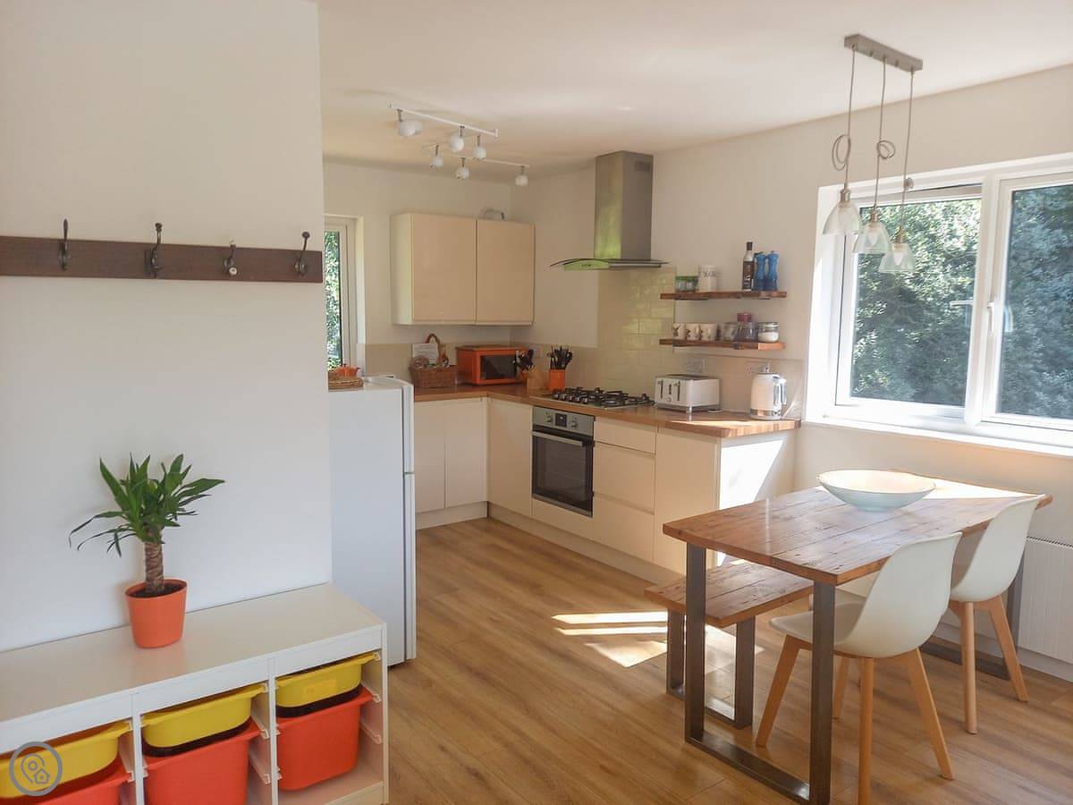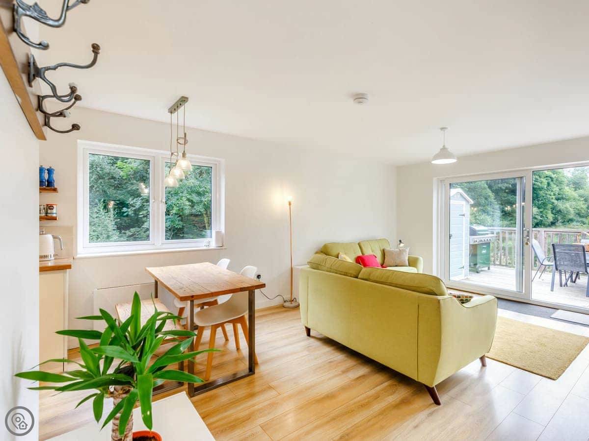 This private rural escape has three bedrooms, sociable living area, BBQ and large decking overlooking the lake. Ideal for families, nature lovers and couples. Whilst The Lake House is hidden away from civilisation, it’s certainly not off grid! The open plan kitchen and living area has a Smart TV with DVD and Amazon Prime, 4G hub and an Echo Dot. There is a beautiful dining table and the large patio sliding door opens onto the decking so you can always admire the magnificent view and feel part of the great outdoors. The kitchen is well equipped with an electric oven, gas hob, microwave, Dolce Gusto coffee maker, fridge/freezer and dishwasher. Discover the three beautiful bedrooms, the master with a kingsize bed and French doors opening onto the decking, a second room a kingsize bed and a third bedroom with bunk beds . The bedrooms each have bedside tables with drawers or a rail for hanging clothes. There is room in the master bedroom for a travel cot which we can provide if requested. The stylish family bathroom is fitted with a walk-in shower, toilet, sink and Faith in Nature toiletries.