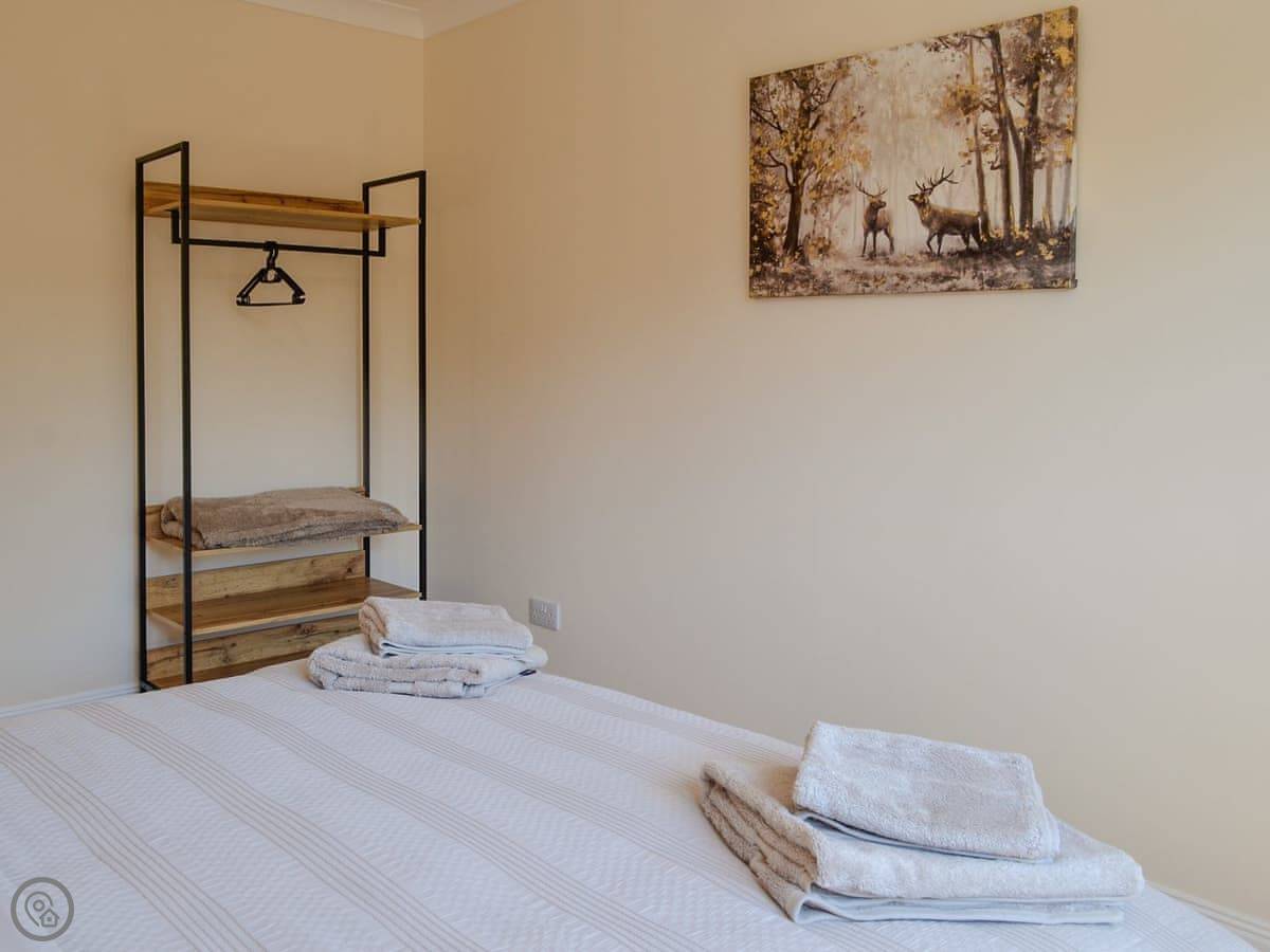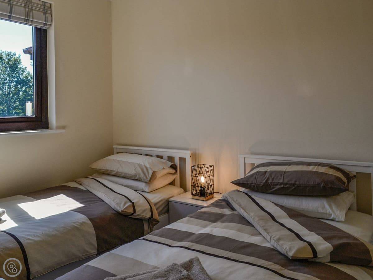 It sleeps six, with three bedrooms and two bathrooms. One of the bedrooms has its own en-suite shower. You can bring one dog.