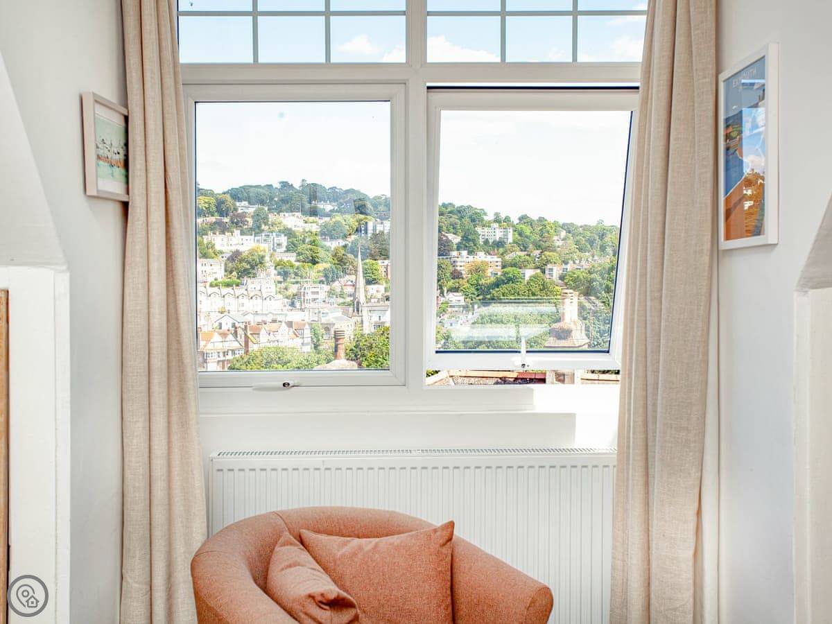Vane Hill House is located just a short walk from the popular Torquay seafront and harbour. Sleeping up to nine guests in total with over five bedrooms and off-road parking. As you enter the property you find yourself in the spacious ground floor hallway, leading off into the living room with plenty of sofa seating, smart TV and gas fire. The spacious kitchen/diner is also accessed via a door from the hallway, well-equipped with all the appliances you could need and with large dining table and chairs. There is also a beautiful old range in the kitchen. There is a ground floor toilet next to the front door. Upstairs leads to the various bedrooms with the master bedroom benefiting from doors leading to a small balcony looking out over Torquay. In terms of outside space there is a small open area with table and chairs, perfect for enjoying an early morning coffee before heading down to the beach and harbour.