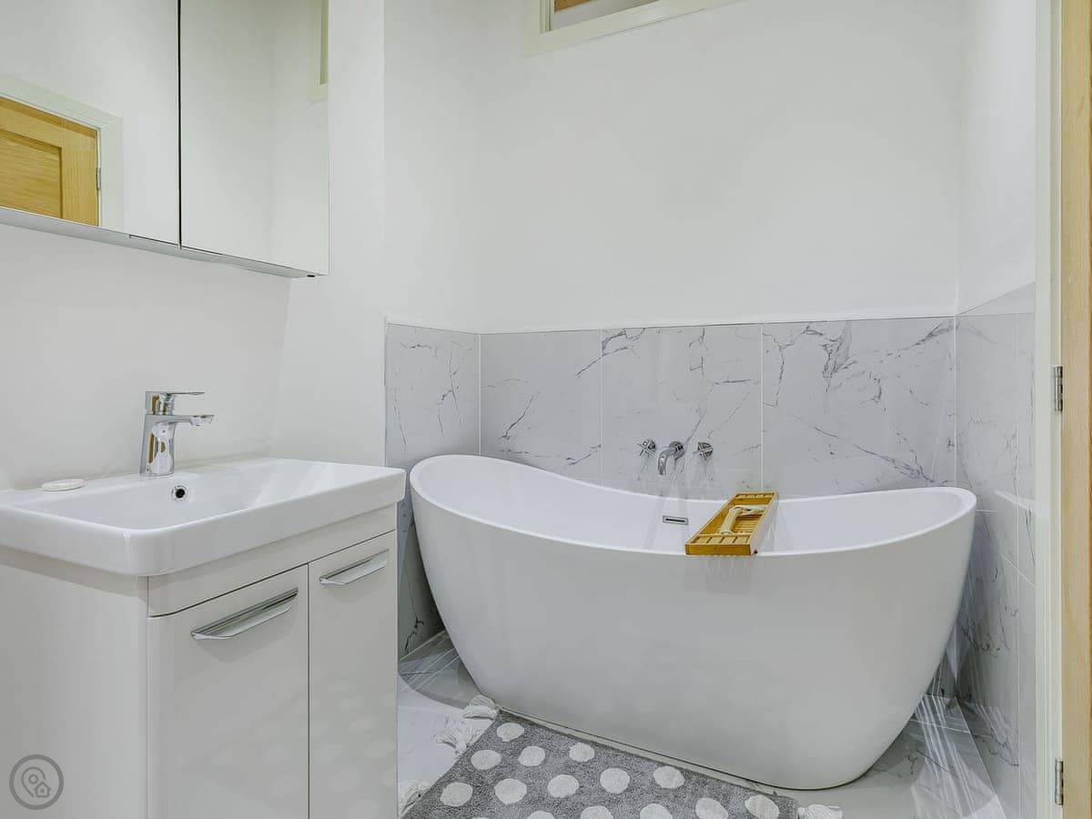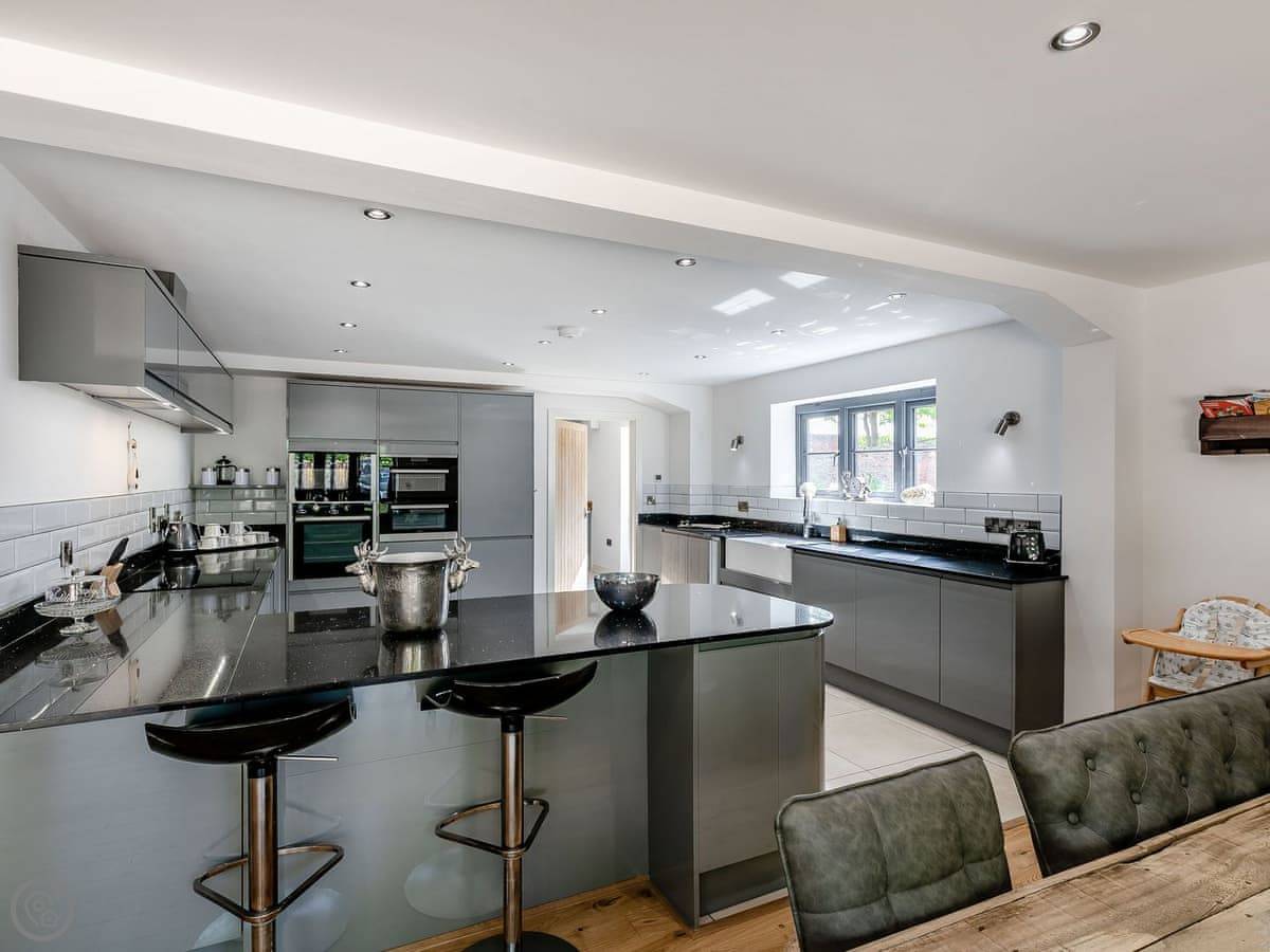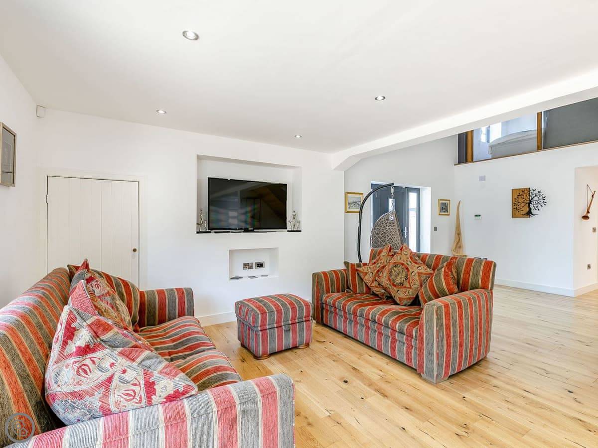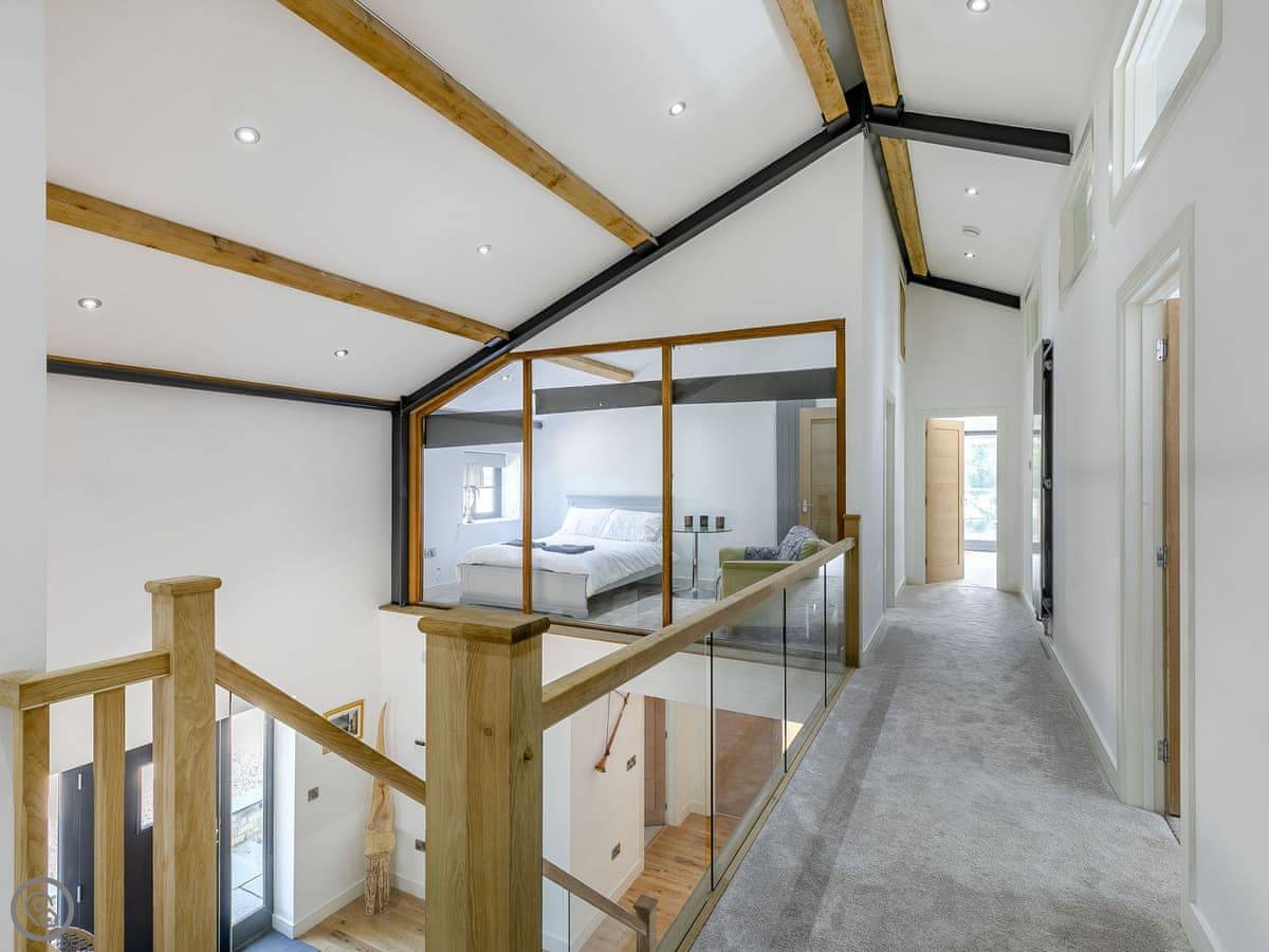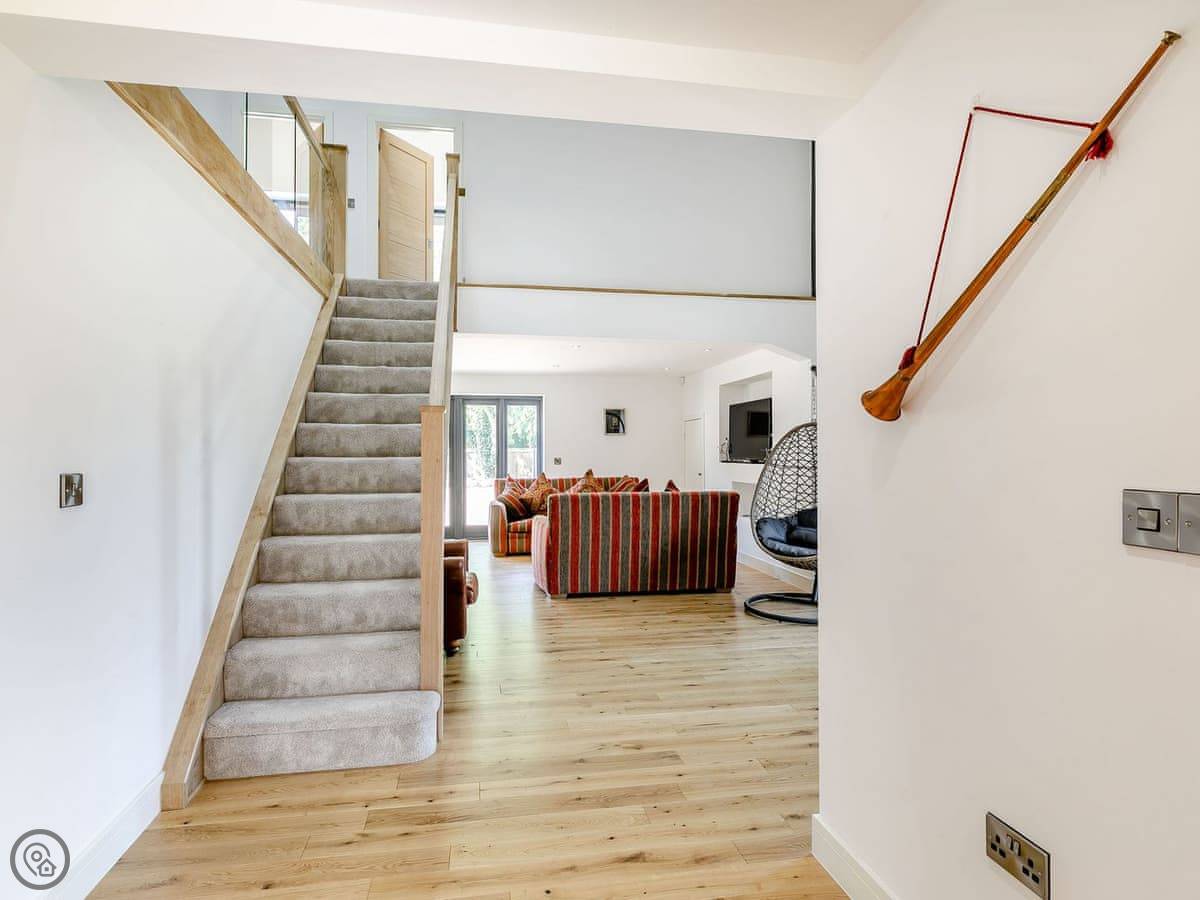 This former barn used by the farm for storing the apples from the orchard next to it for generations now provides spacious modern holiday accommodation for families and friends to get together and enjoy. Be welcomed into the large open plan living with views to the front flow into the kitchen with breakfast bar and also the galleried hallway. This is the heart of the property with an inviting atmosphere and comfortable ambience, creating the perfect place not only to enjoy homely meals rustled up in the well-equipped kitchen, but enjoying them and cosying to reminisce over the day’s adventures as it draws to an end.