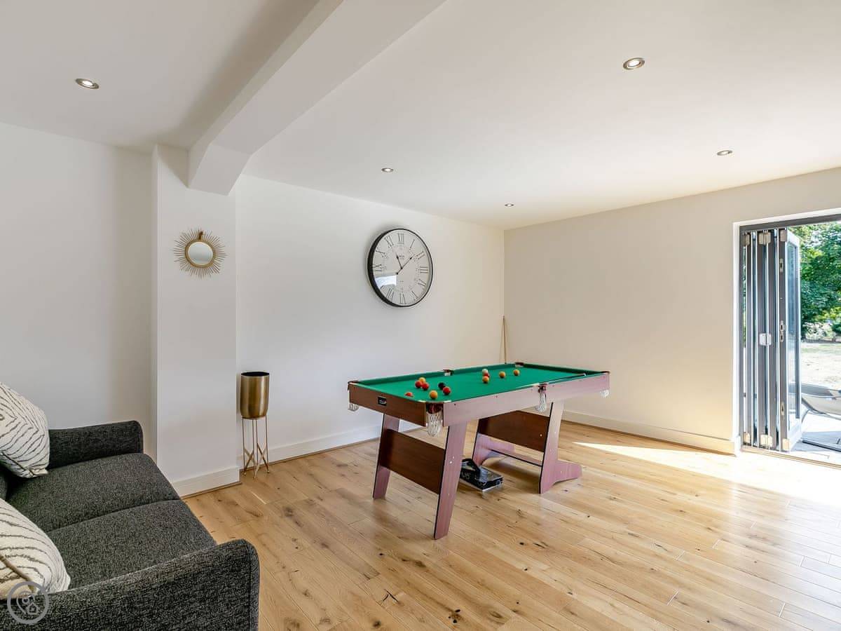 To the rear of the property is a huge games and cinema room with bi-fold doors opening out onto the terrace and rear garden ensuring entertainment options for all, while the lawned garden is ideal for a family football competition with grounds and the nearby woods to explore, or simply kicking back and enjoying a meal al-fresco on the BBQ with a glass of your favourite tipple, or a morning coffee to plan the adventures the next day holds. Why not take advantage of enjoying a night under the stars? All while enjoying the warmth of the hot tub bubbling away.