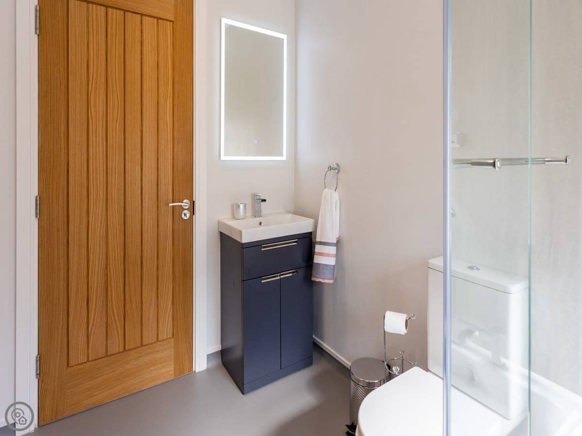 Being on a holiday park, you get the use of the site facilities. There's a heated indoor swimming pool you can book privately. There's also a gym, a sauna, and a hot tub. The park has a bar that serves food and is dog friendly. There's a play area for kids.